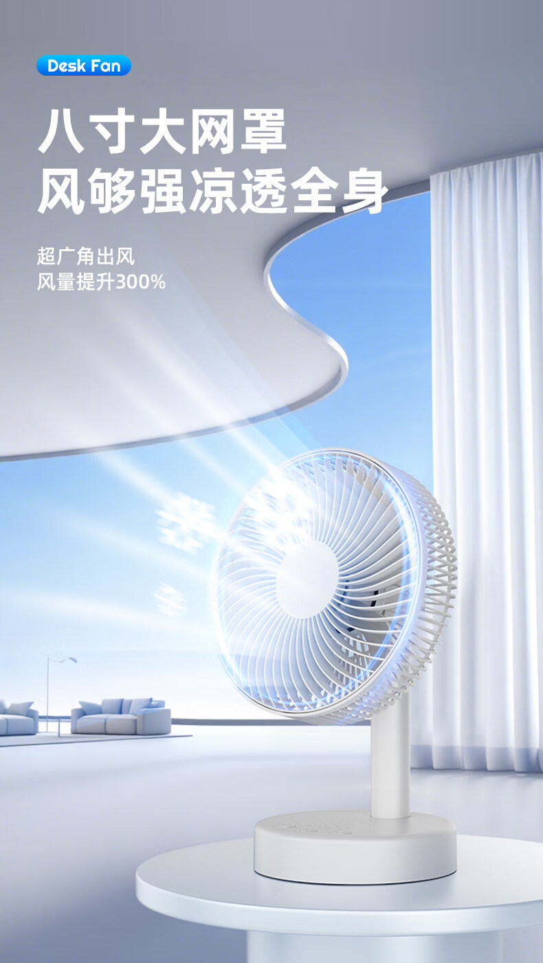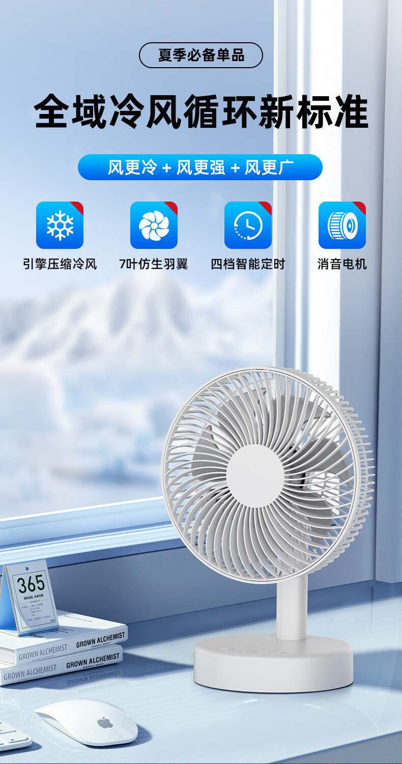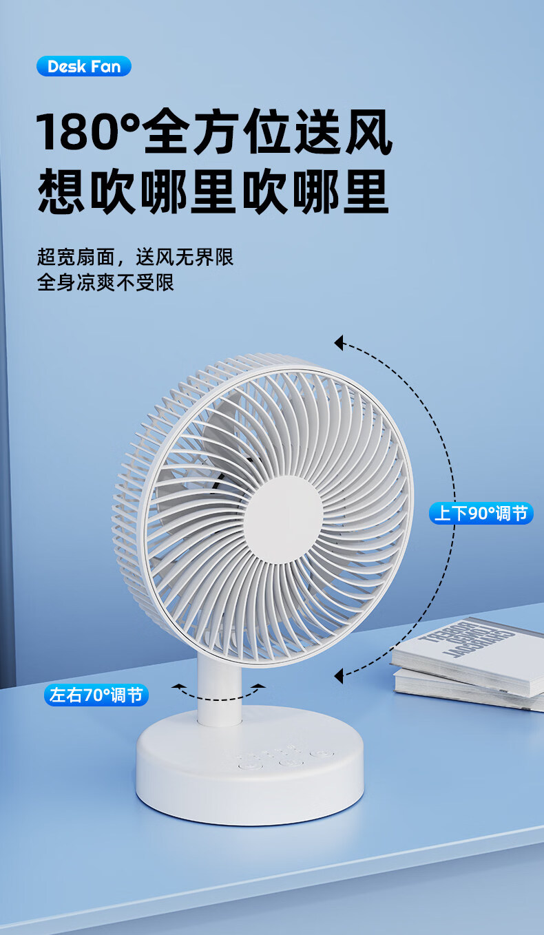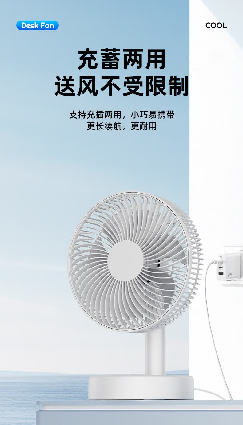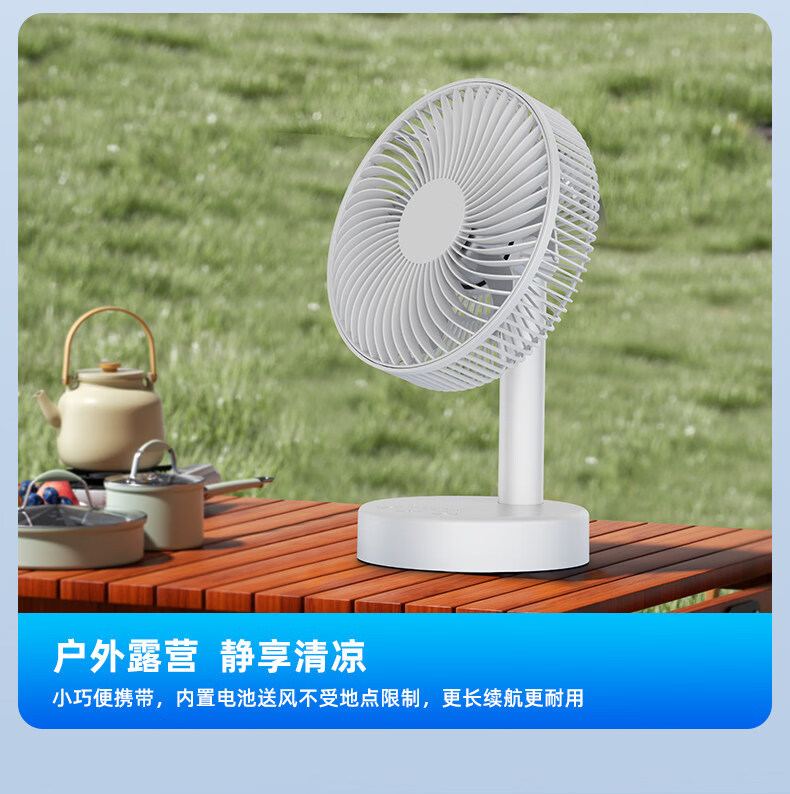 小米白系列电风扇桌面静音空气循环USB可充电台式家用办公室学生宿舍床头大风力便携制冷小风扇大扇面 白色-四档七叶大风力-摇头-定时【充电款】