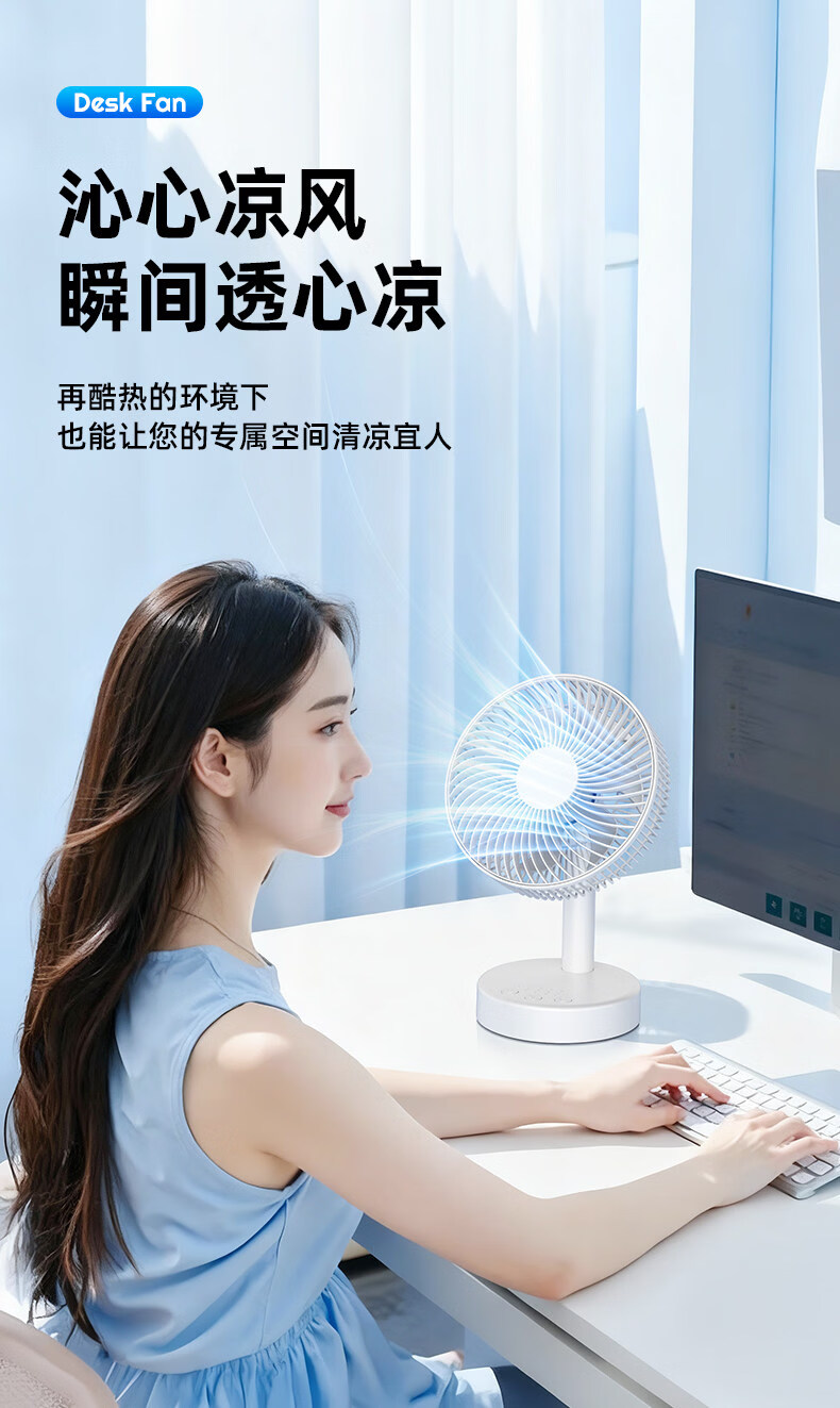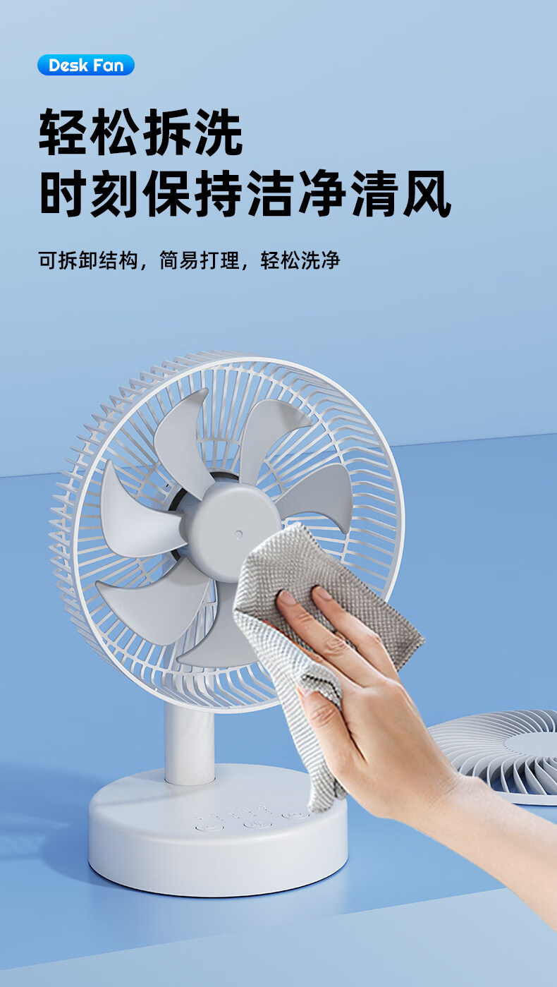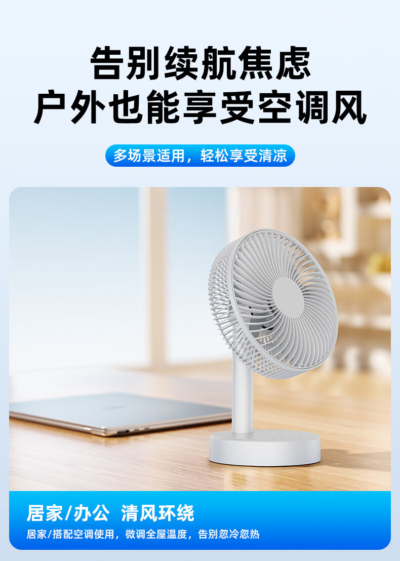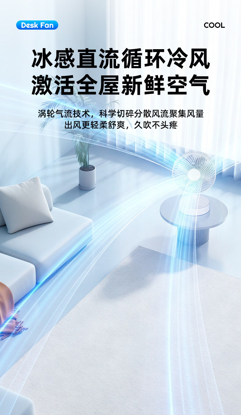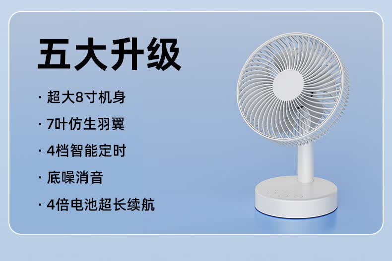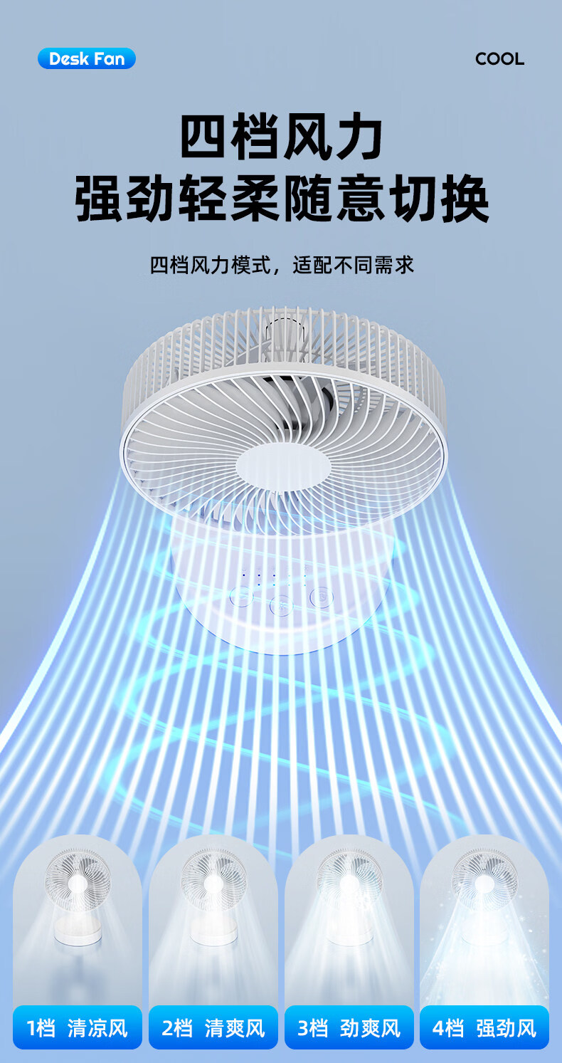 小米白系列电风扇桌面静音空气循环USB可充电台式家用办公室学生宿舍床头大风力便携制冷小风扇大扇面 白色-四档七叶大风力-摇头-定时【充电款】