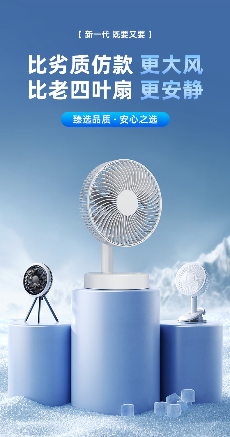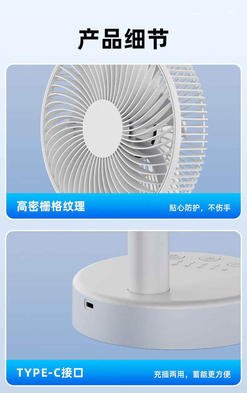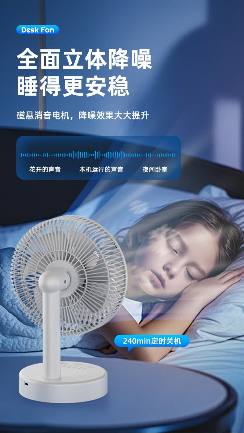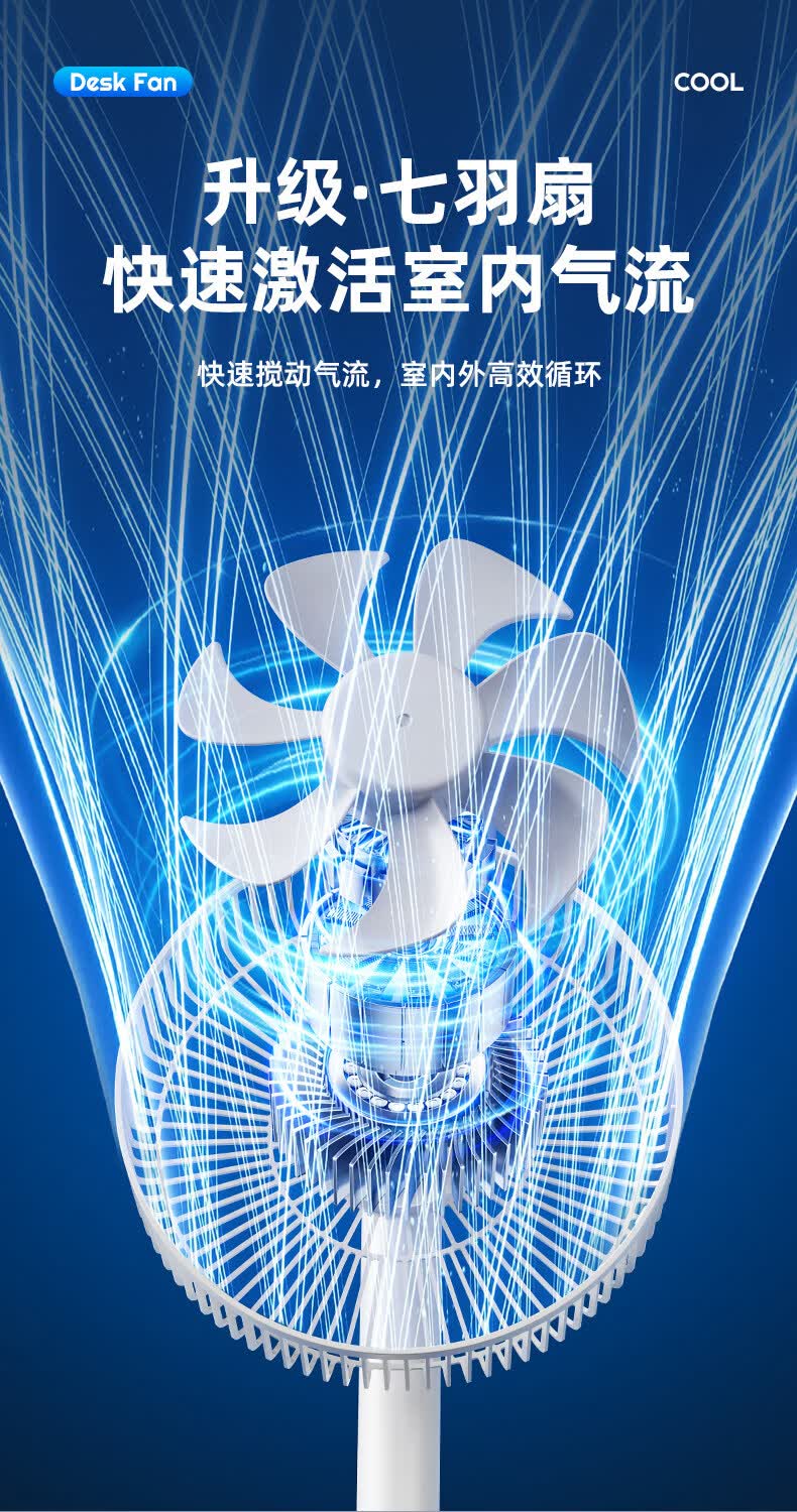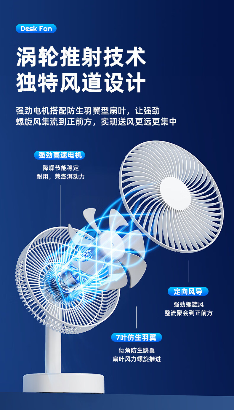 小米白系列电风扇桌面静音空气循环USB可充电台式家用办公室学生宿舍床头大风力便携制冷小风扇大扇面 白色-四档七叶大风力-摇头-定时【充电款】