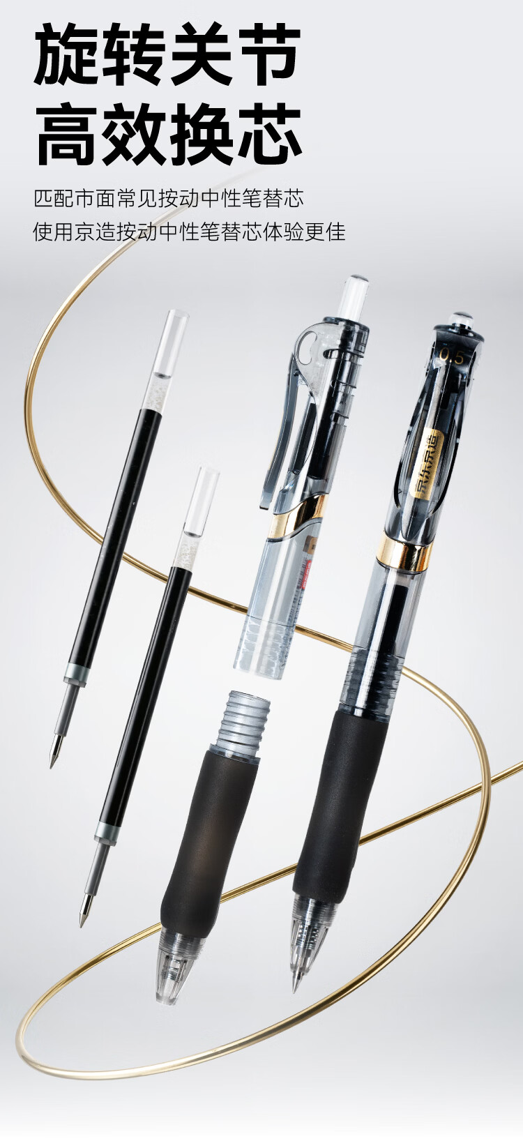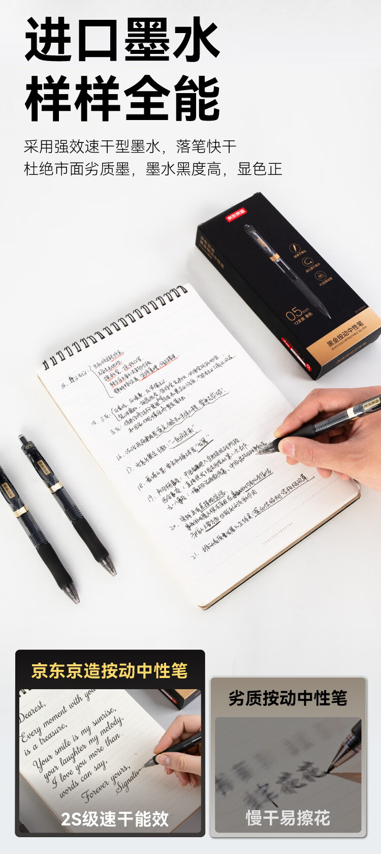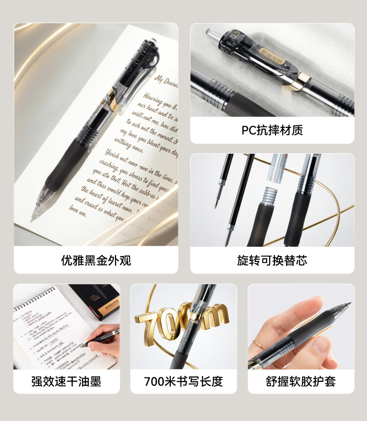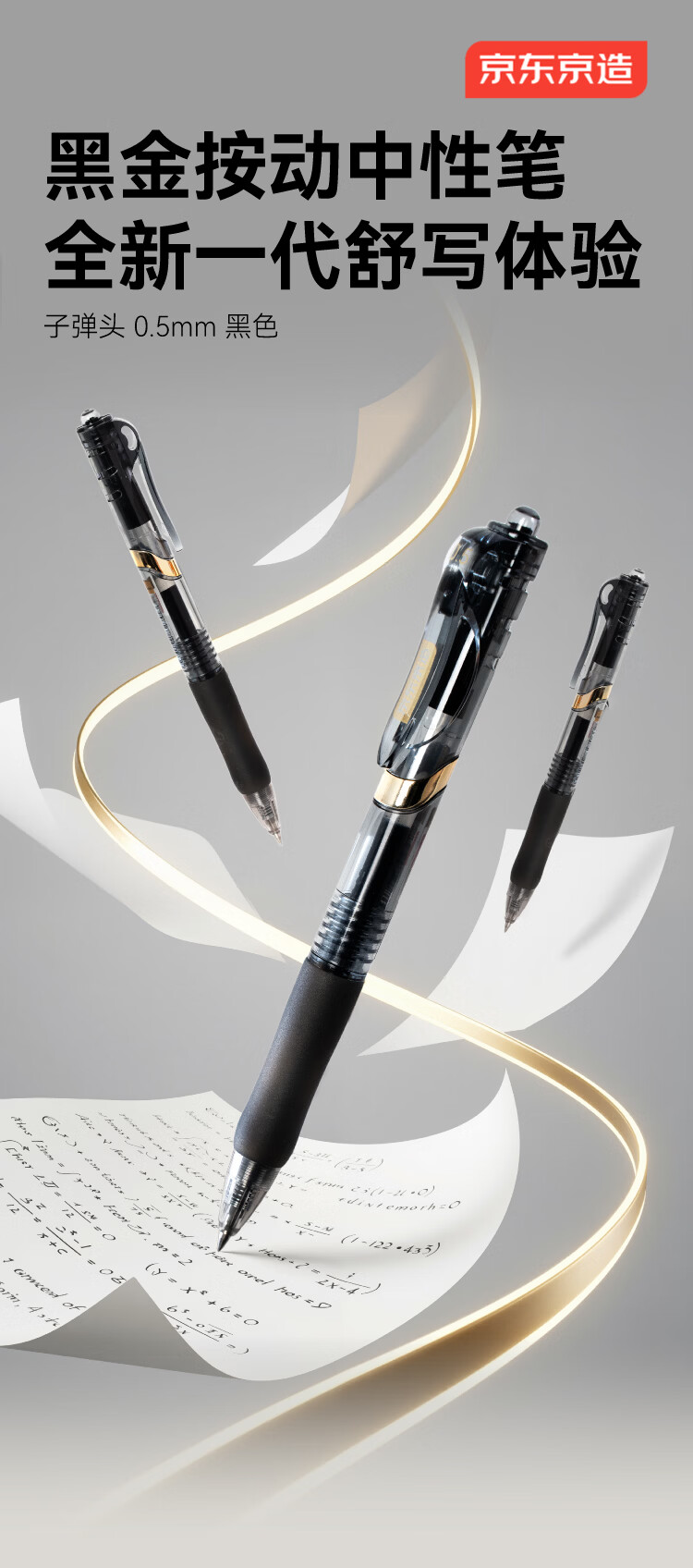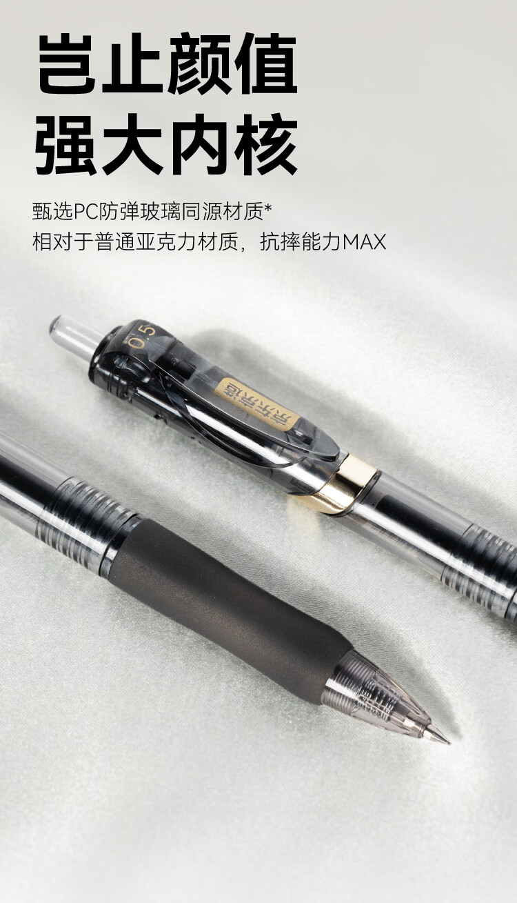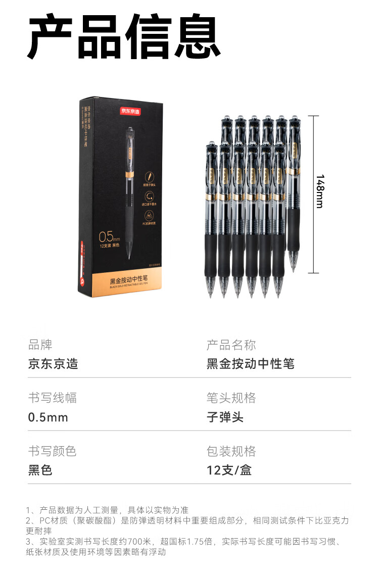 京东京造黑金按动中性笔 0.5mm子弹头黑色12支装 小金刚升级款商务办公签字笔学生刷题笔 速干黑笔JD1086