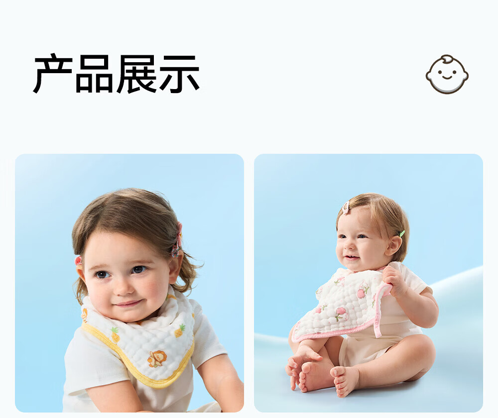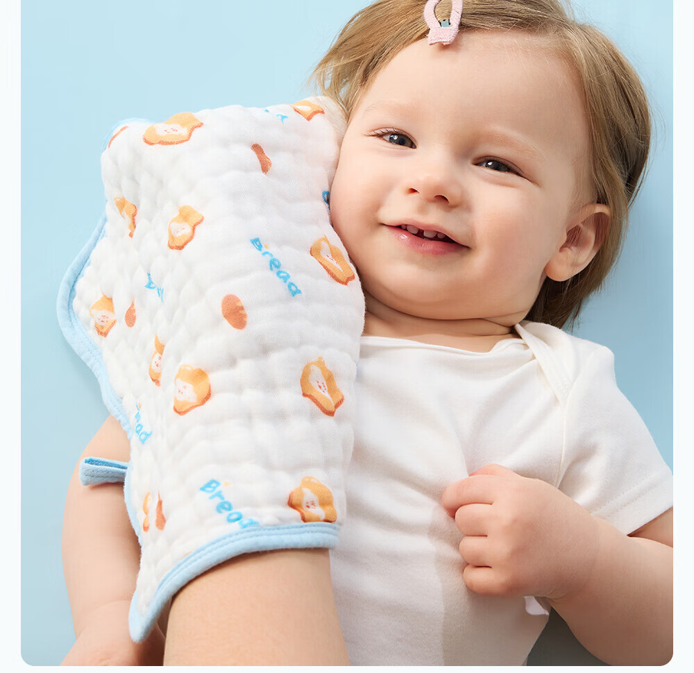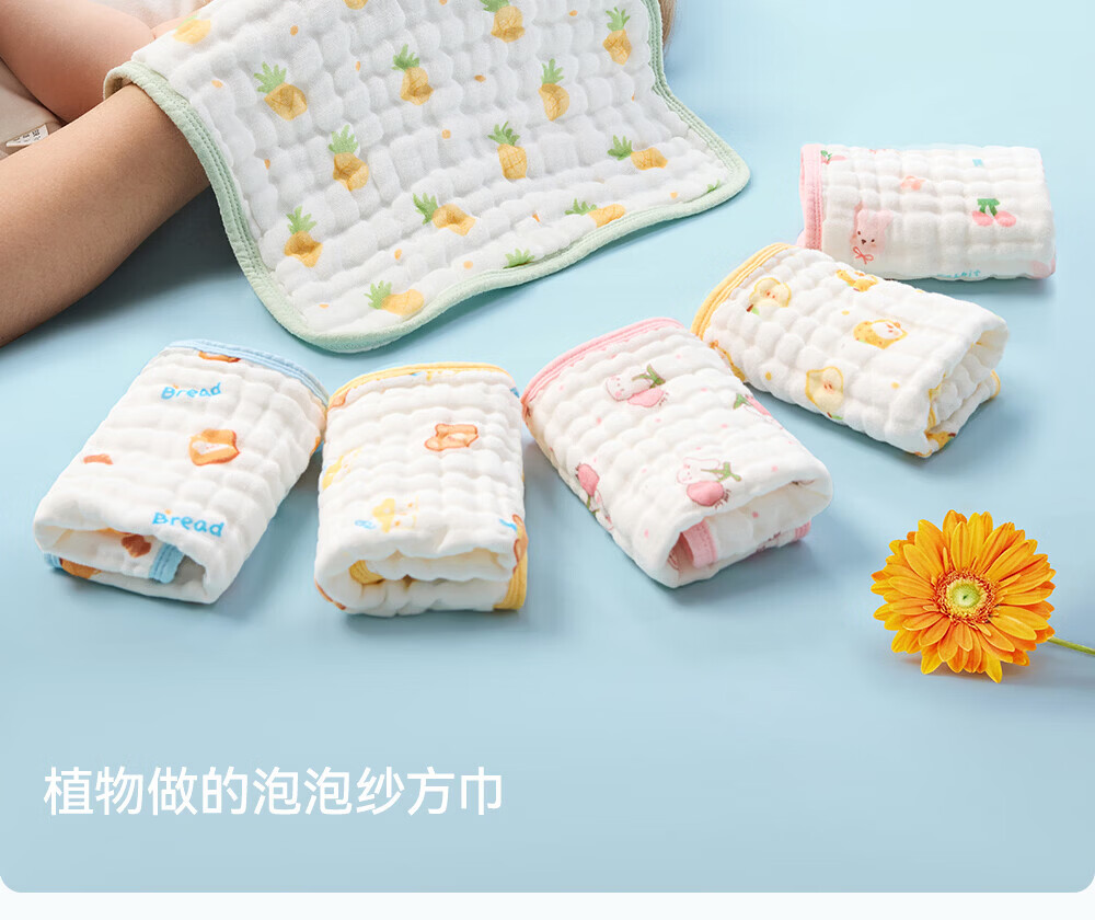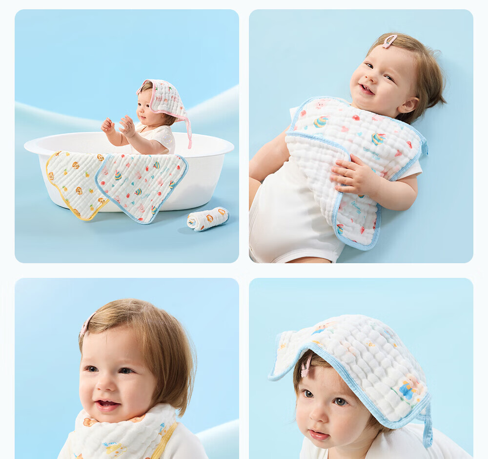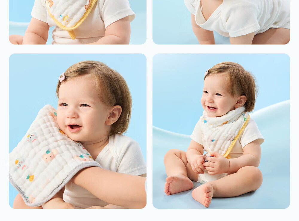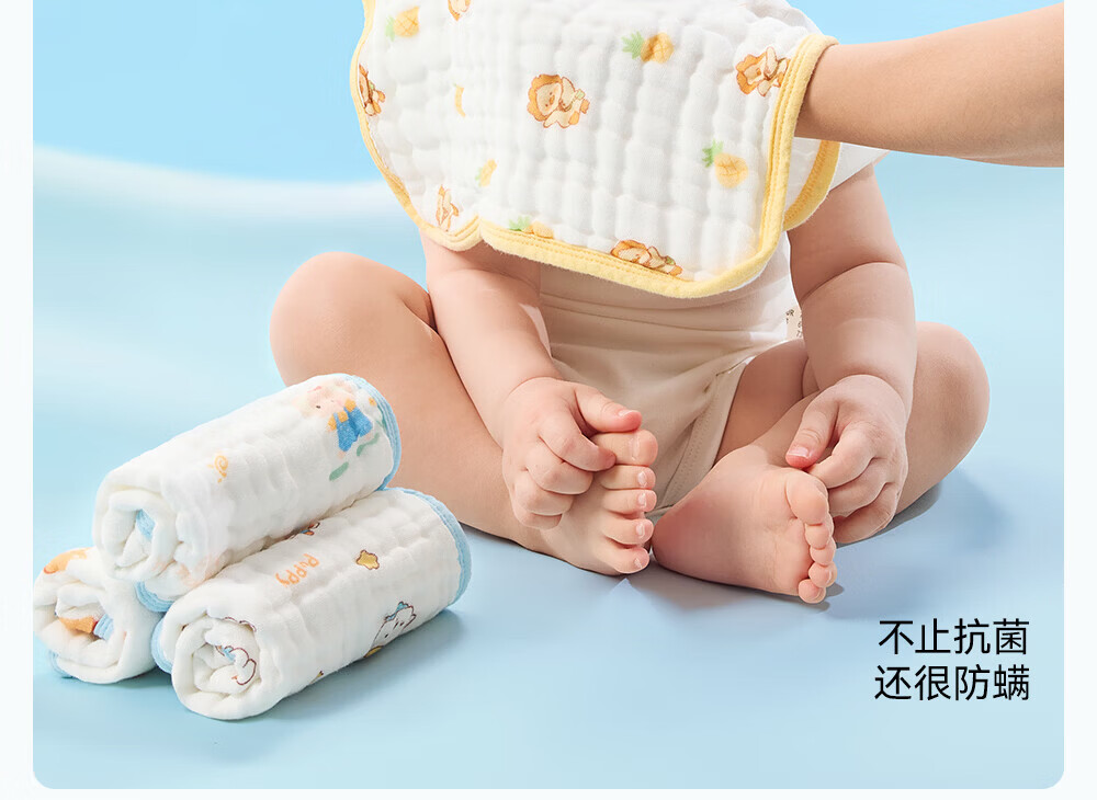 贝肽斯口水巾婴儿A类毛巾新生儿宝宝纱布围嘴小方巾洗脸洗澡巾 3条装-田间小象【4层棉纱】 30x30cm