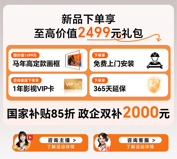 创维电视85A8H 85英寸壁纸电视3600分区SQD Mini LED 7.1.2哈曼全景声 3.9cm超薄平板电视机 国家补贴