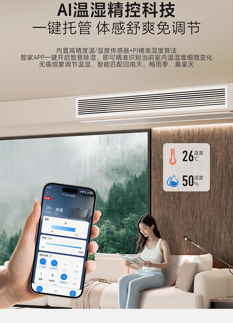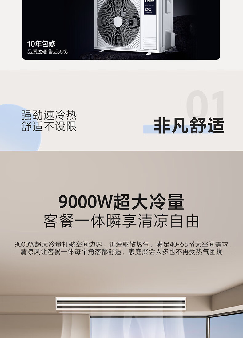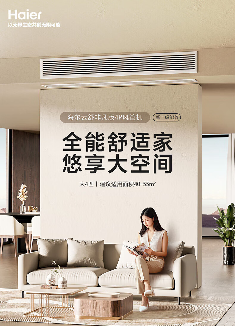 海尔中央空调风管机新一级能效全直流变频AI温湿精控50平大客厅专用云舒非凡