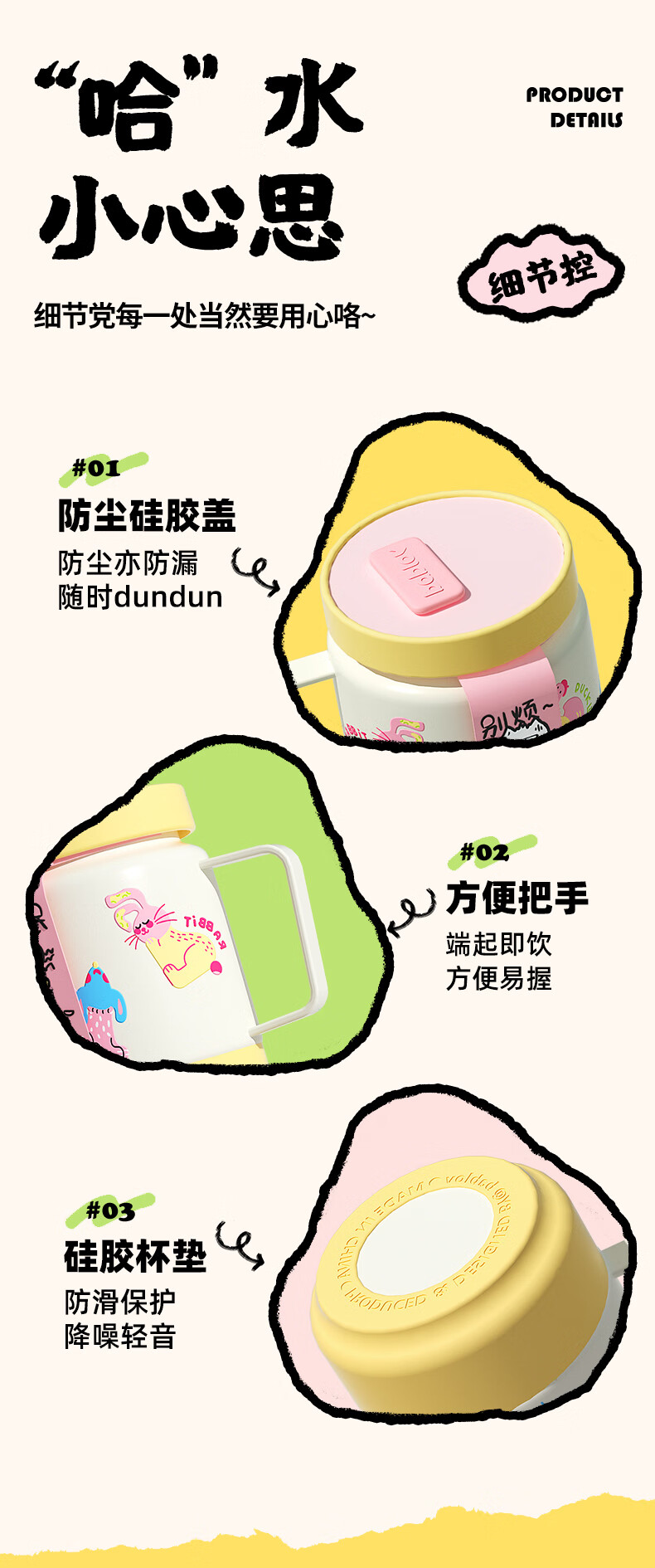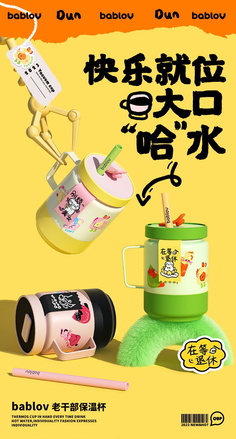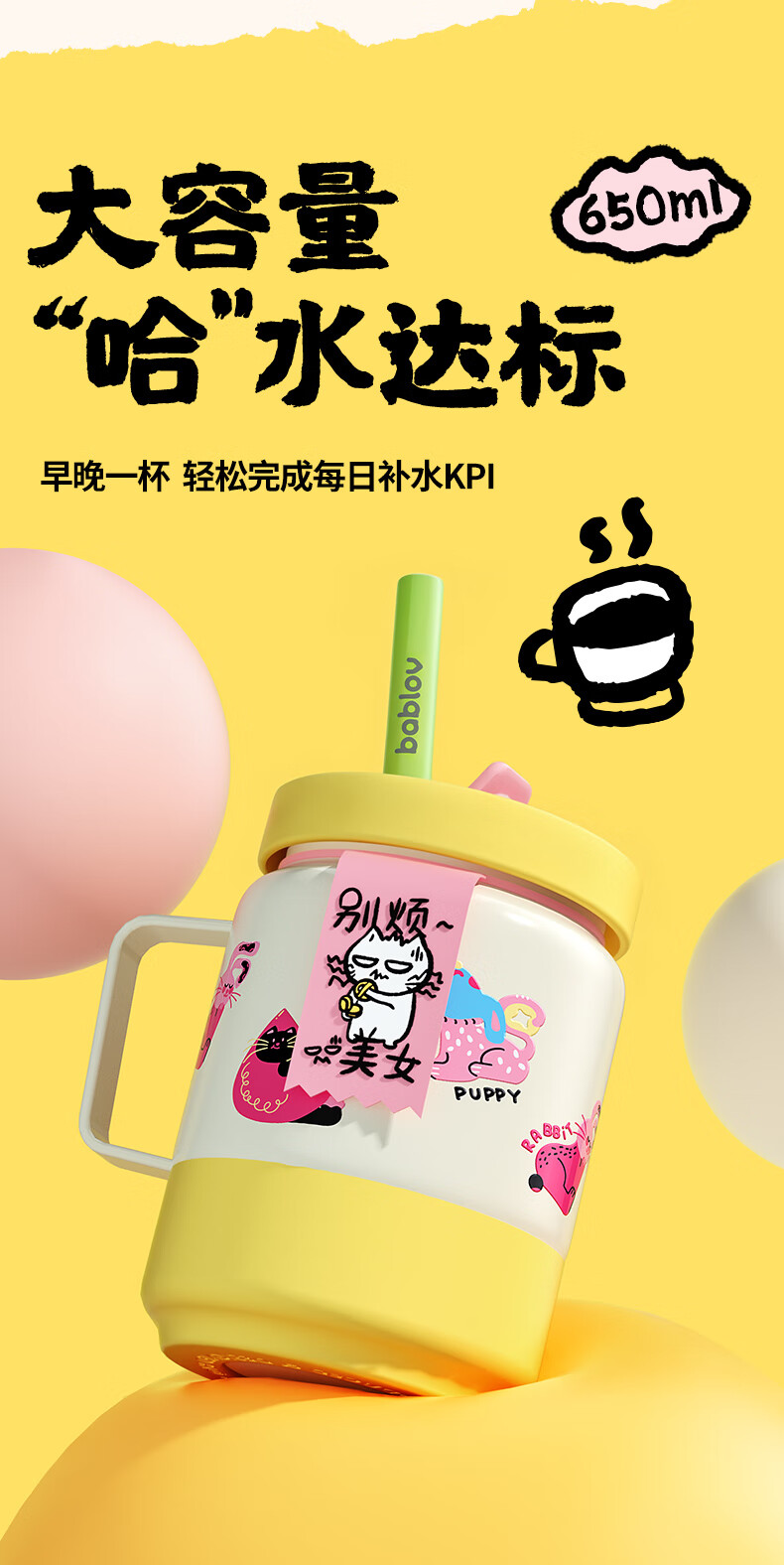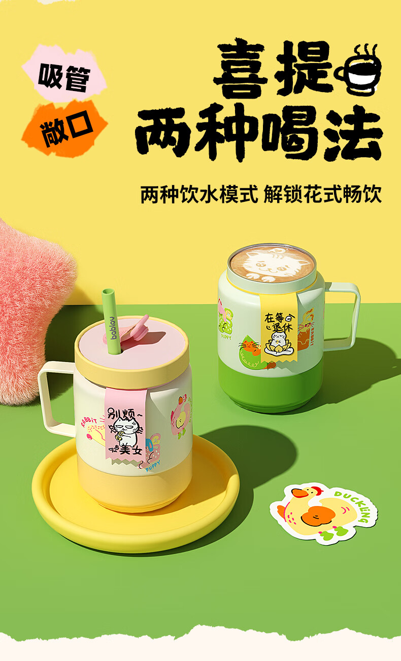 BABLOV水杯保温杯女生高颜值大容量牛奶杯泡茶杯316不锈钢学生吸管杯子