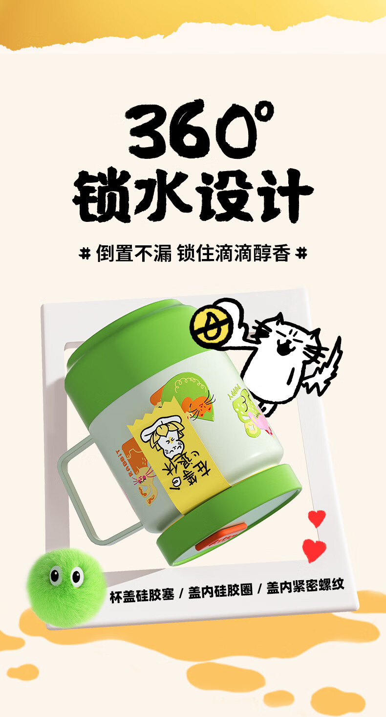 苏泊尔(SUPOR)保温杯咖啡杯男女款抗菌陶瓷覆层水杯大容量带吸管高颜值杯子 旷野绿500ml