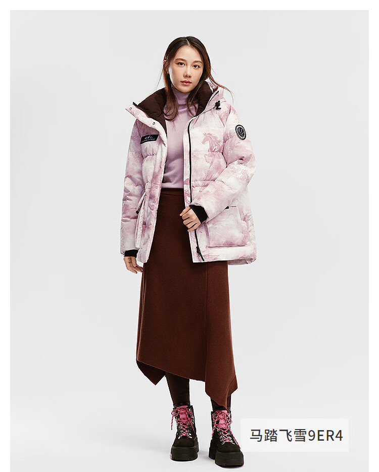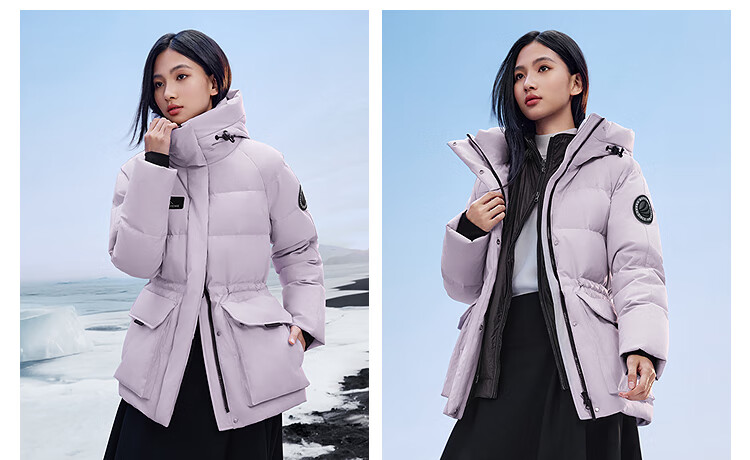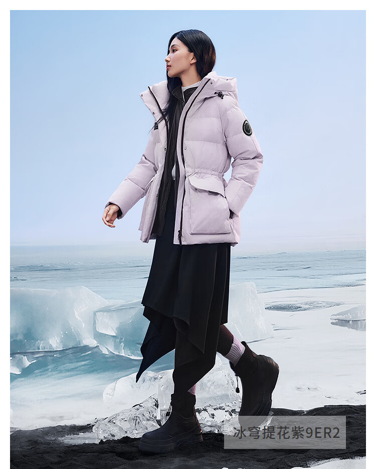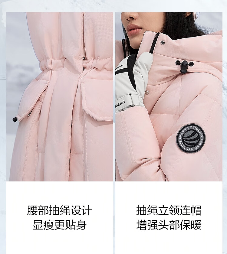 波司登(BOSIDENG)羽绒服女士加厚鹅绒连帽商场同款时尚百搭外套B250242302 冰穹提花白9CW4 S 160/84A 体重约100-110斤