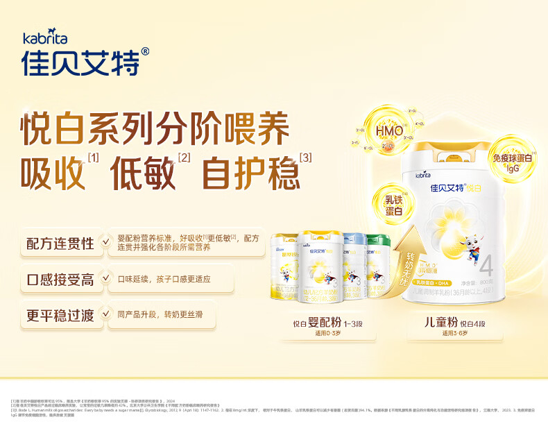 佳贝艾特(Kabrita)悦护婴幼儿配方羊奶粉 3段700克(1-3岁)吸收率95%