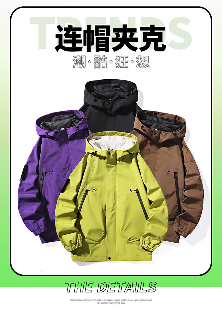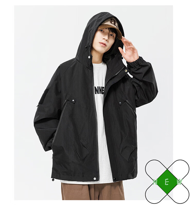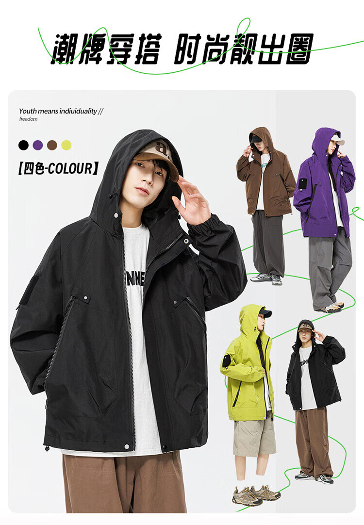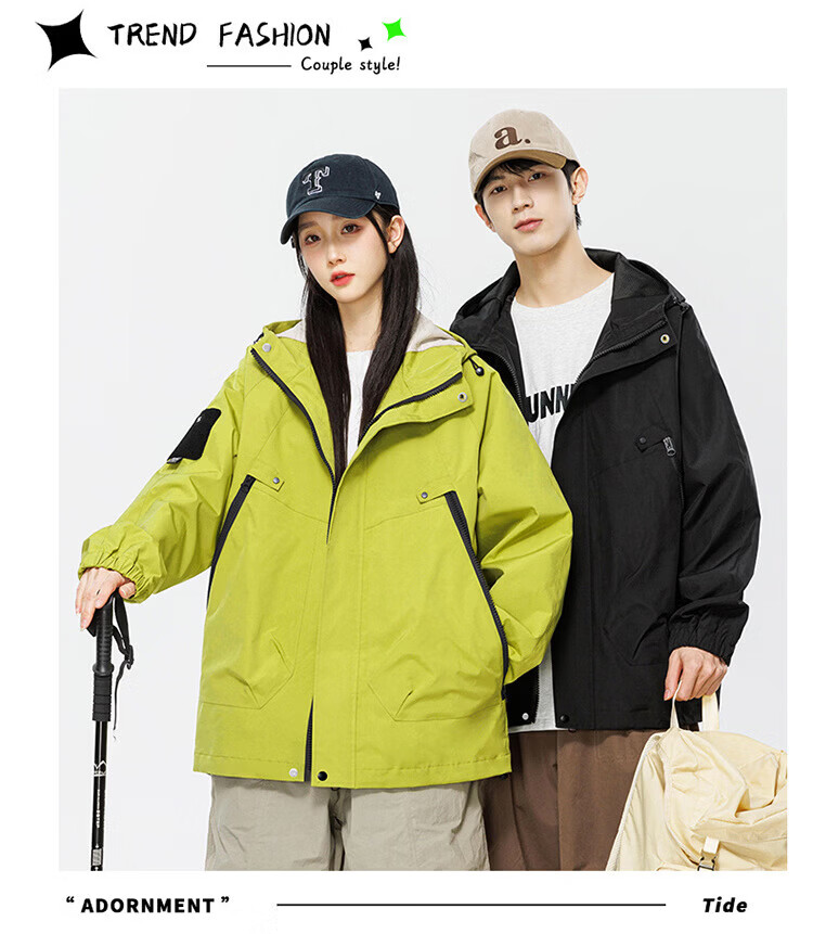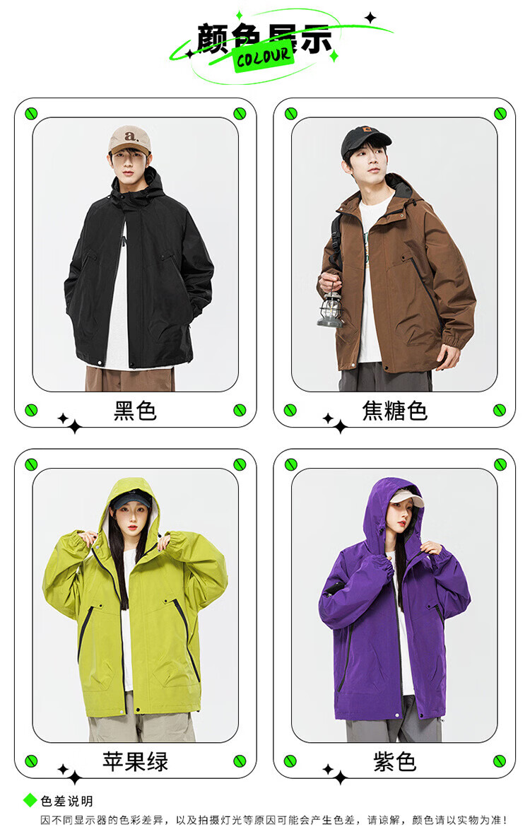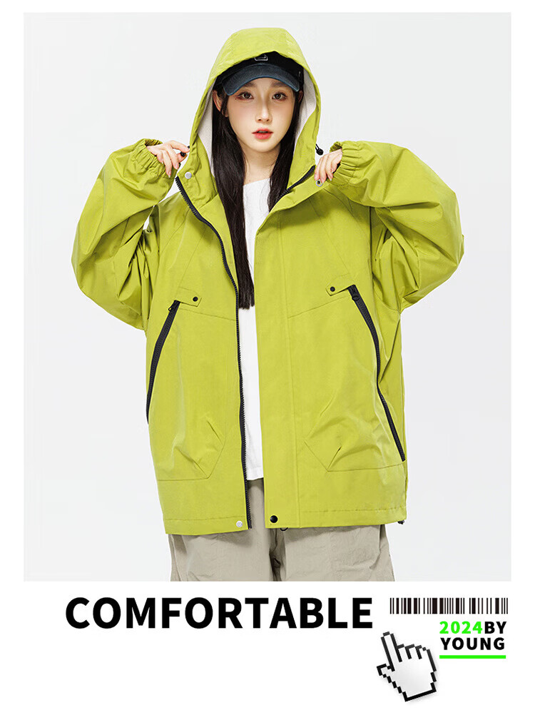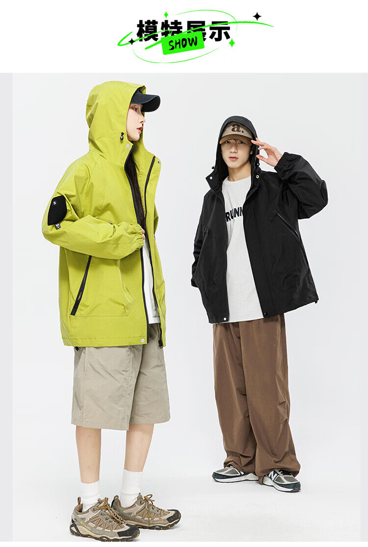 皮尔卡丹(pierre cardin)2026春季冲锋夹克外套男宽松潮流牌户外登山服百搭情侣款上衣 荧光绿 【单件】 【男女同款】 M