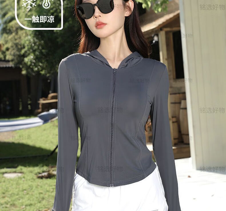 蕉下皇后原纱防晒衣女夏季新款薄款防紫外线冰丝透气防晒 灰色连帽无口袋[亲肤透气+专柜品 2XL 建议体重125-135斤