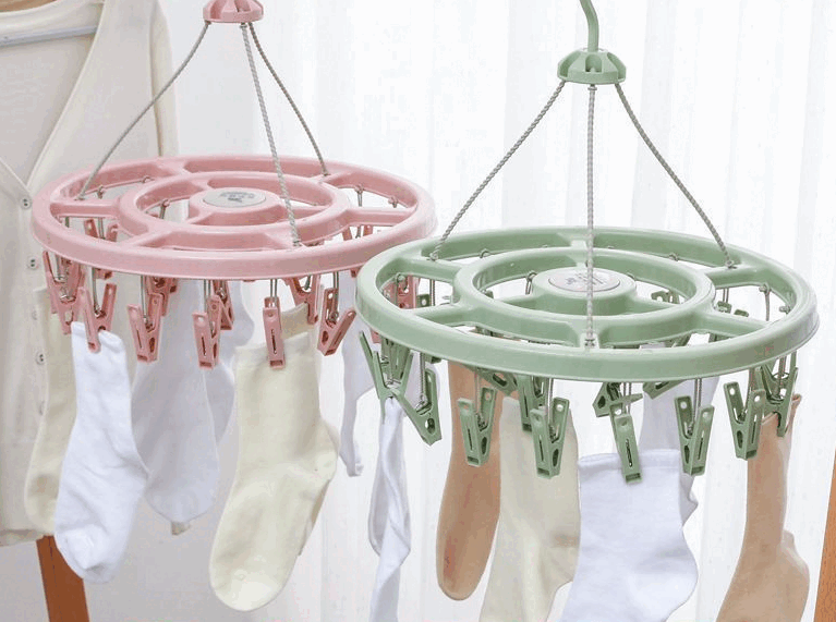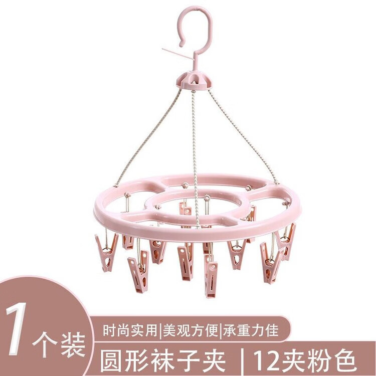 【厂家直供】成人袜子晾晒塑料32衣架防风儿童家用多功能架子多夹 圆形衣架-粉色-18夹-1个