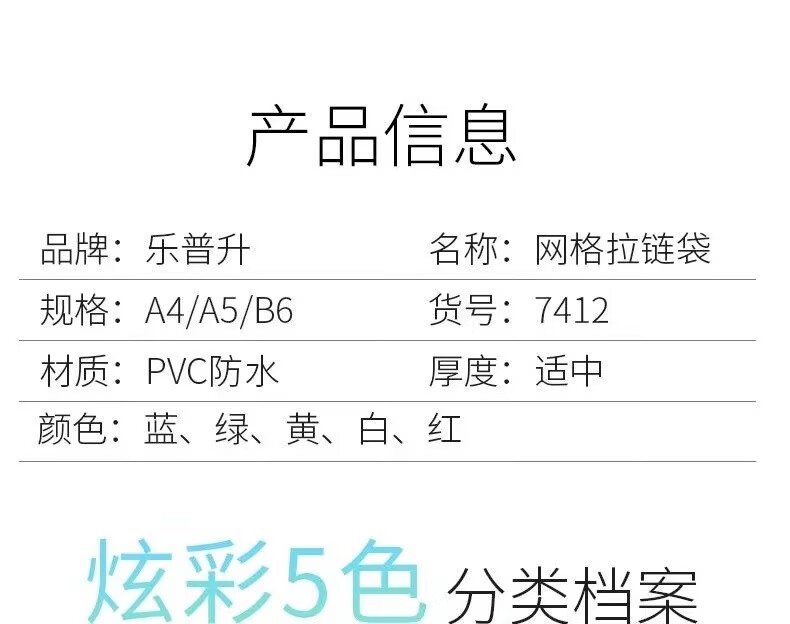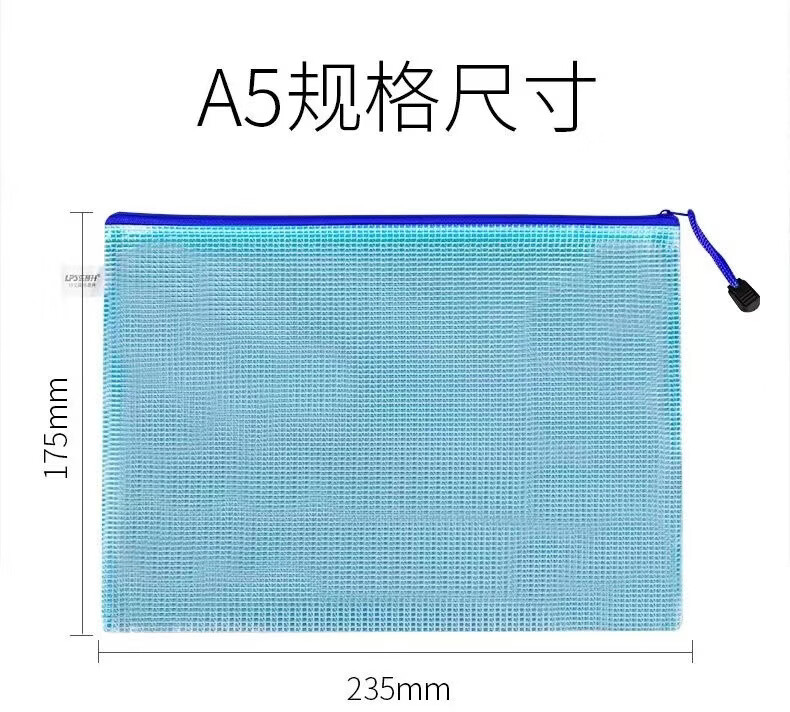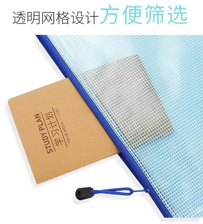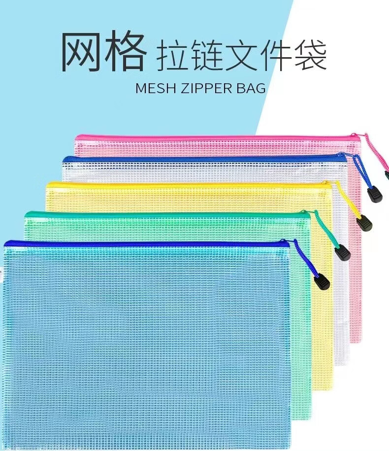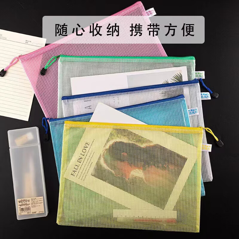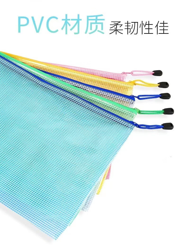 恬舒透明文件袋pvc网格拉链袋A4资料袋网格袋定 制印刷logo直供 混色 A4【5个】