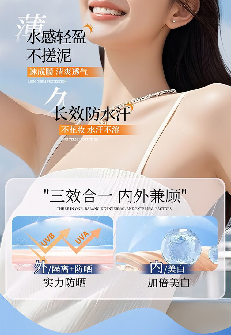 美白隔离防晒霜小粉帽高倍防晒伪素颜防紫外线养肤 3瓶