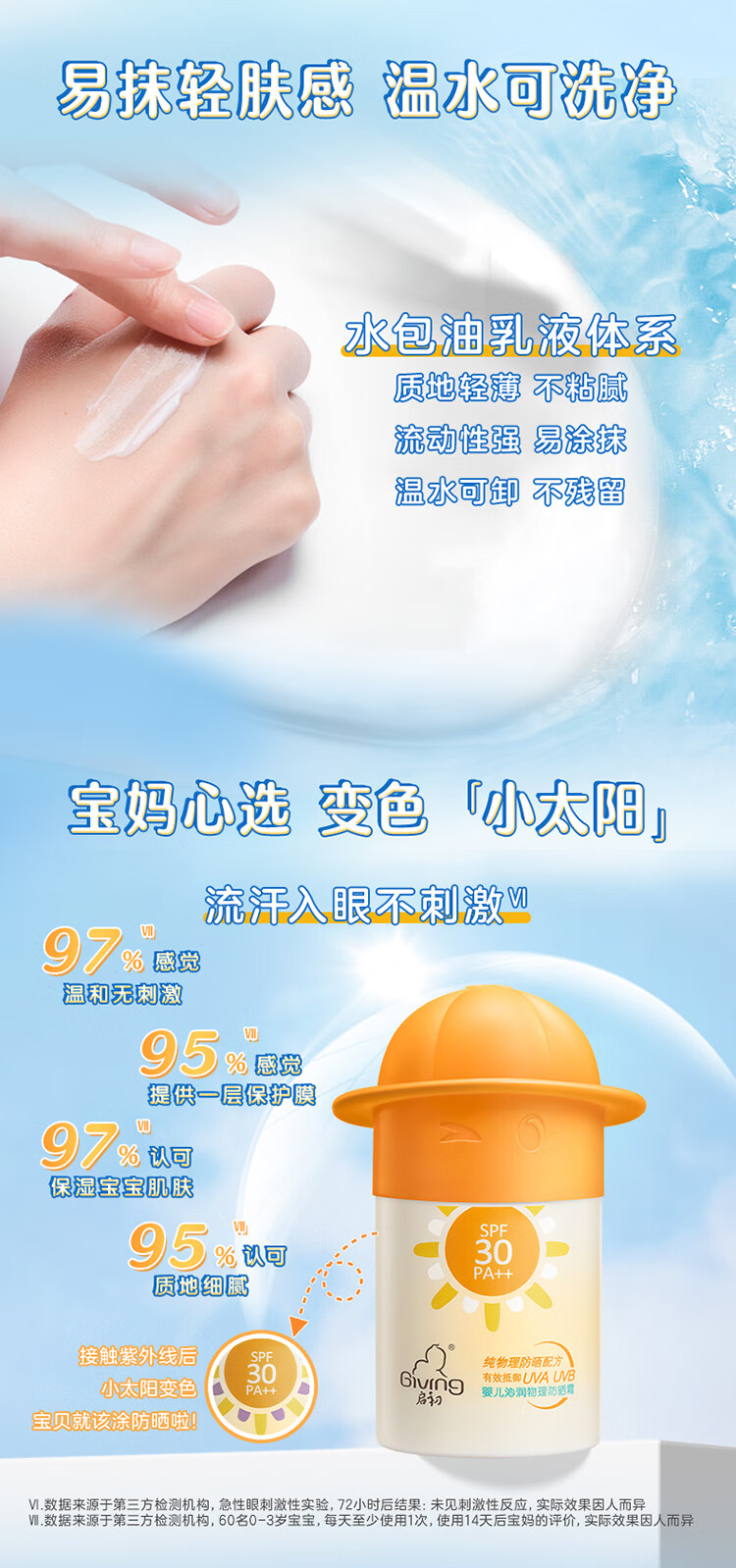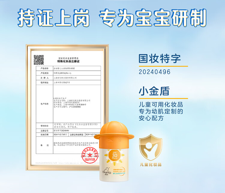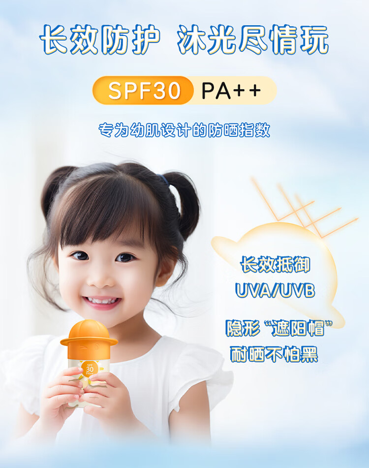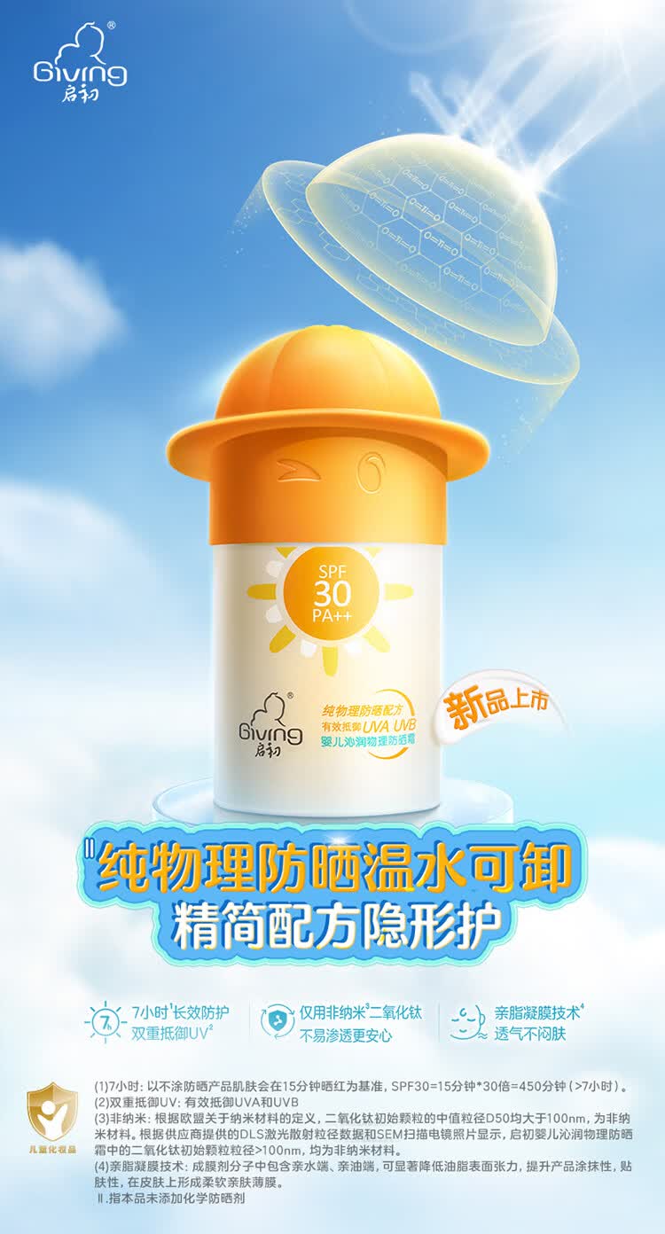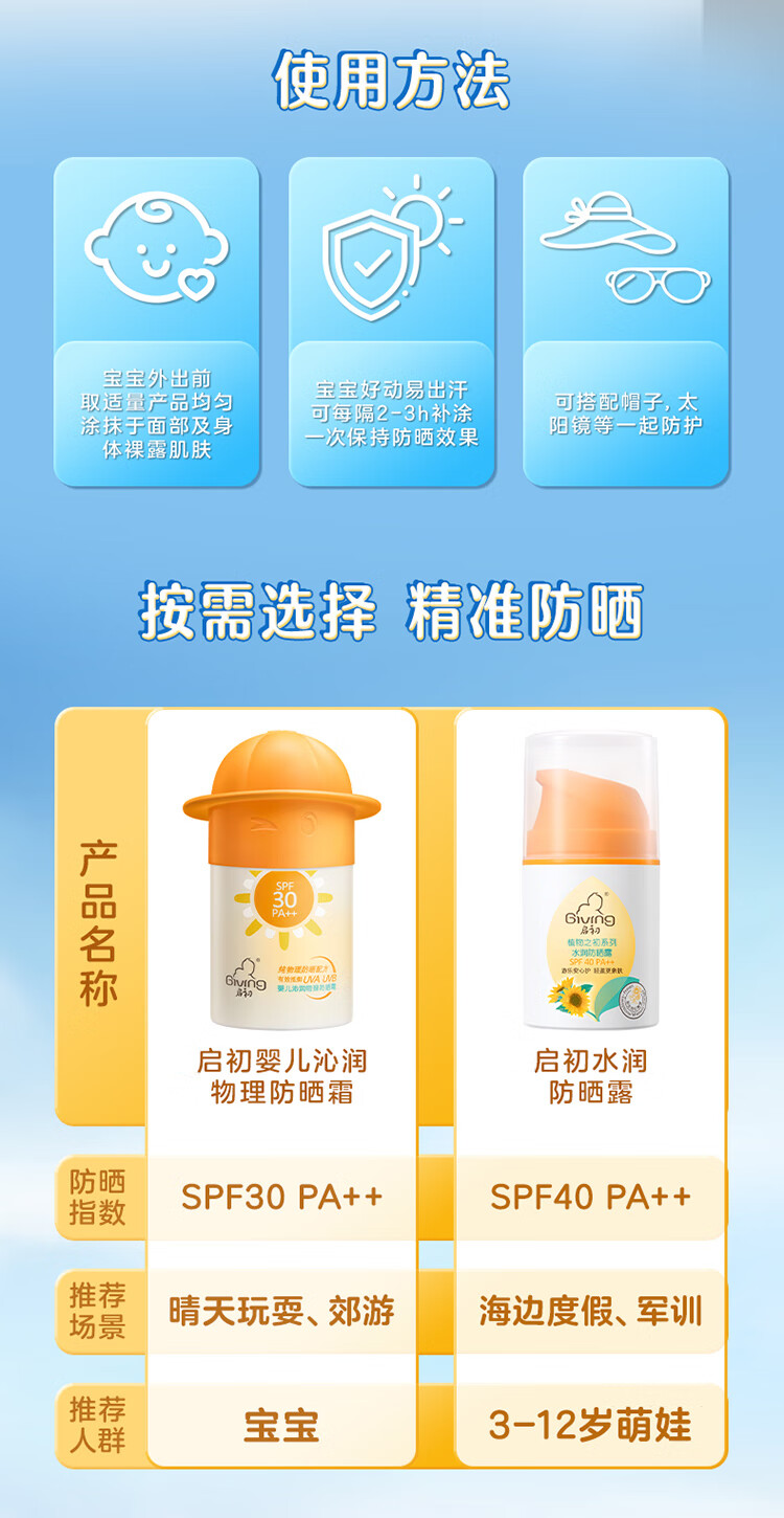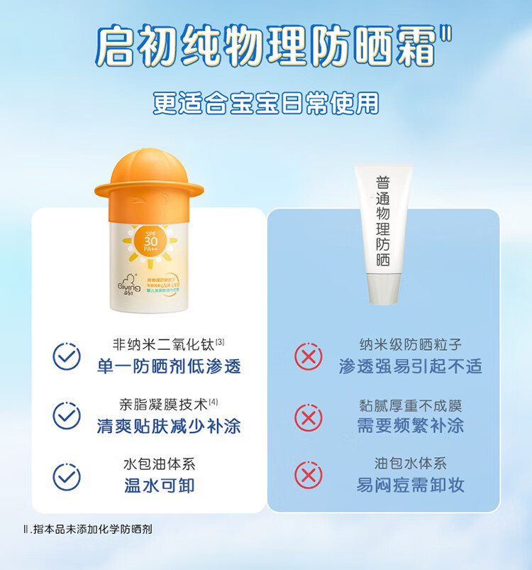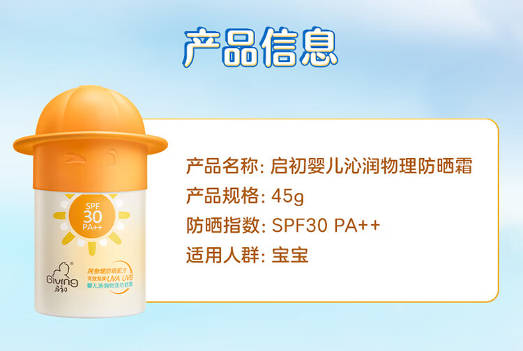 启初儿童SPF30防晒霜宝宝婴幼儿物理防晒清爽不油腻防晒温水可卸0-3岁 【轻薄耐晒】物理防晒霜45g