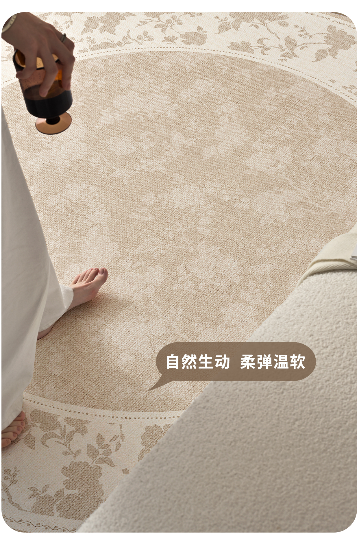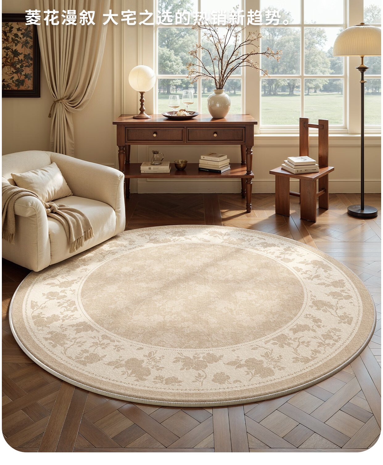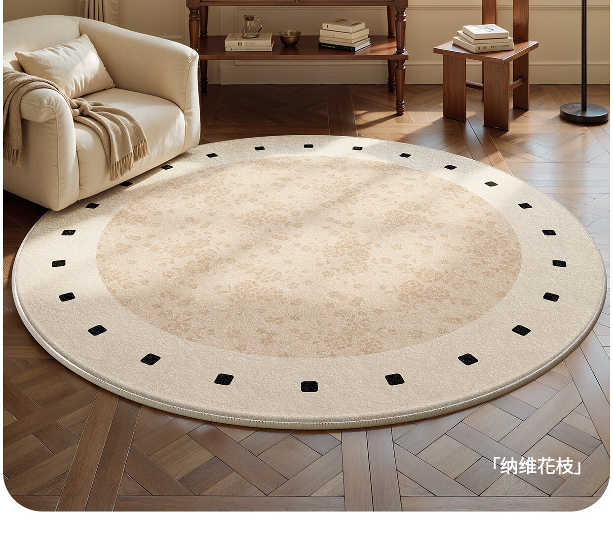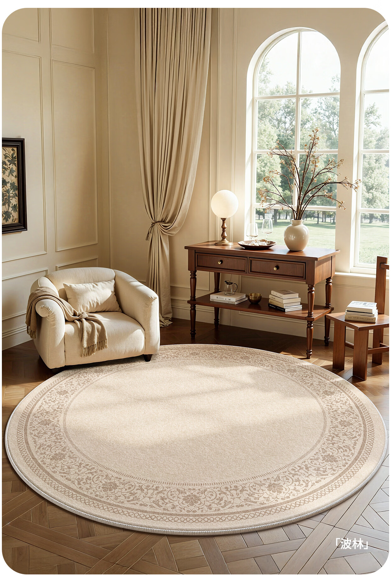 Y U-LIVE圆形地毯客厅法式奶油风2026新款卧室床边防水衣帽间椅子摇椅地垫 S仿羊绒-浔岚圆形 直径240cm