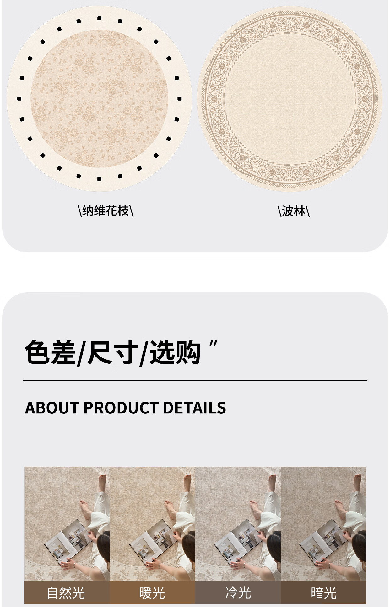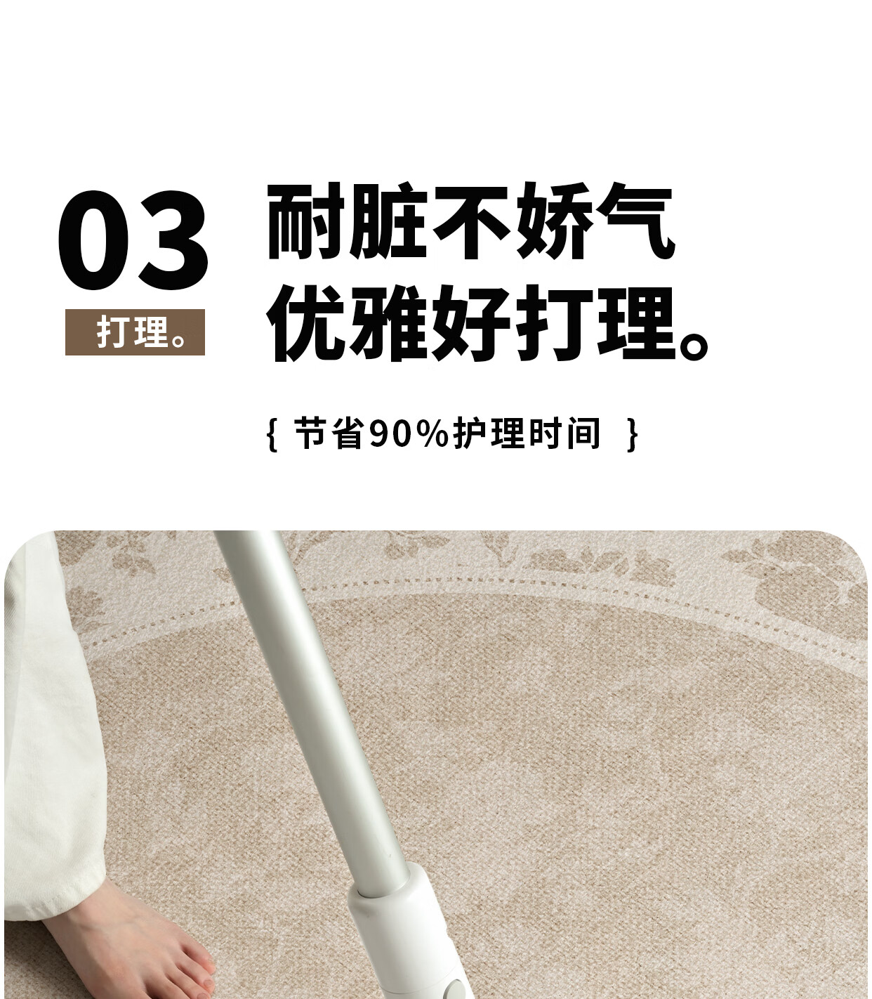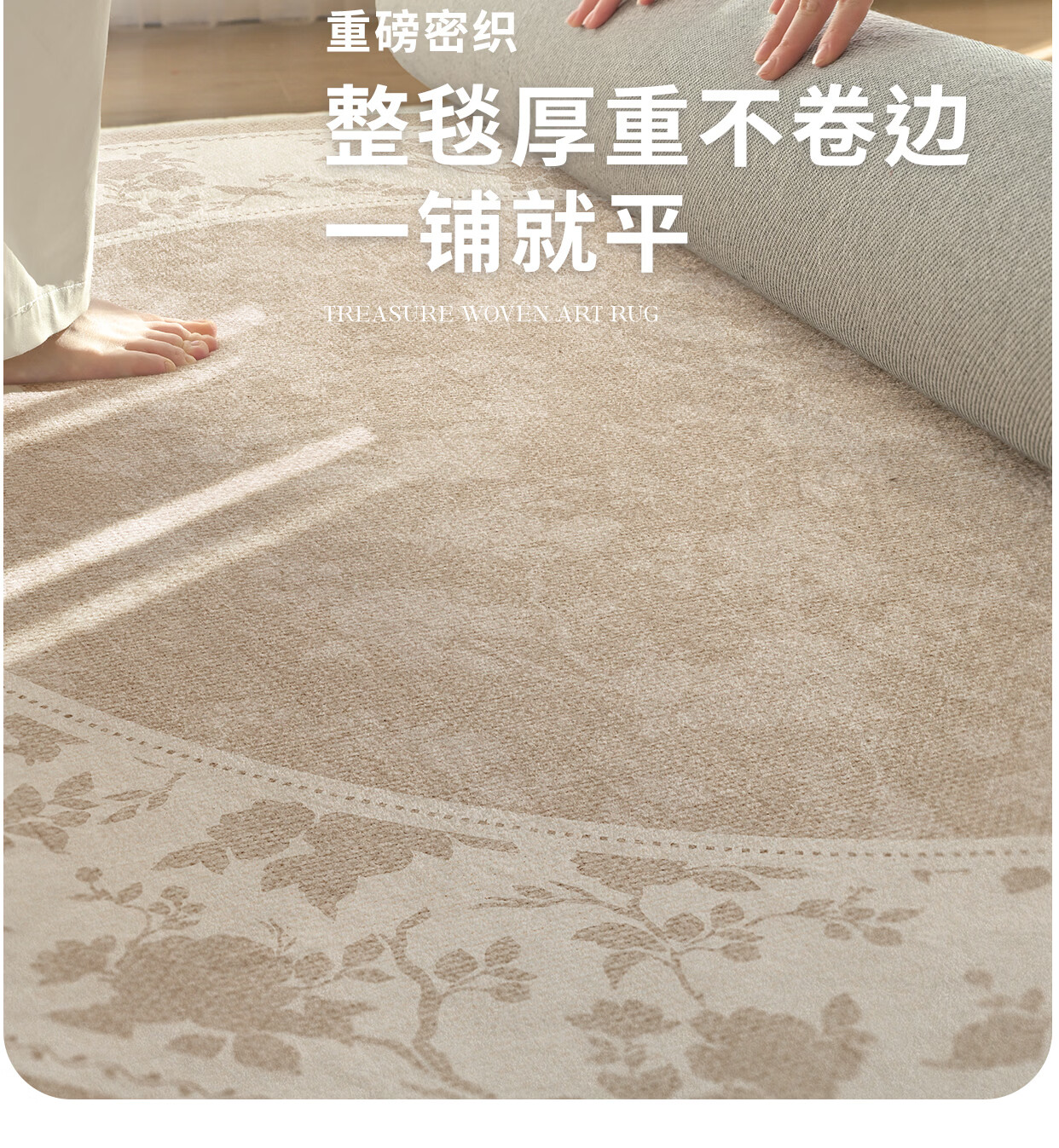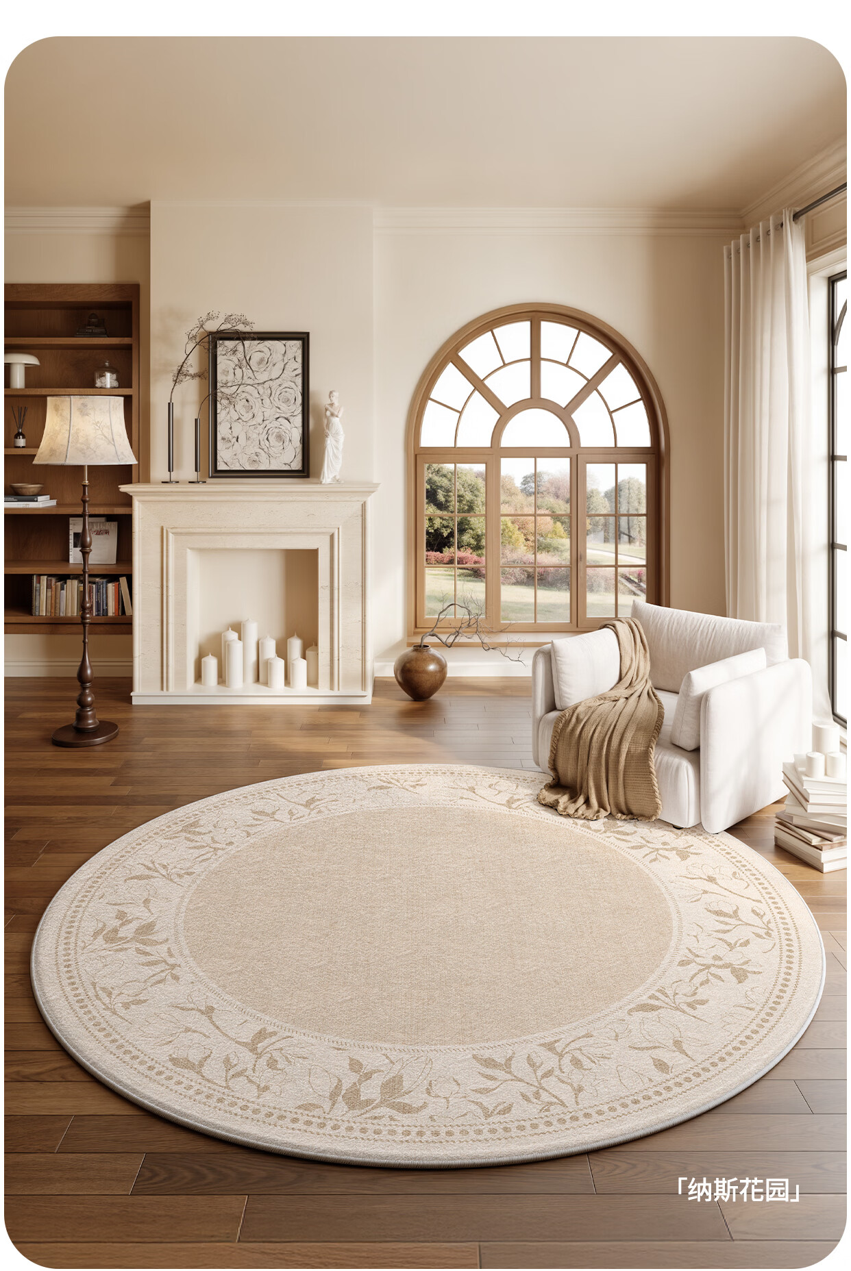 Y U-LIVE圆形地毯客厅法式奶油风2026新款卧室床边防水衣帽间椅子摇椅地垫 S仿羊绒-浔岚圆形 直径240cm