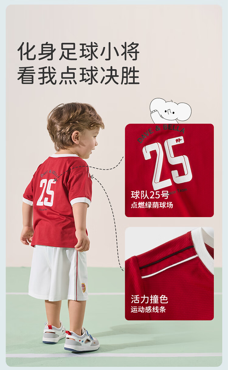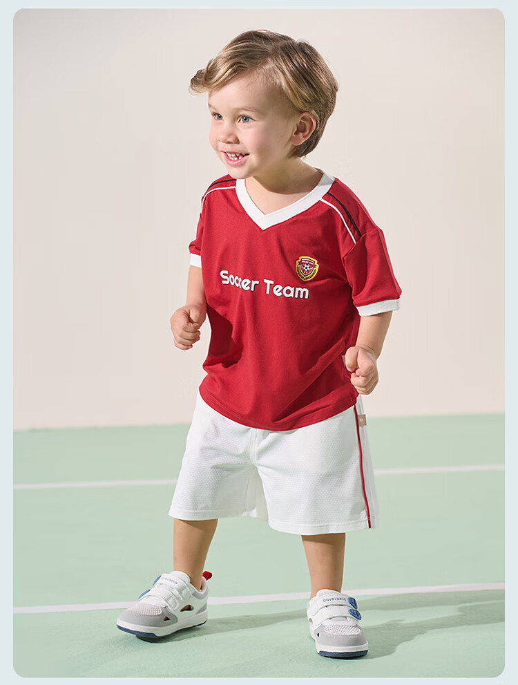 戴维贝拉五分裤套装夏装男童中大童抗菌凉感防晒运动薄两件套