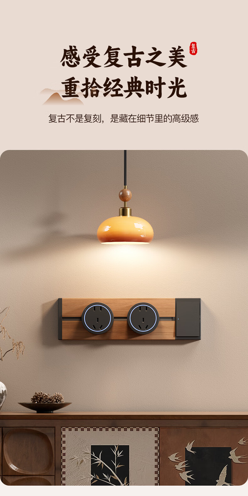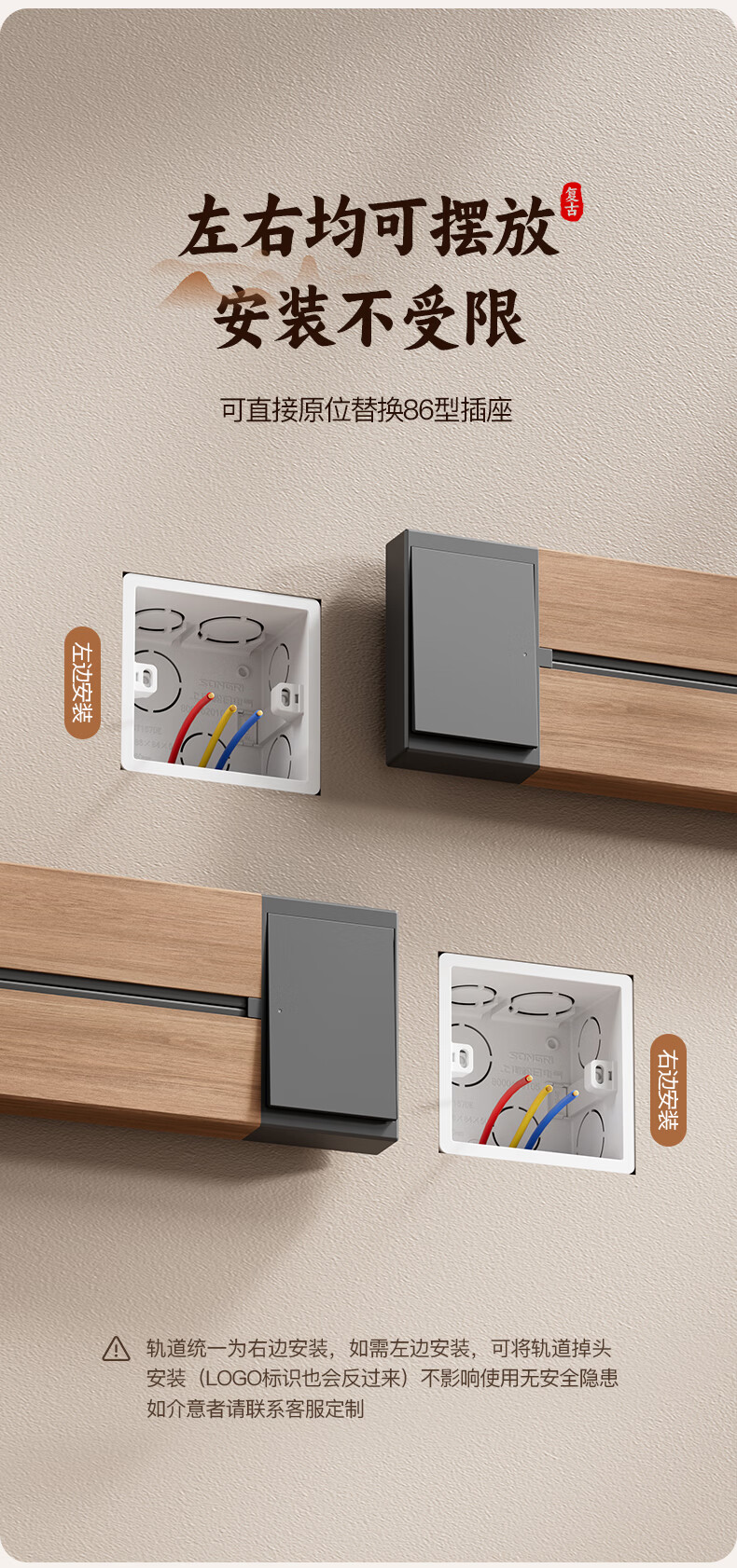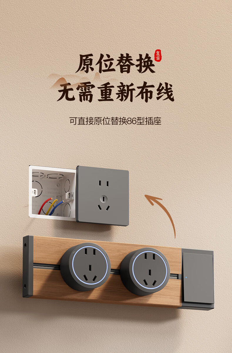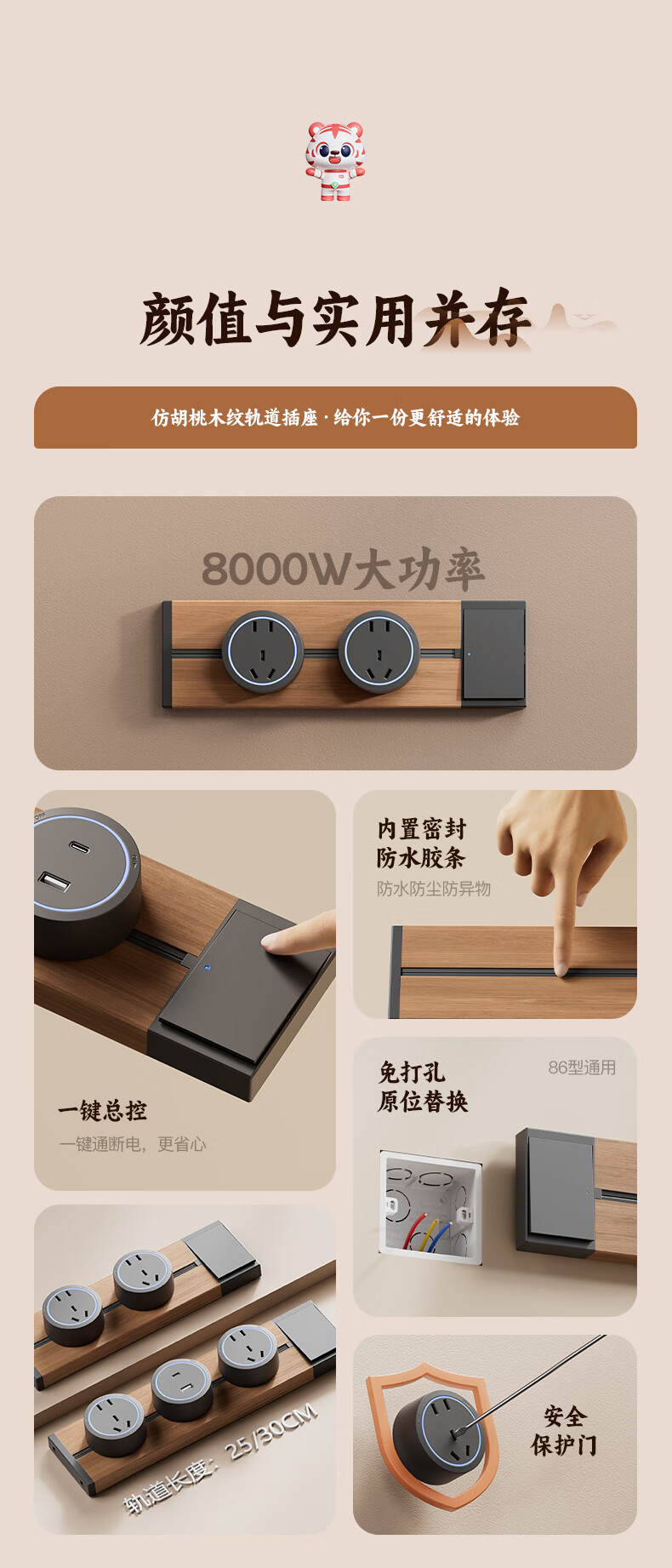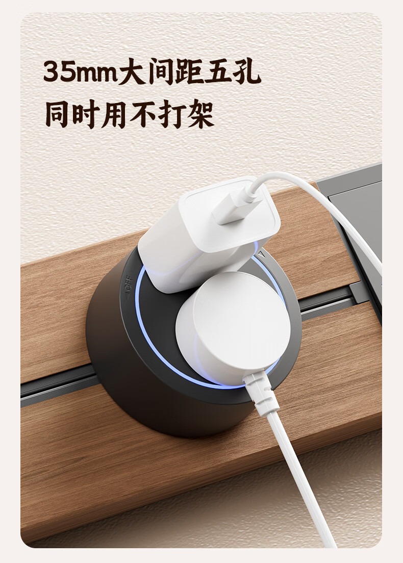 国际电工木纹轨道插座迷你款25cm超短可移动明装家用滑轨磁吸排插小尺寸 【复古木纹】25cm+2个大五孔