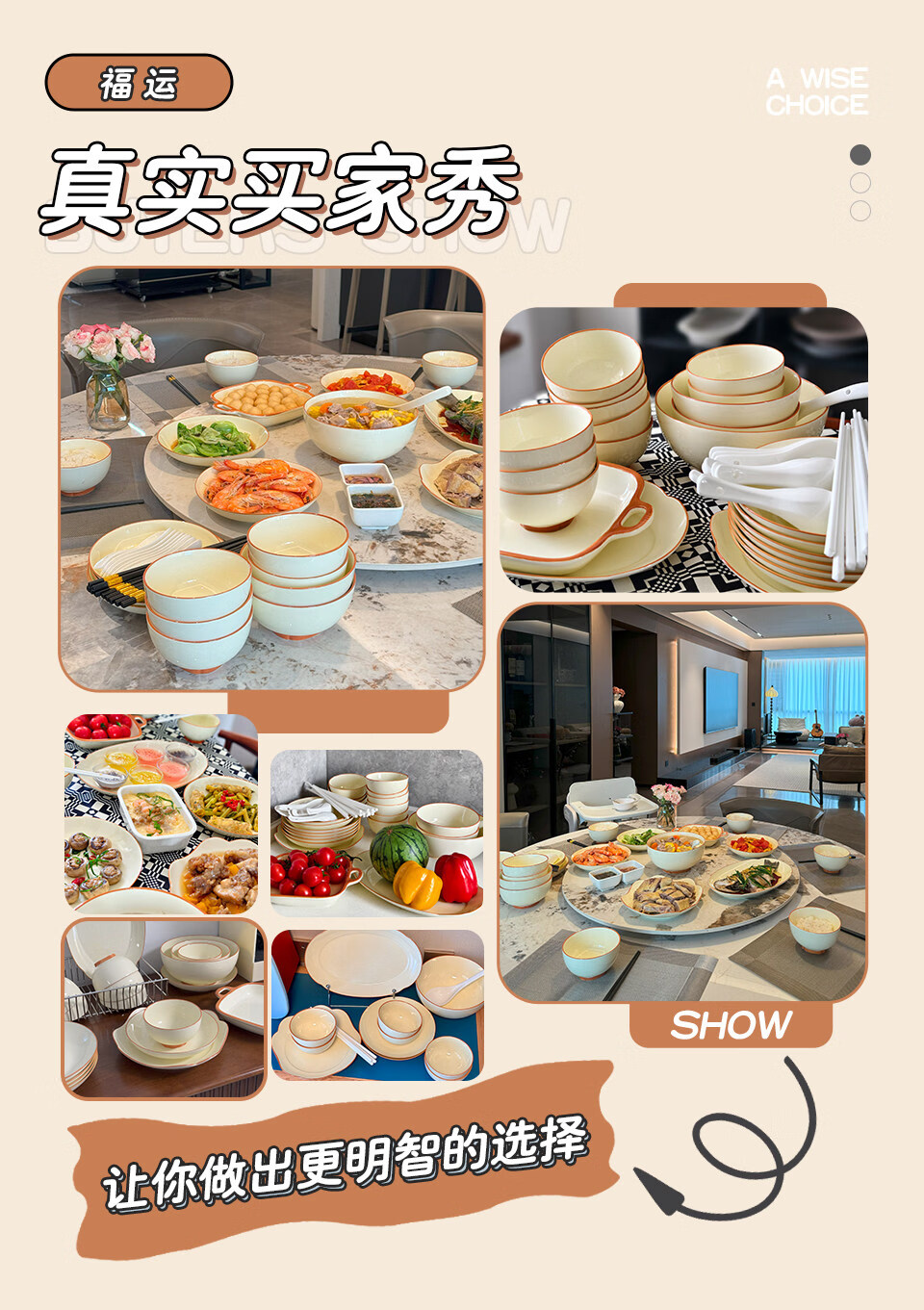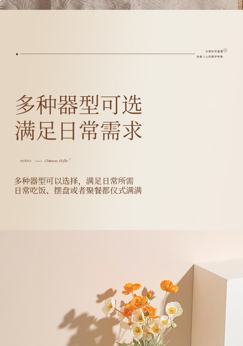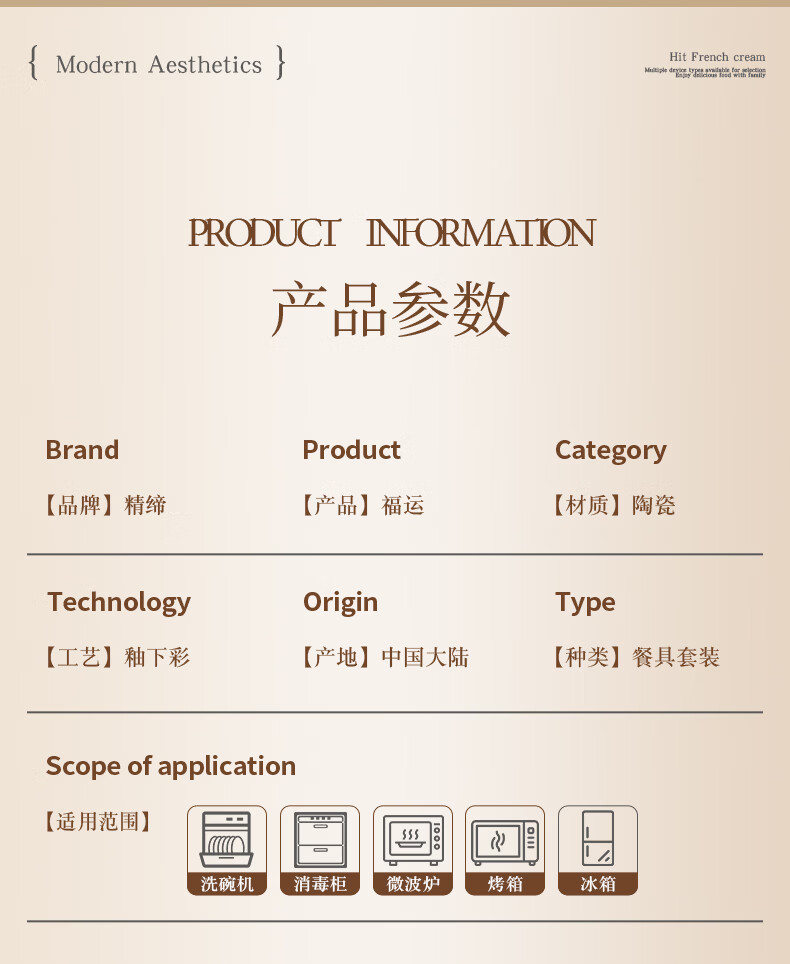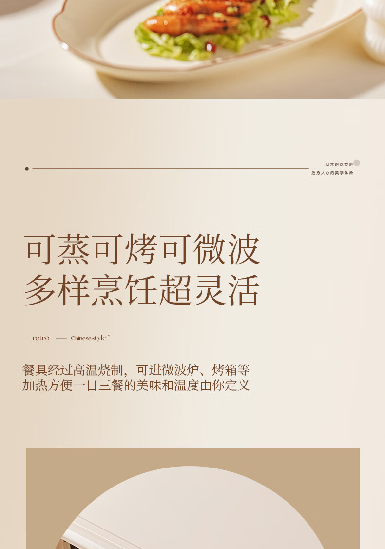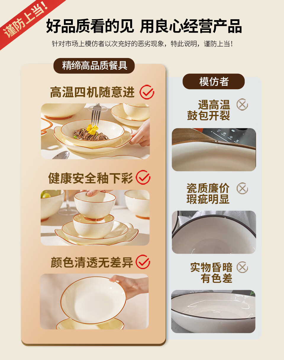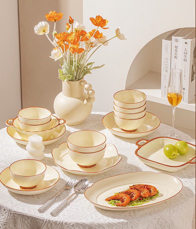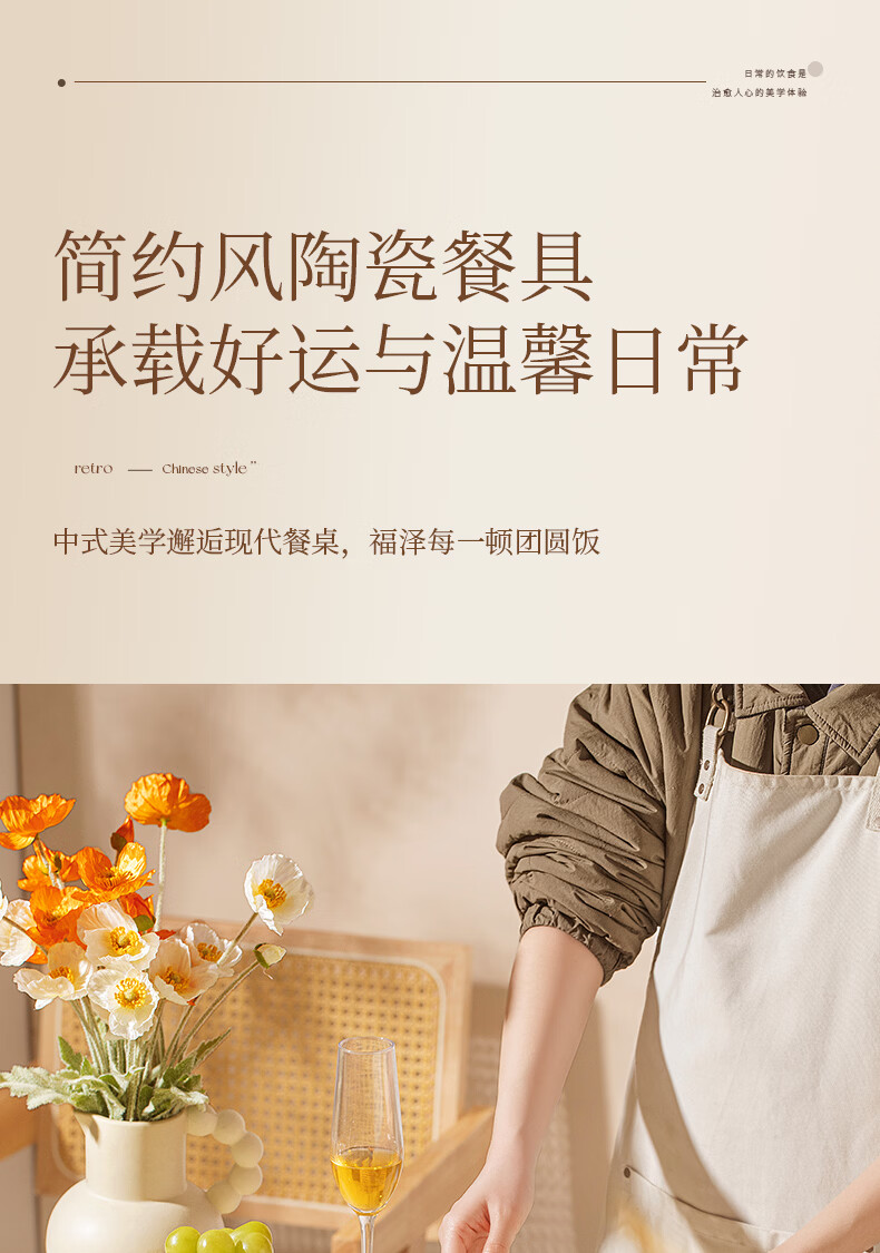精缔陶瓷JINGDI釉下彩碗碟套装家用2026高颜值奶油风陶瓷餐具套装碗盘筷乔迁碗具 【店长推荐】福运十人食54件套