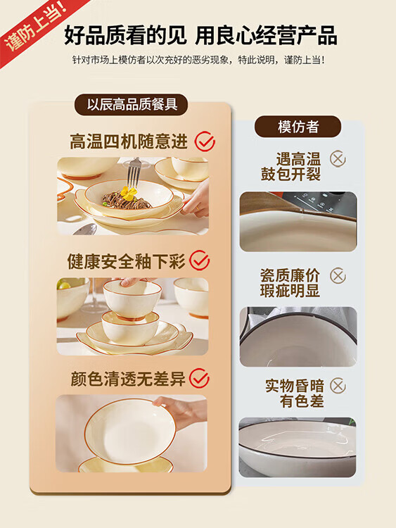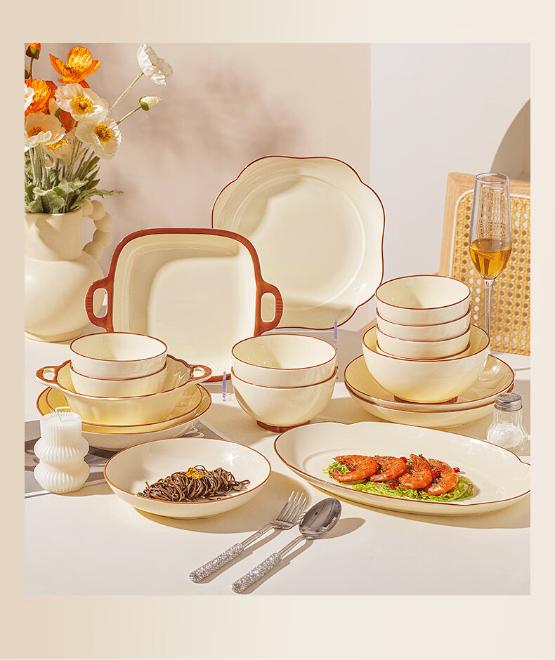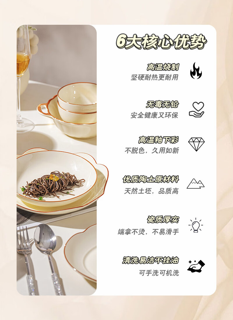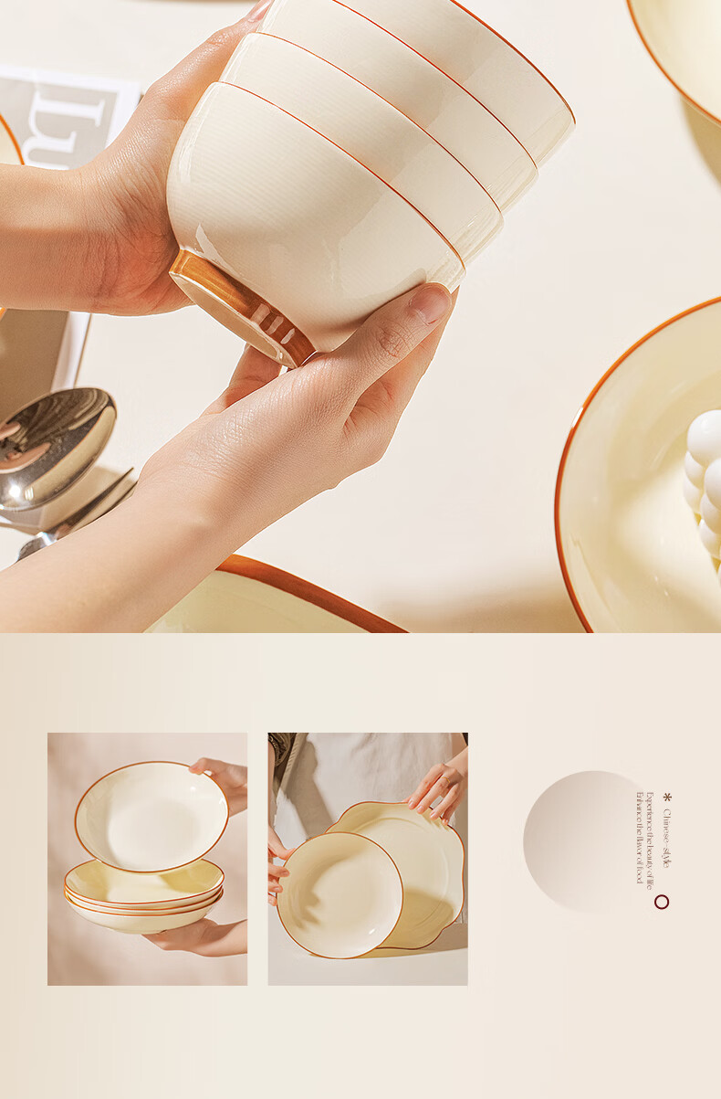 精缔陶瓷JINGDI2025新款碗碟套装家用碗筷乔迁高温骨瓷餐具套装景德镇陶瓷碗盘子 【店长推荐】66件升级配大汤碗 66件套
