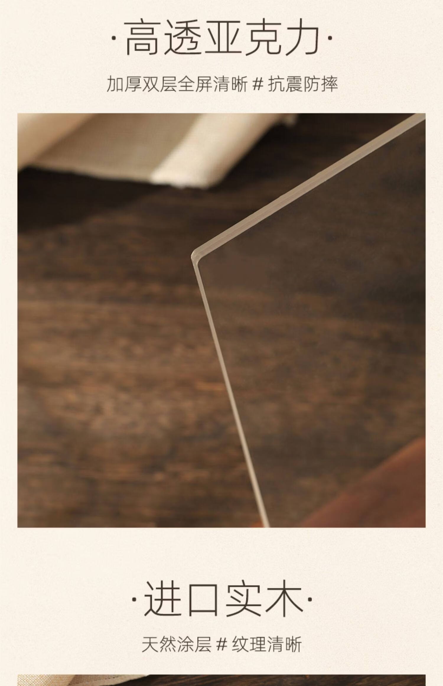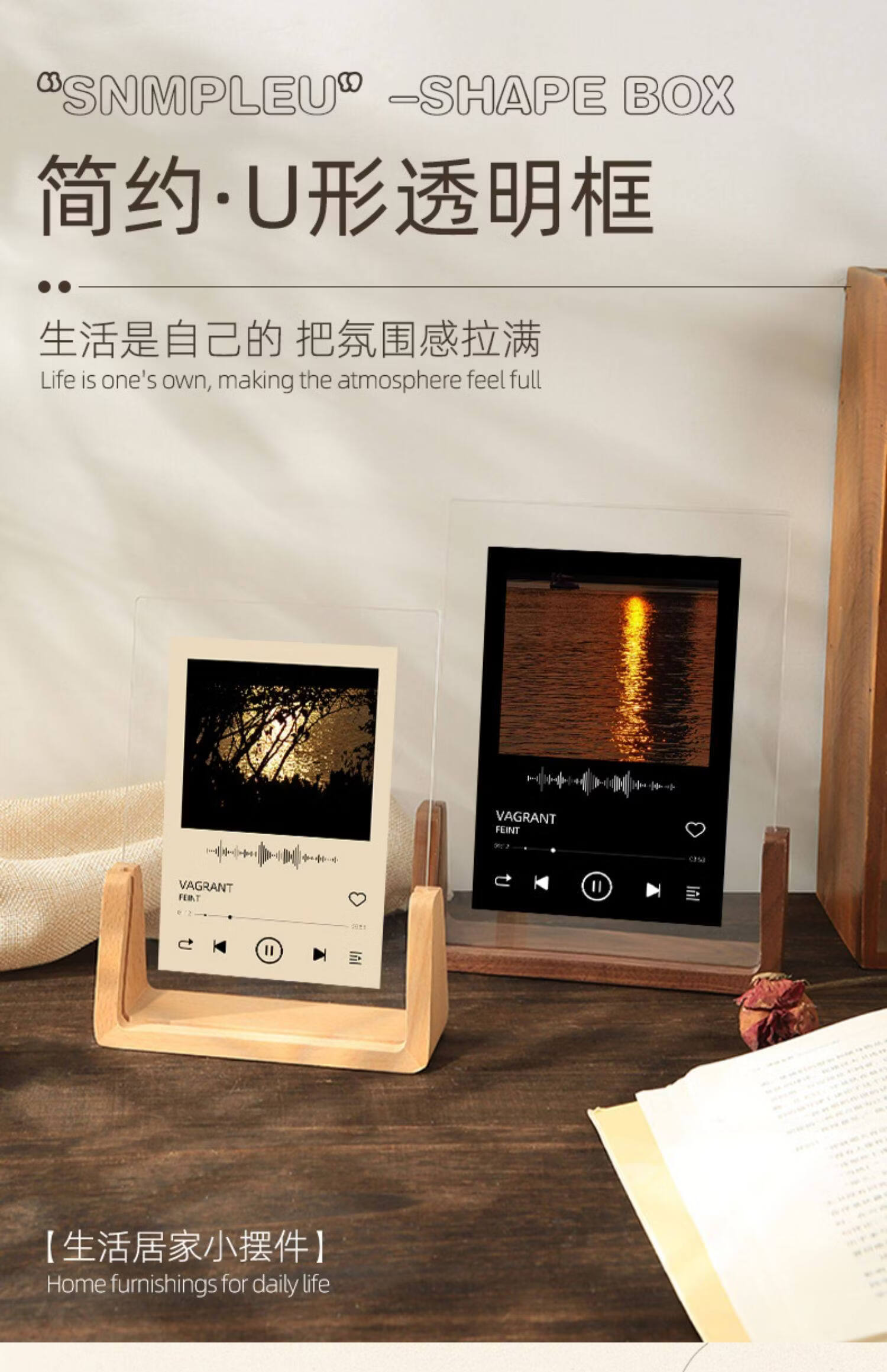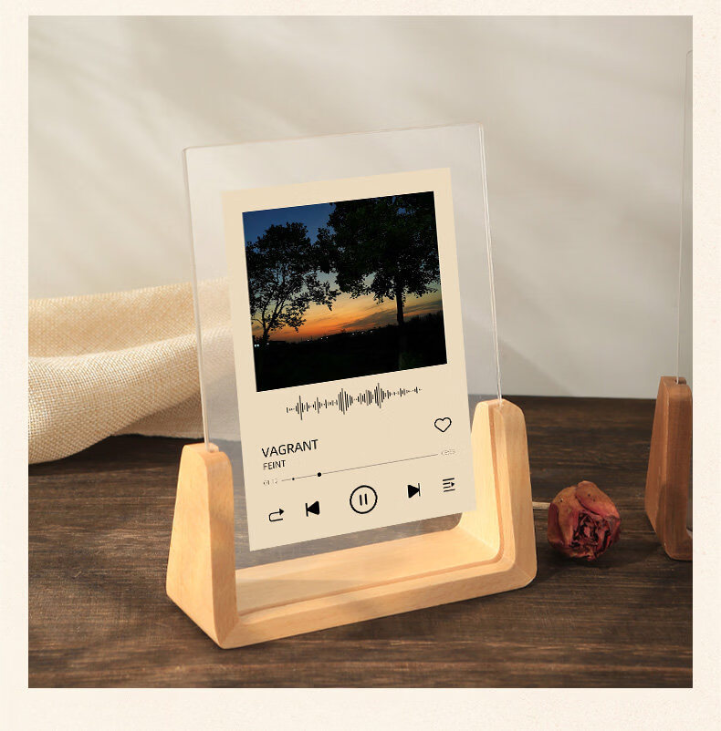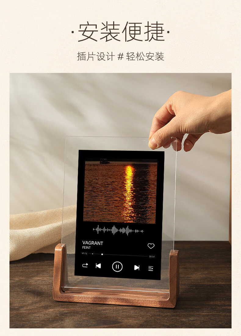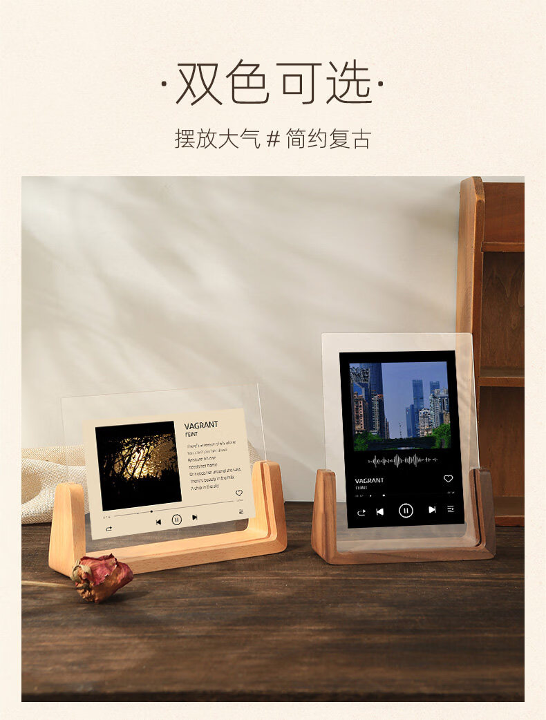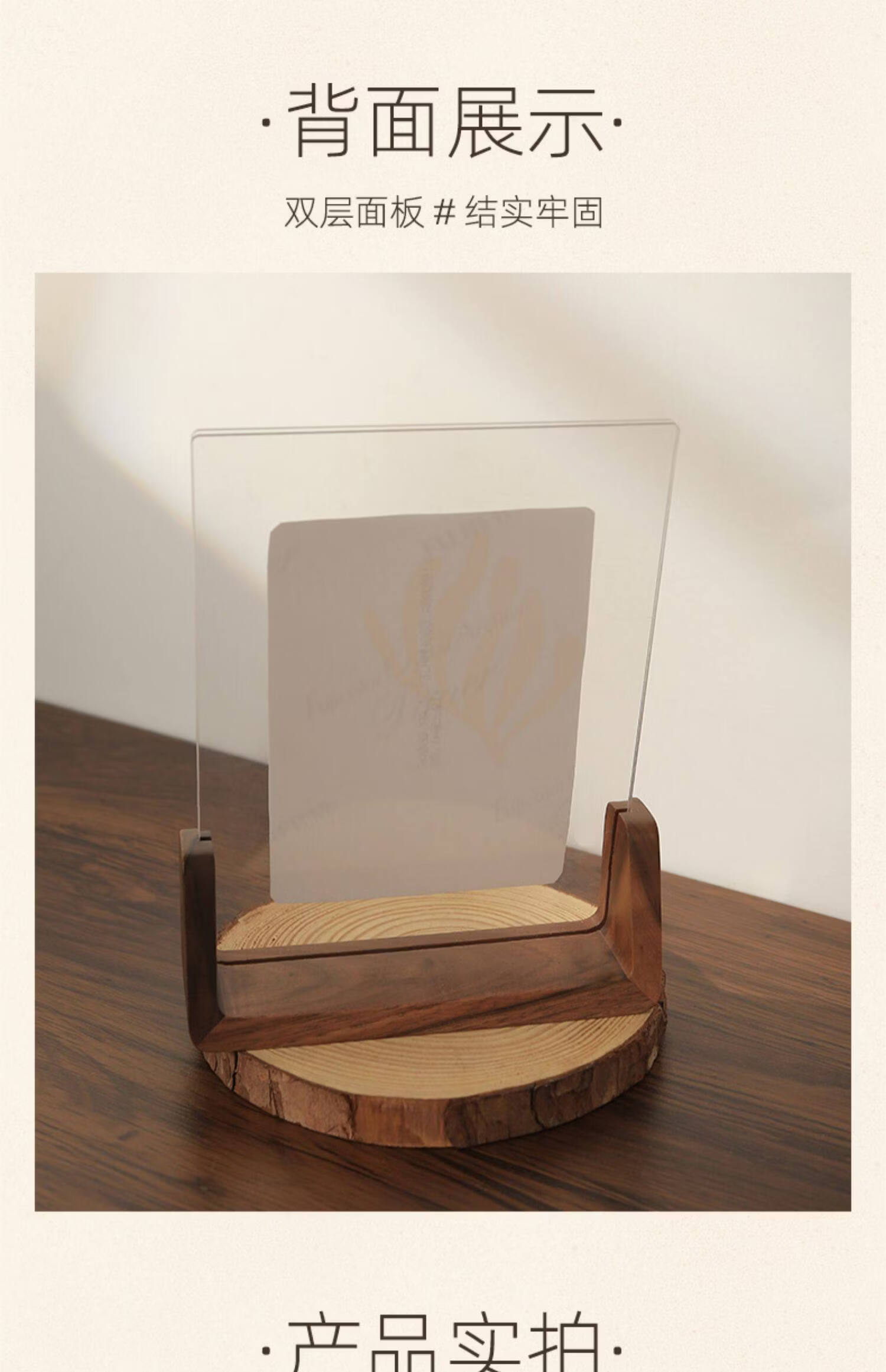 诗元网红U型透明相框摆台6寸7亚克力框架打印照片加画框8实木摆件礼物 澳洲榉木-横版 5寸【满屏放8.9*12.7cm】【一抽一拉 简单更换】