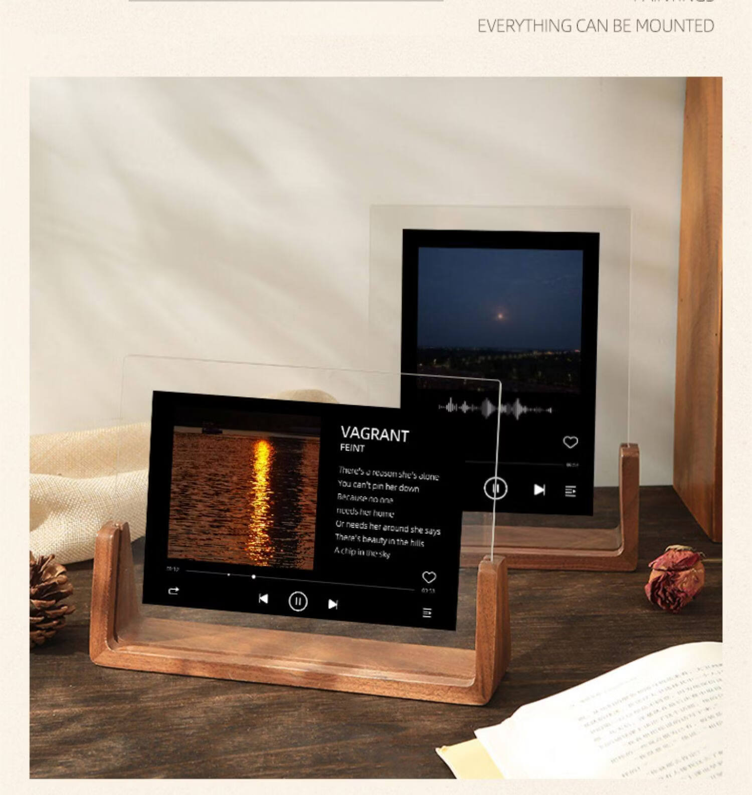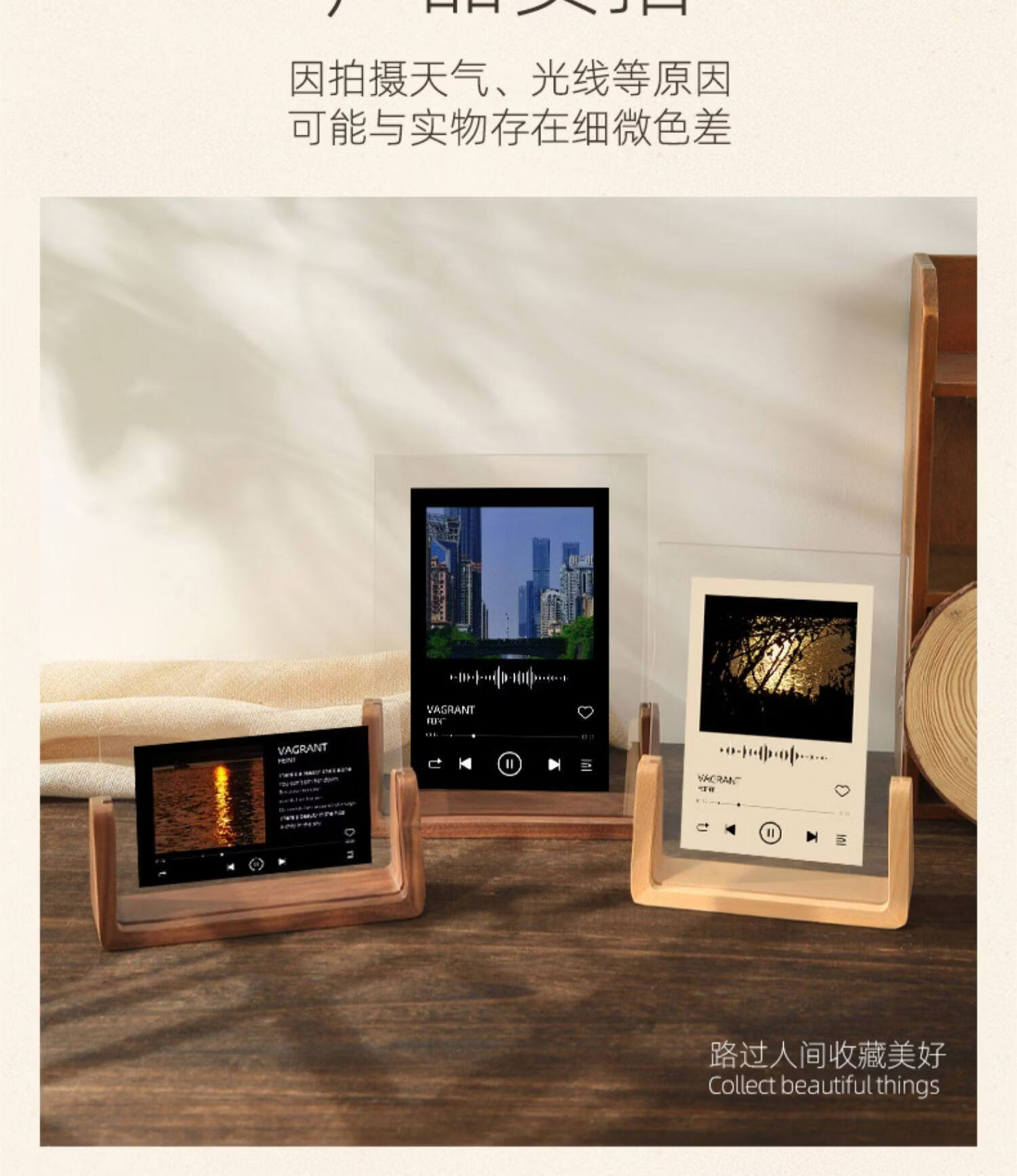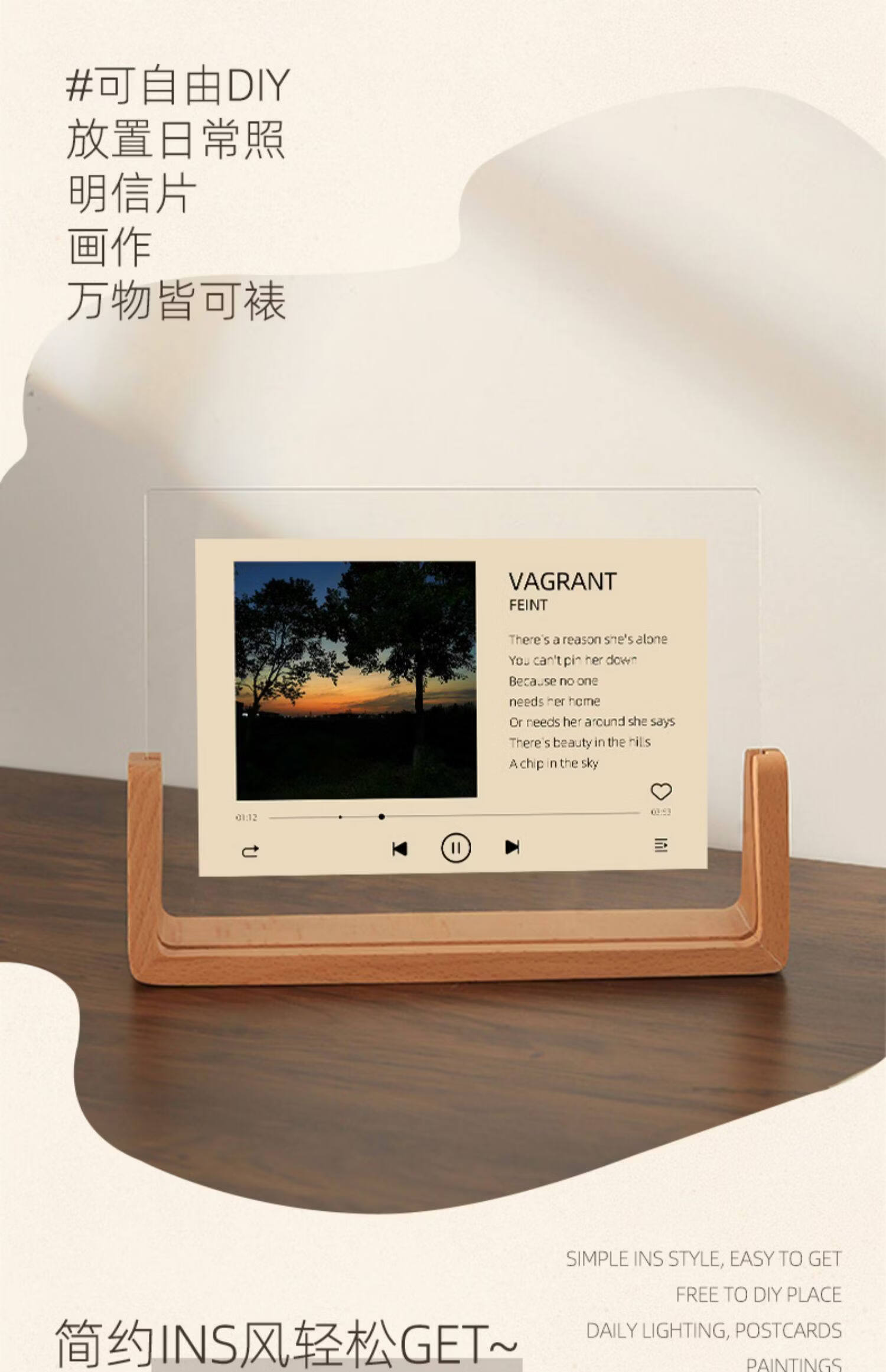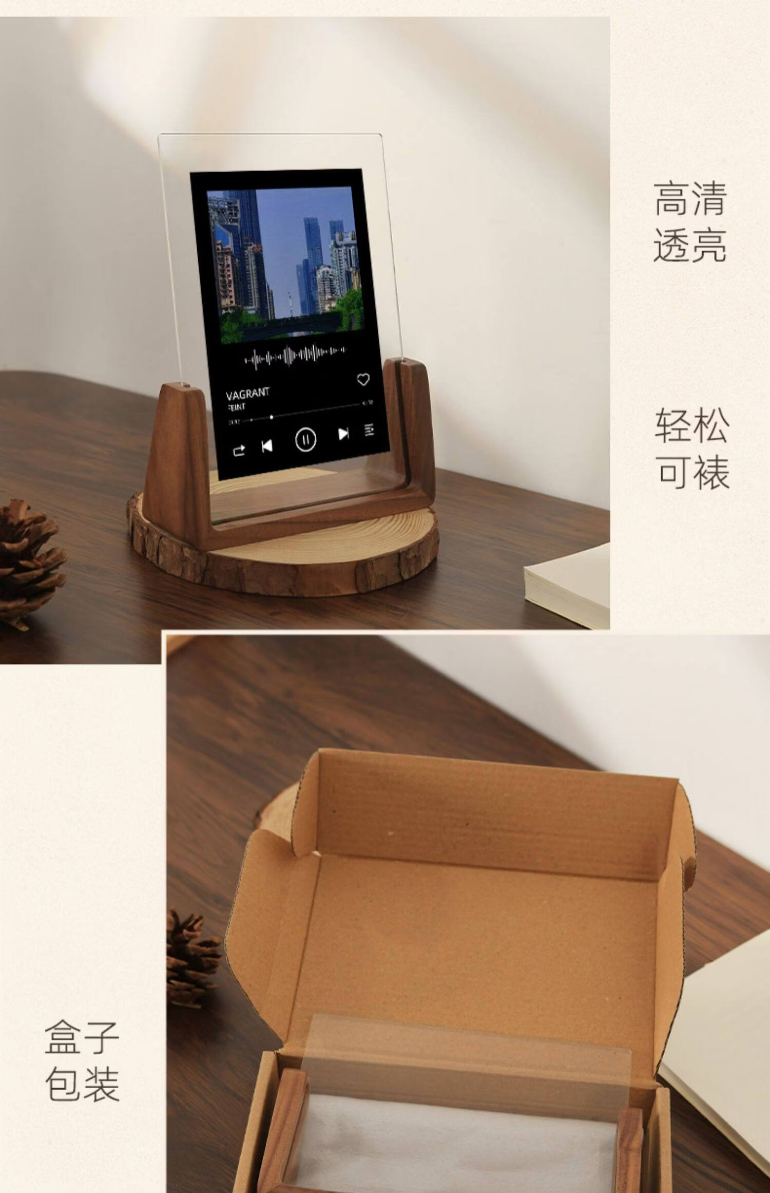 诗元网红U型透明相框摆台6寸7亚克力框架打印照片加画框8实木摆件礼物 澳洲榉木-横版 5寸【满屏放8.9*12.7cm】【一抽一拉 简单更换】