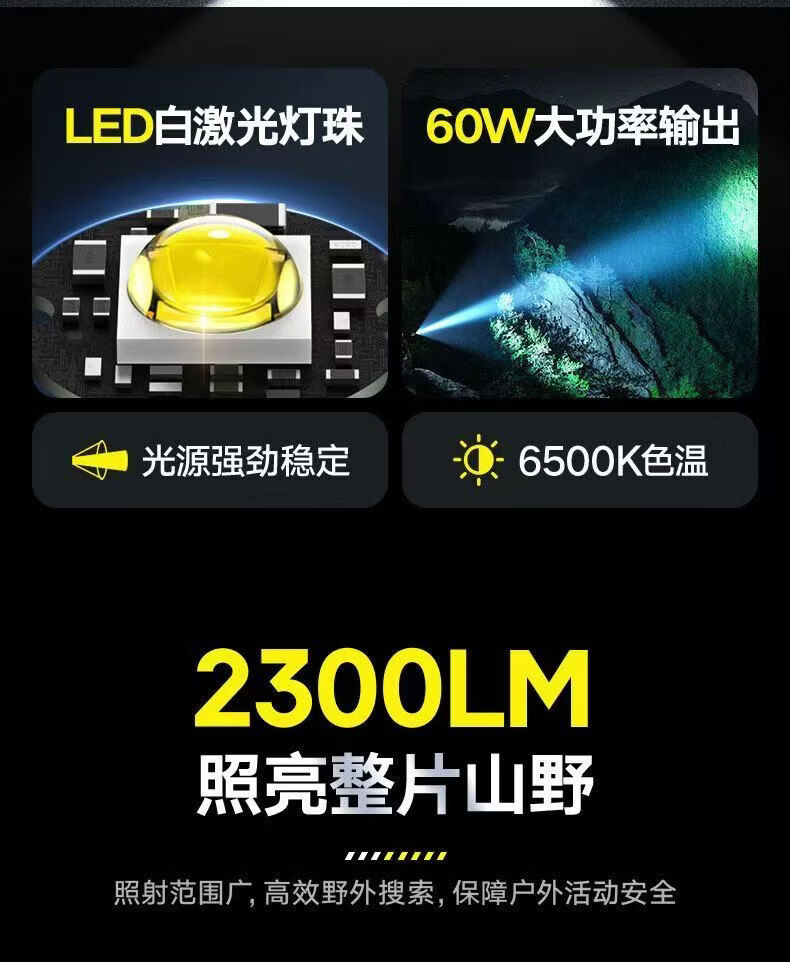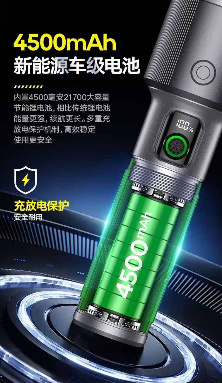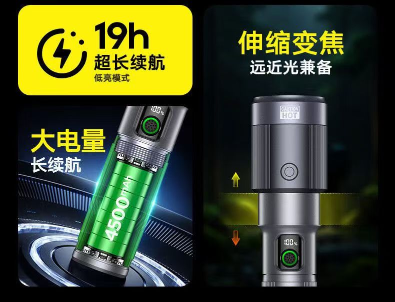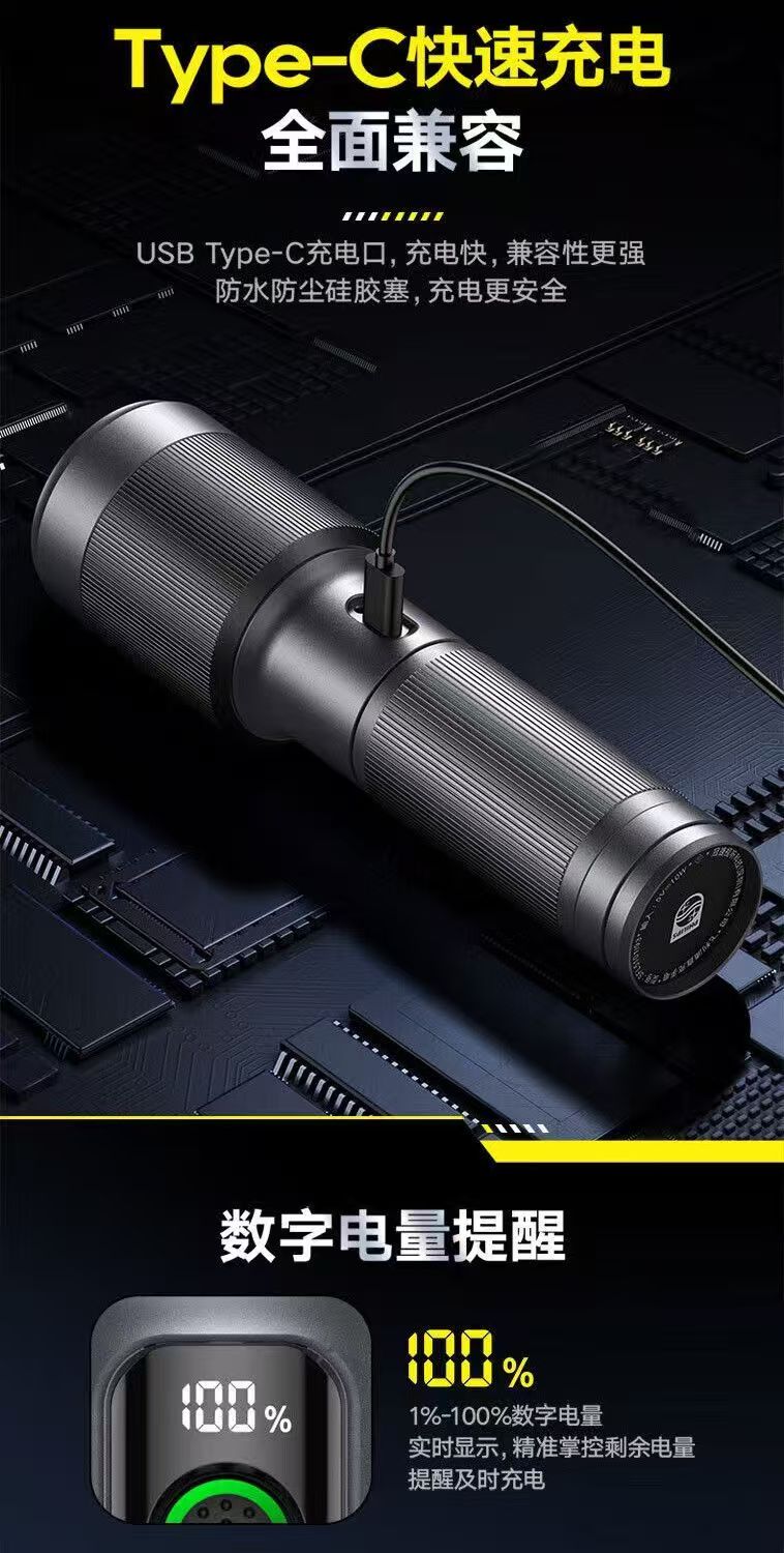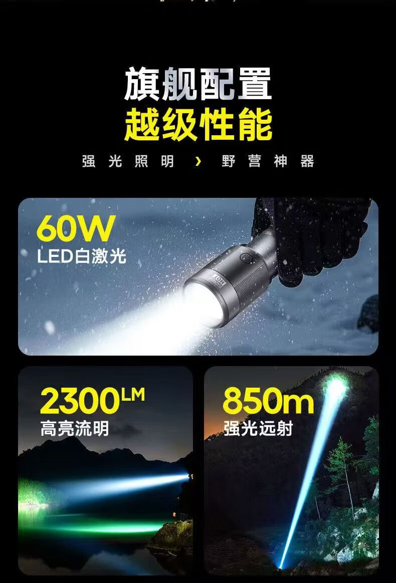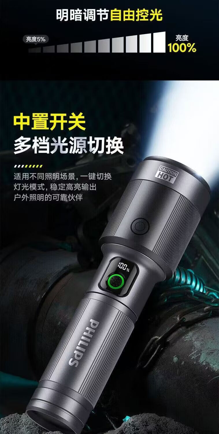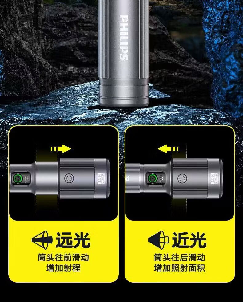 飞利浦手电筒高亮变焦手电强光充电户外远射长久续航户外应急照明手电SFL5101 60W/4500毫安/变焦/SFL5101