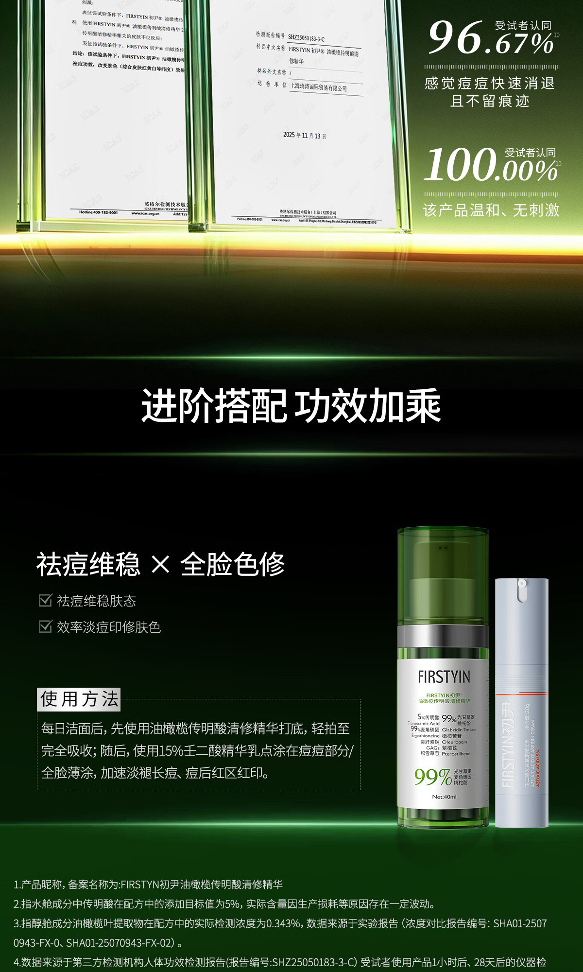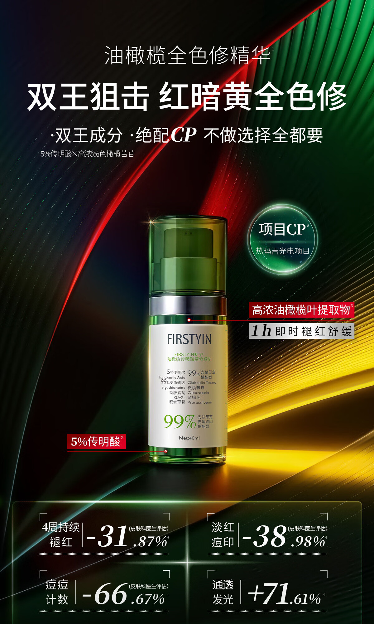 初尹(FIRSTYIN)油橄榄传明酸精华清修控油抗氧速效褪红黄防反黑舒缓色修 40ml【新品上市】赠同款1.4ml试用装