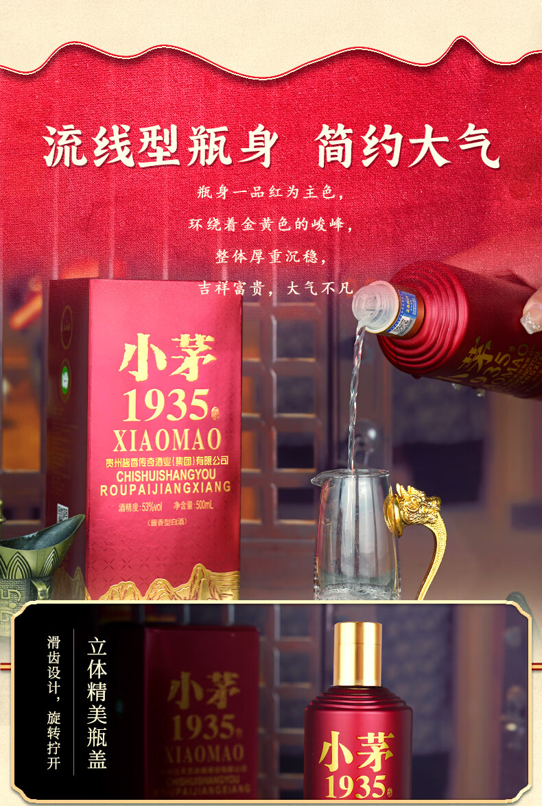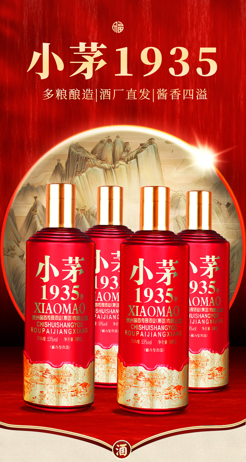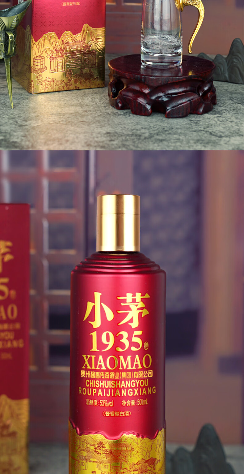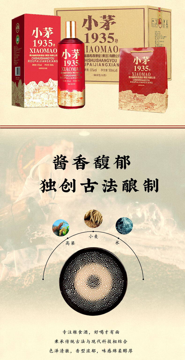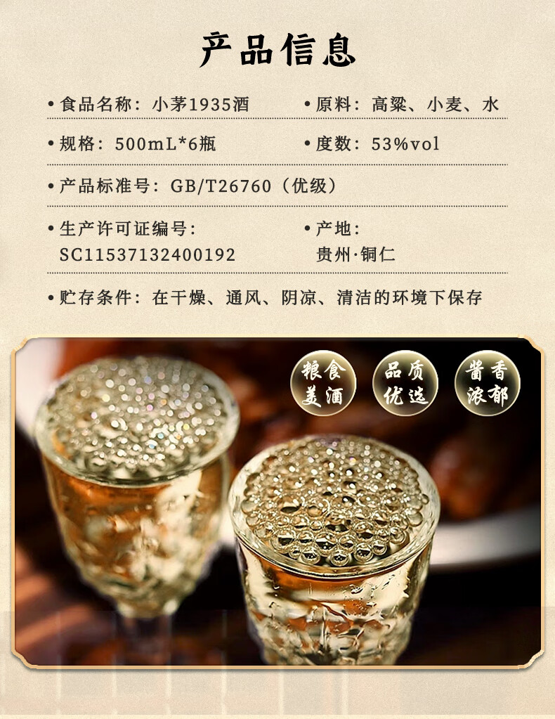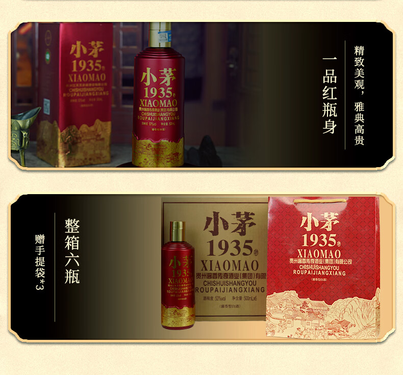 贵州53度酱香型 粮食酿造高档礼盒 清仓处理小茅1935白酒3 53度 500mL 6瓶 国酱1935 整箱【送3个礼袋】