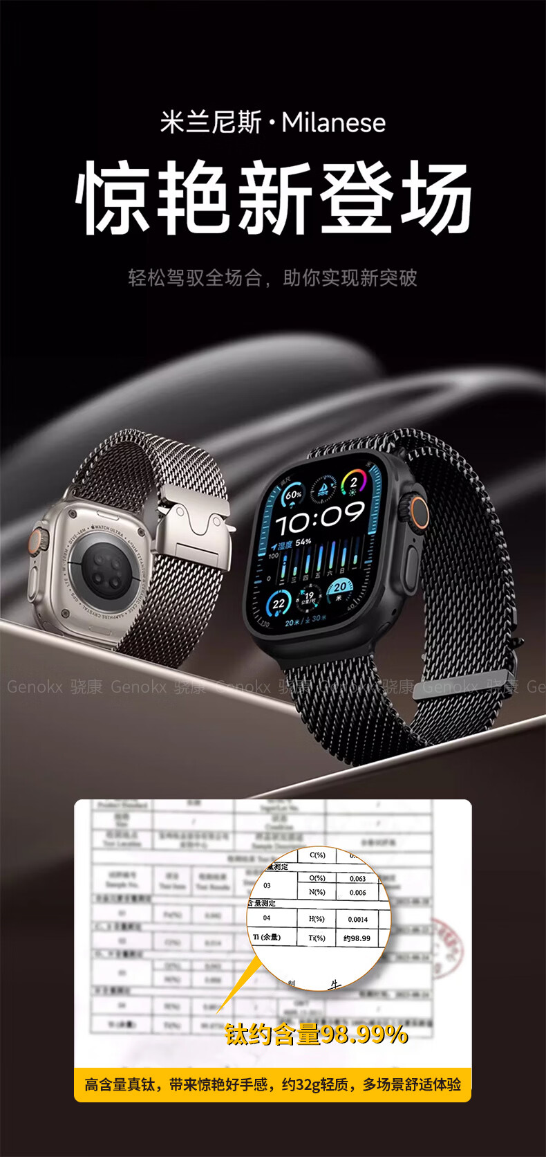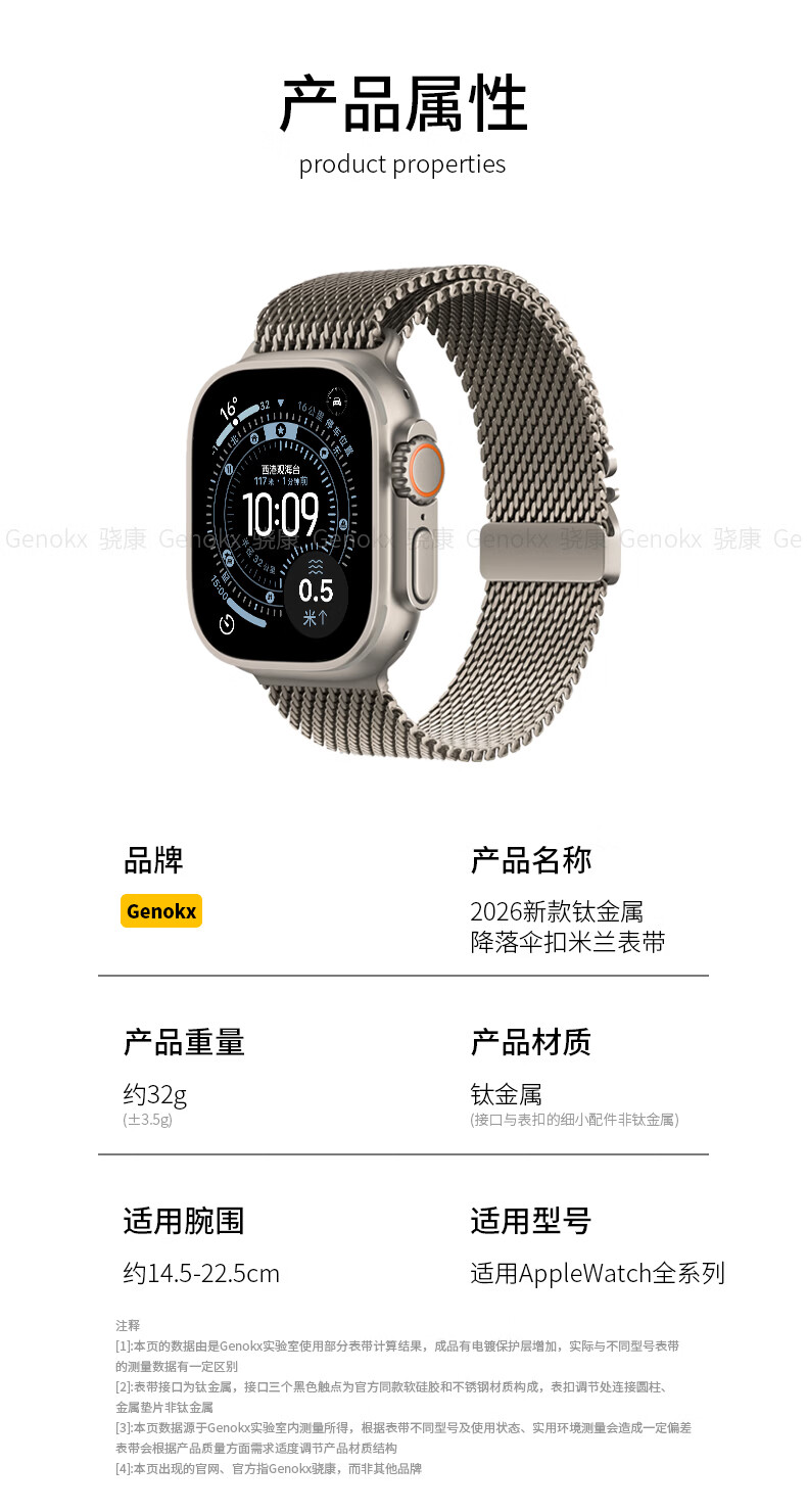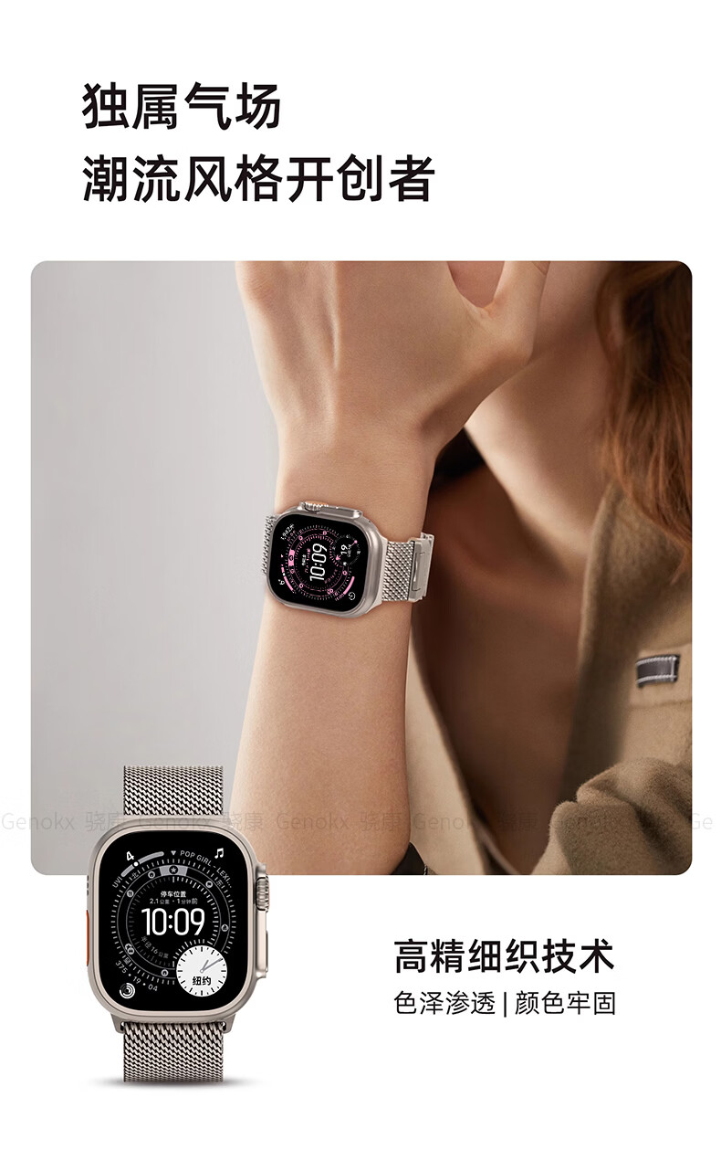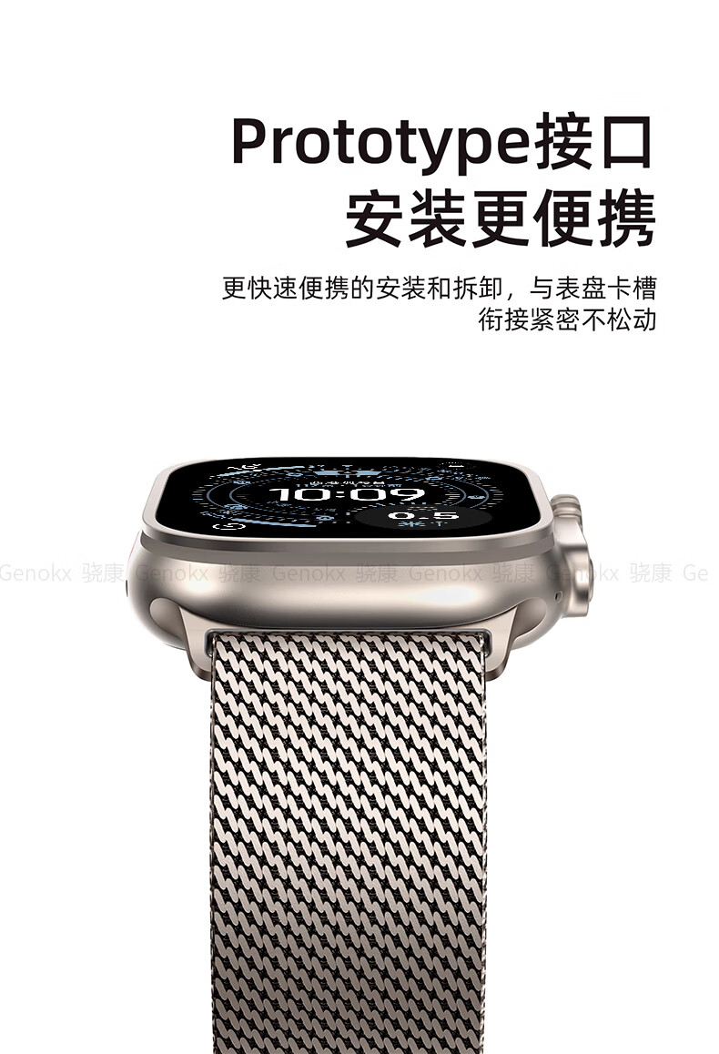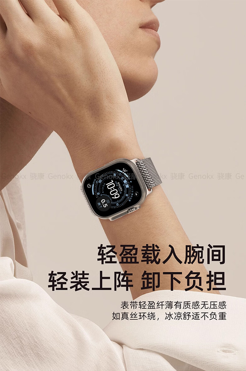 骁康 【美国Genokx】纯钛金属米兰尼斯适用苹果手表带ultra3 49mm伞扣iwatch S11/10/se3 46运动三代 纯钛金属米兰尼斯伞扣表带(钛色) 重量约32克轻质 【49/46/45/44mm】表盘适用
