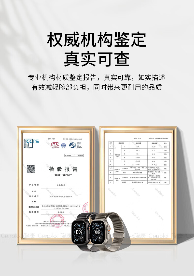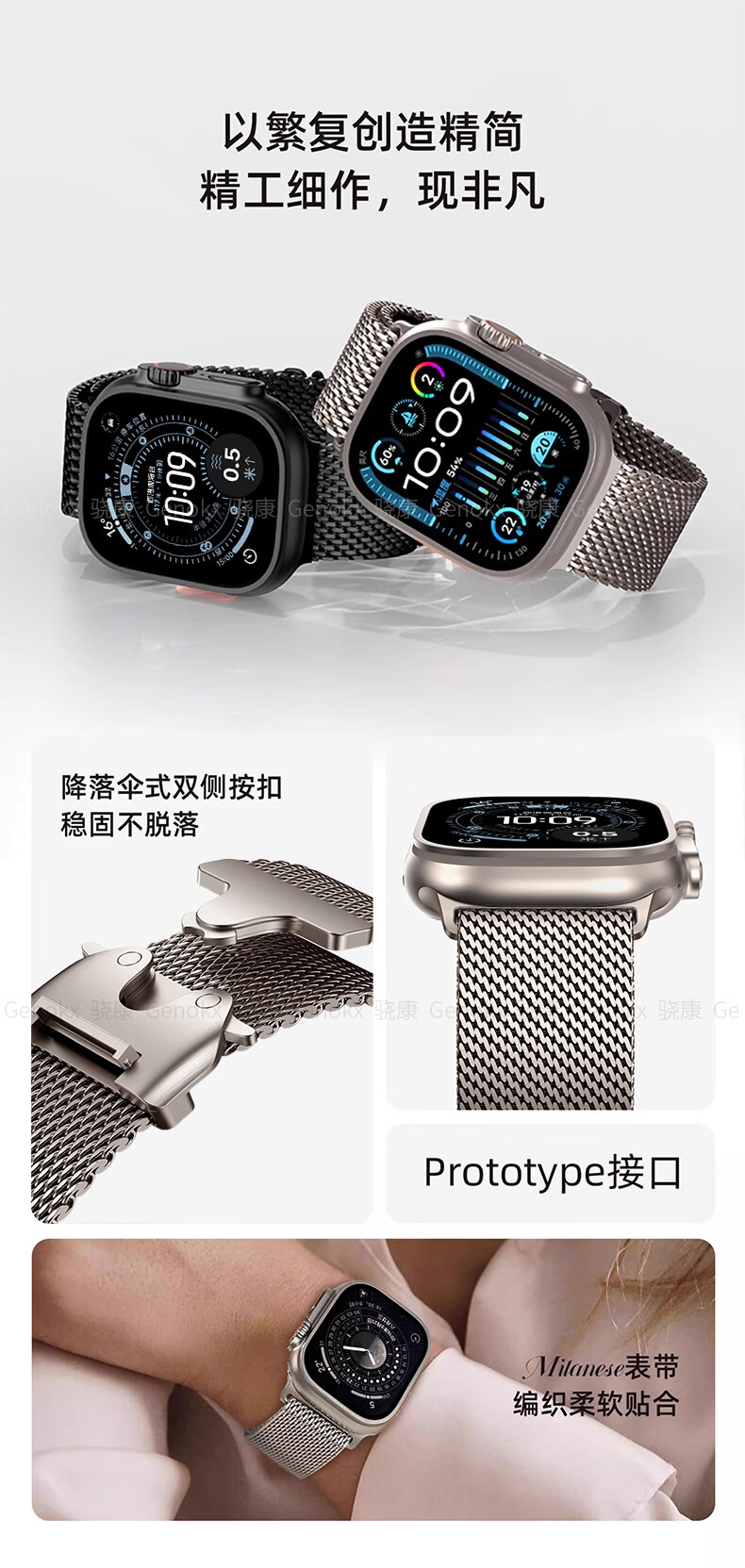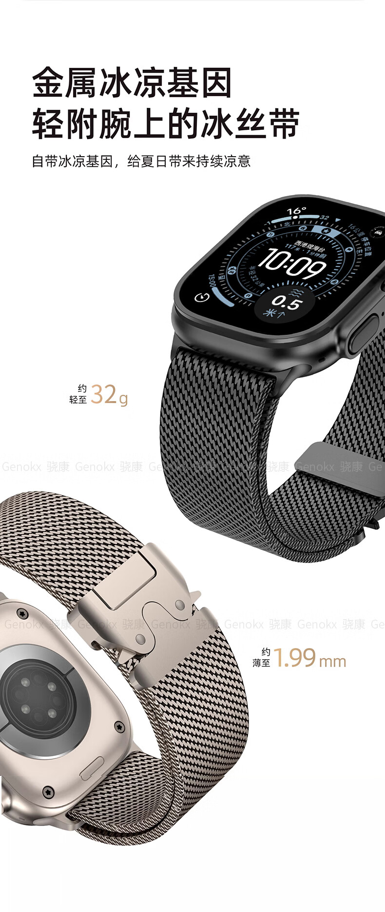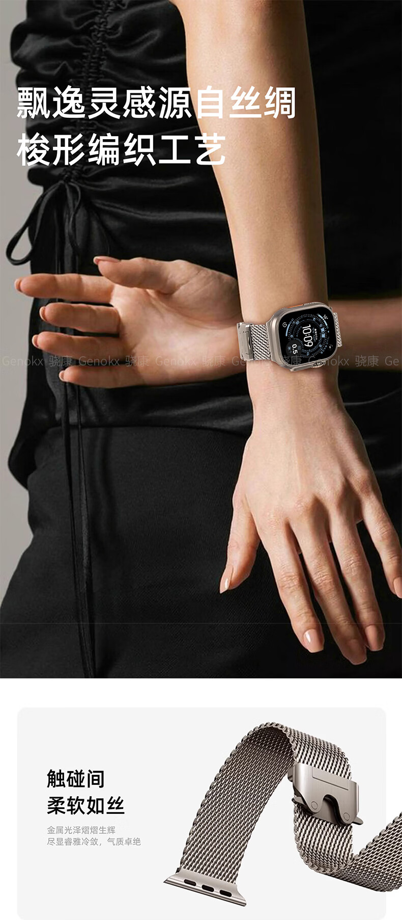 骁康 【美国Genokx】纯钛金属米兰尼斯适用苹果手表带ultra3 49mm伞扣iwatch S11/10/se3 46运动三代 纯钛金属米兰尼斯伞扣表带(钛色) 重量约32克轻质 【49/46/45/44mm】表盘适用