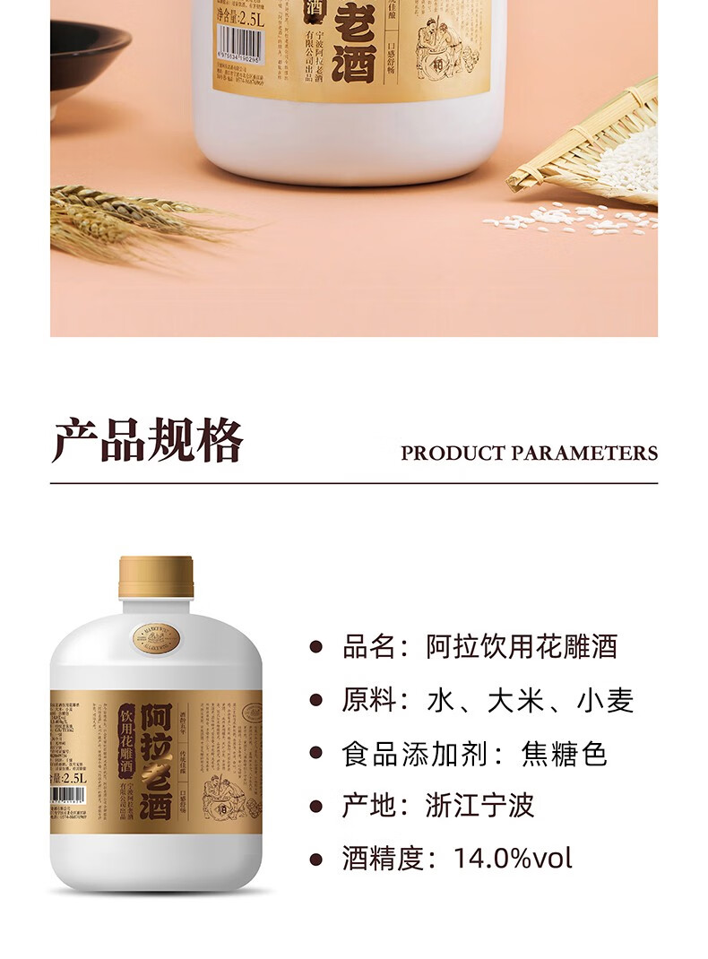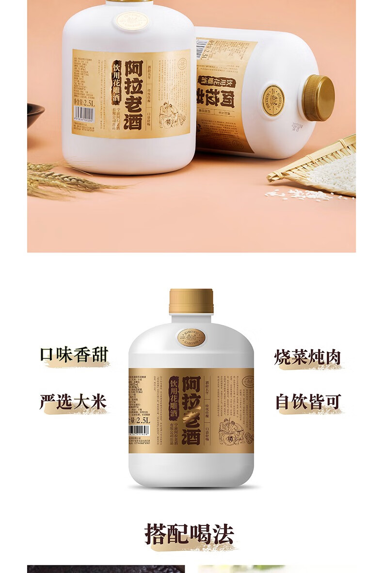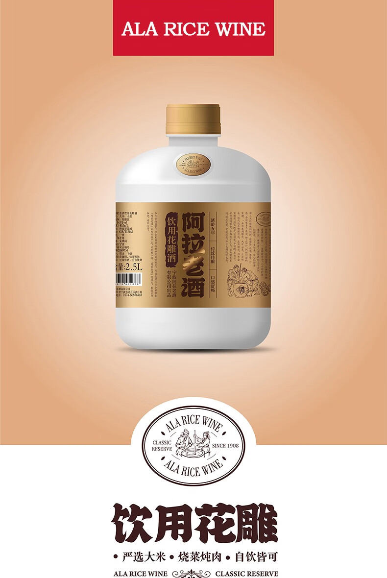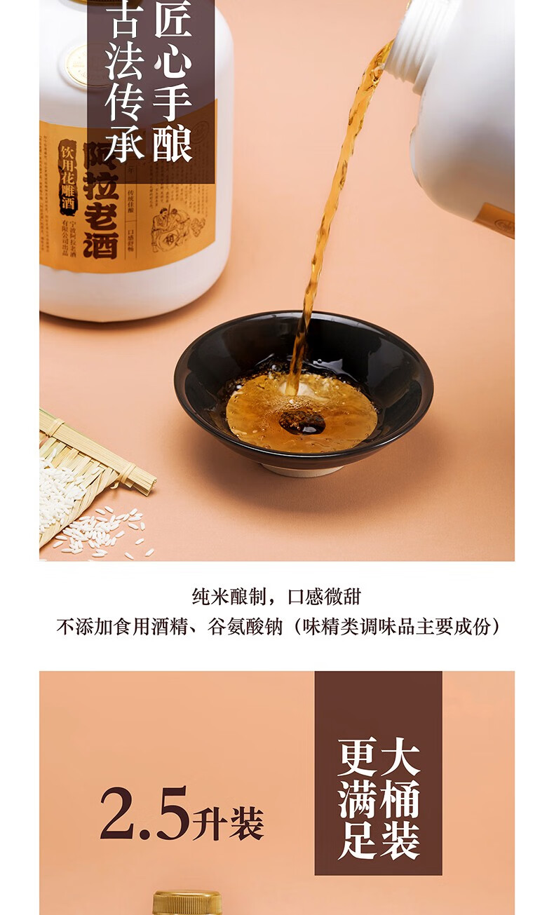 阿拉老酒 精品桶装花雕酒 黄酒 自饮小酌酒 2.5L 单桶装 2.5L 1桶 单瓶装
