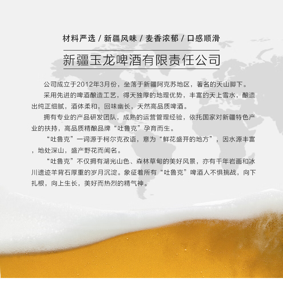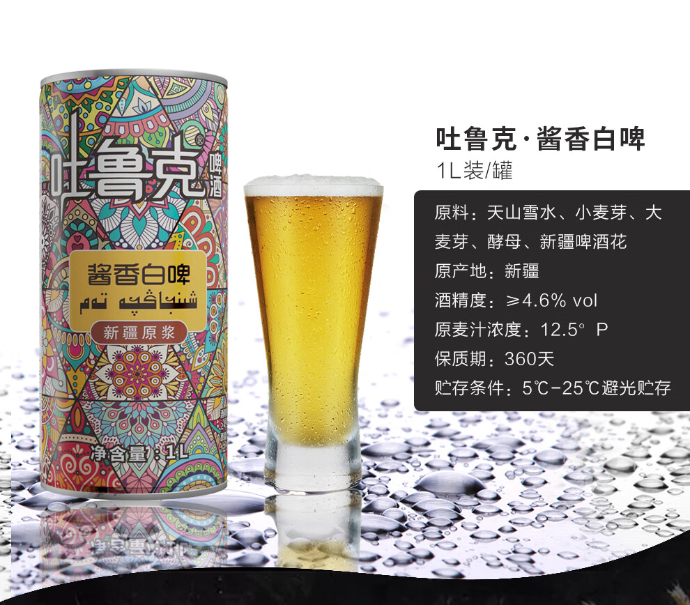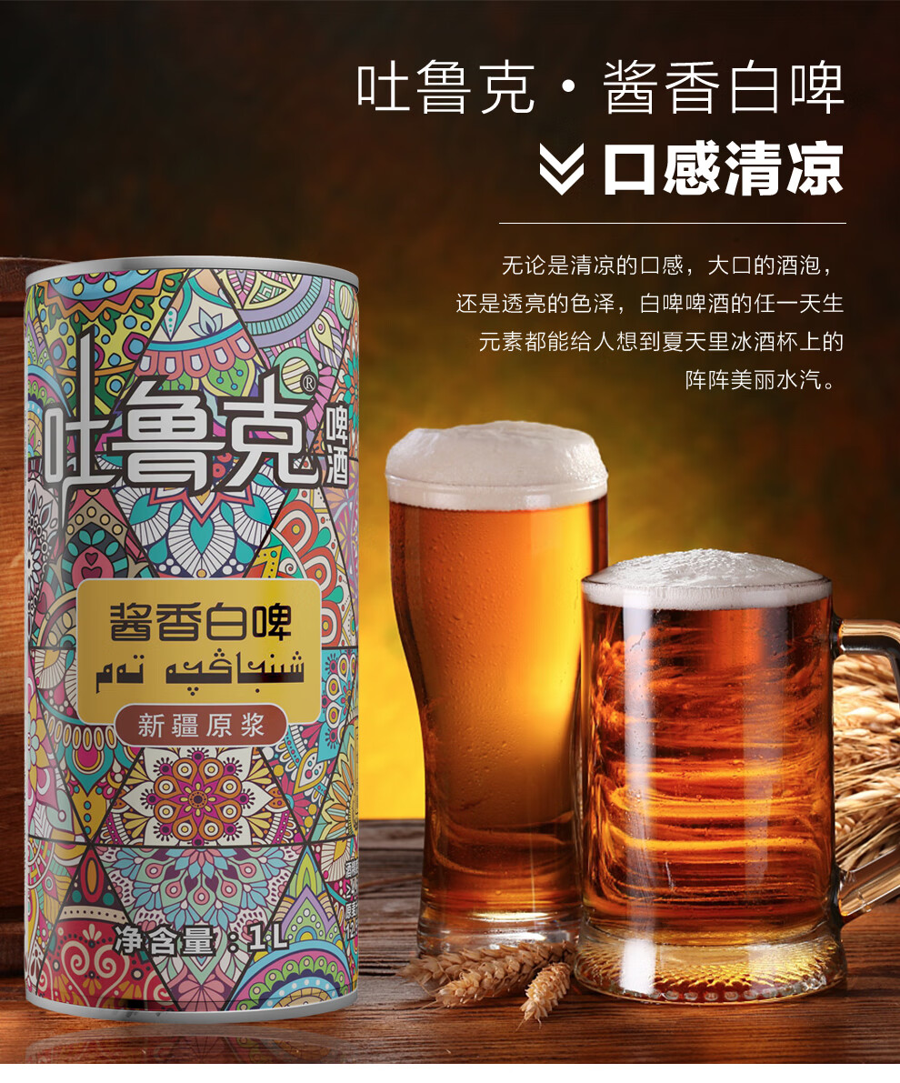 吐鲁克啤酒新疆啤酒吐鲁克精酿原浆酱香白啤1L罐装 新疆原产地 厂家直发 一箱(12罐)