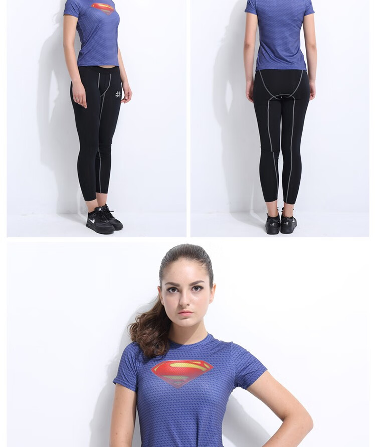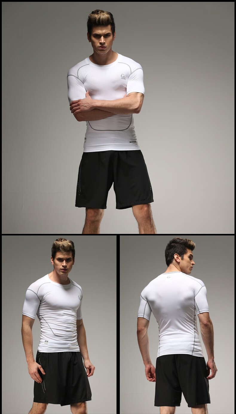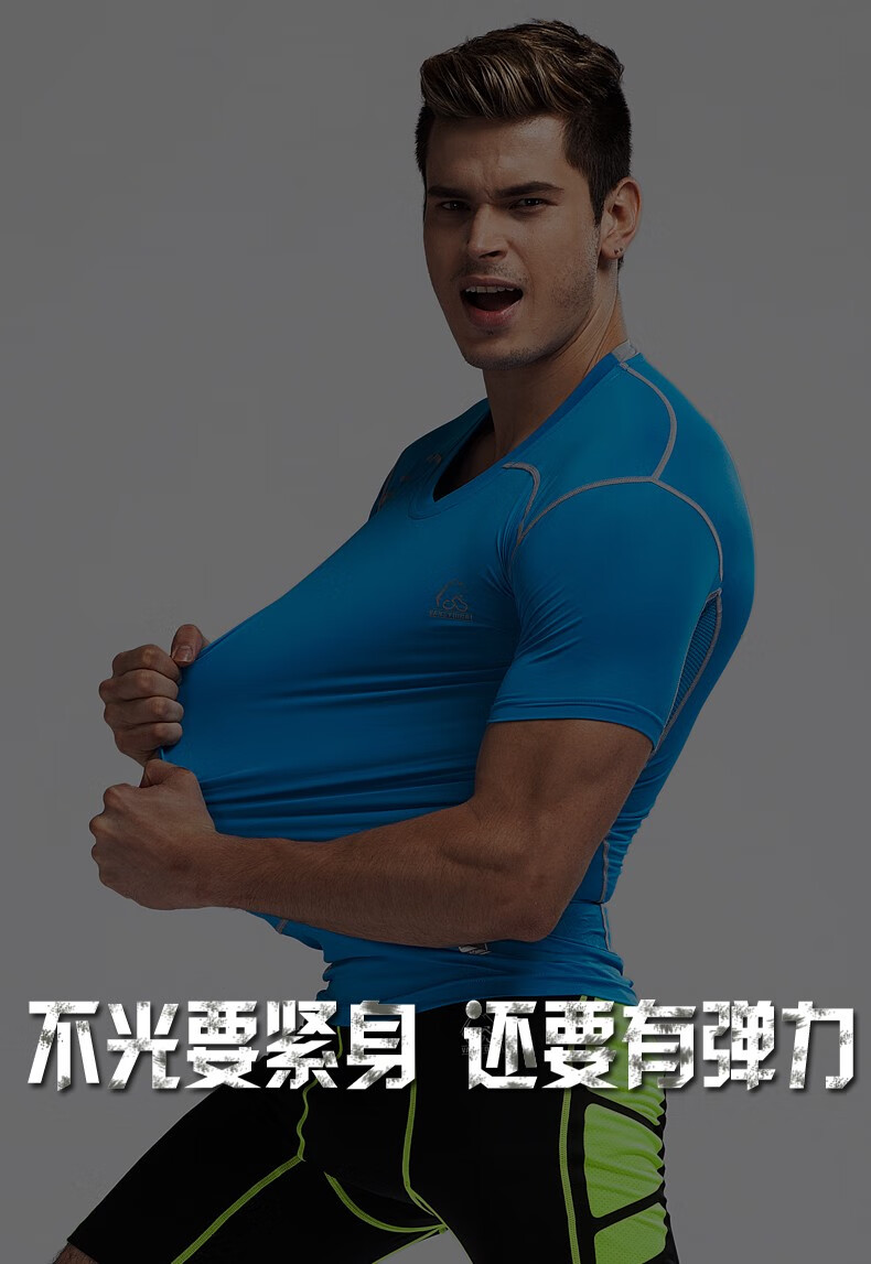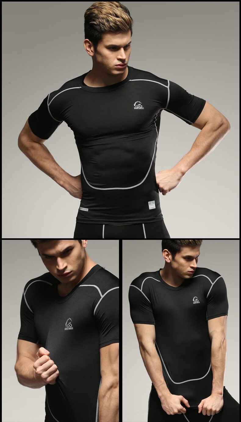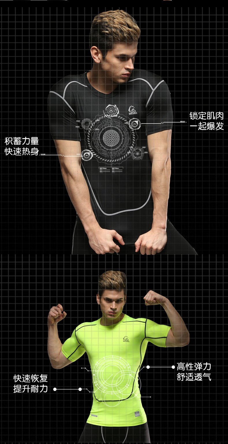虎迹【拍2件优惠】健身服运动紧身衣t恤短袖压缩衣速干圆领上衣 黑彩兰(下装) 2XL