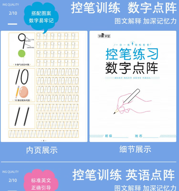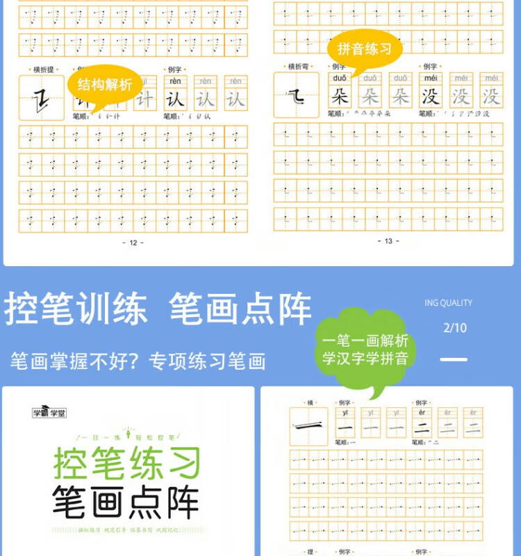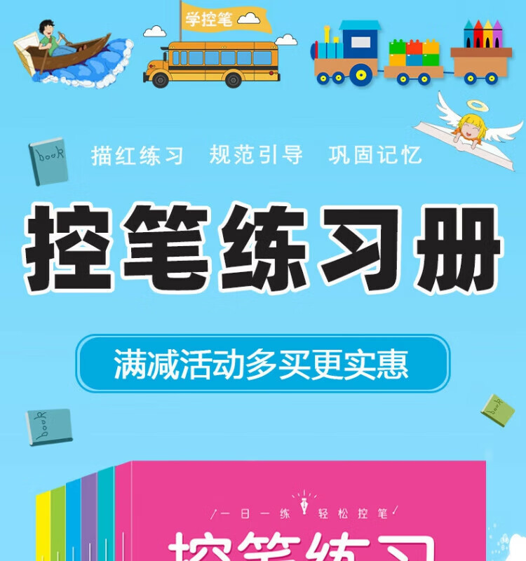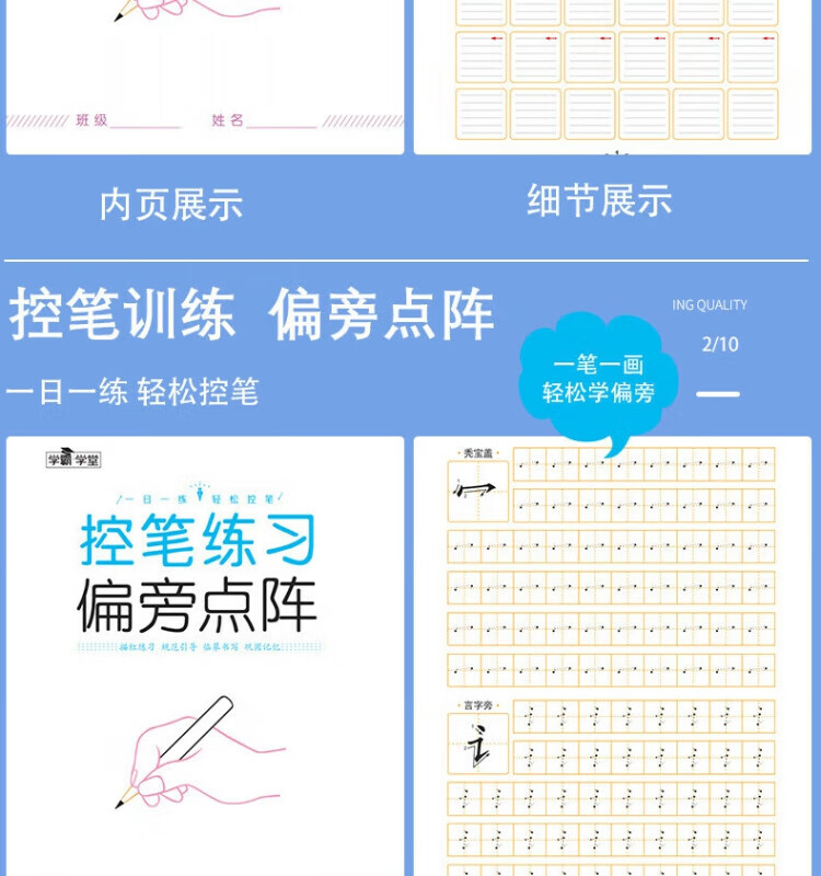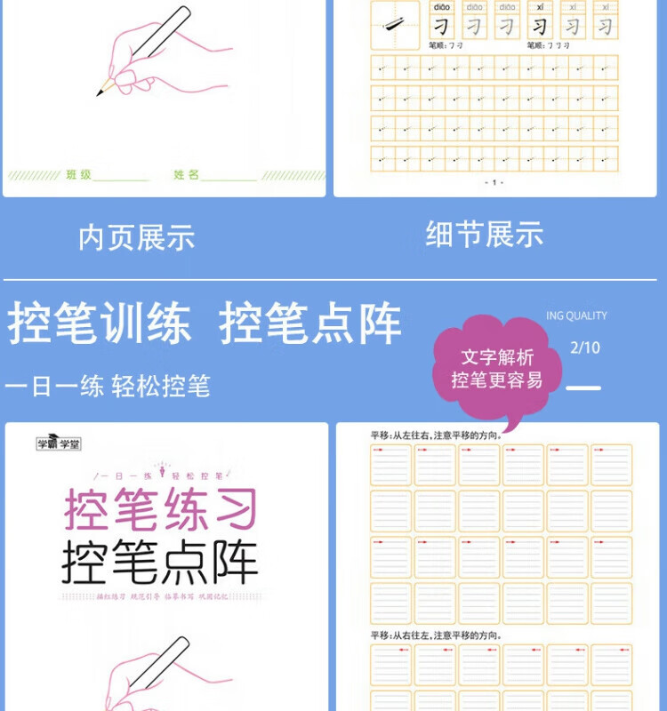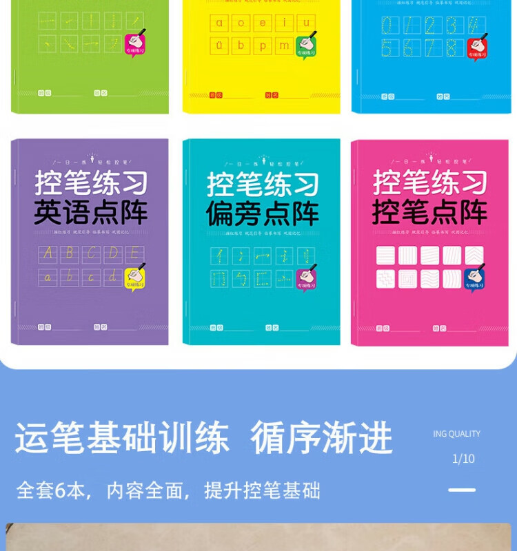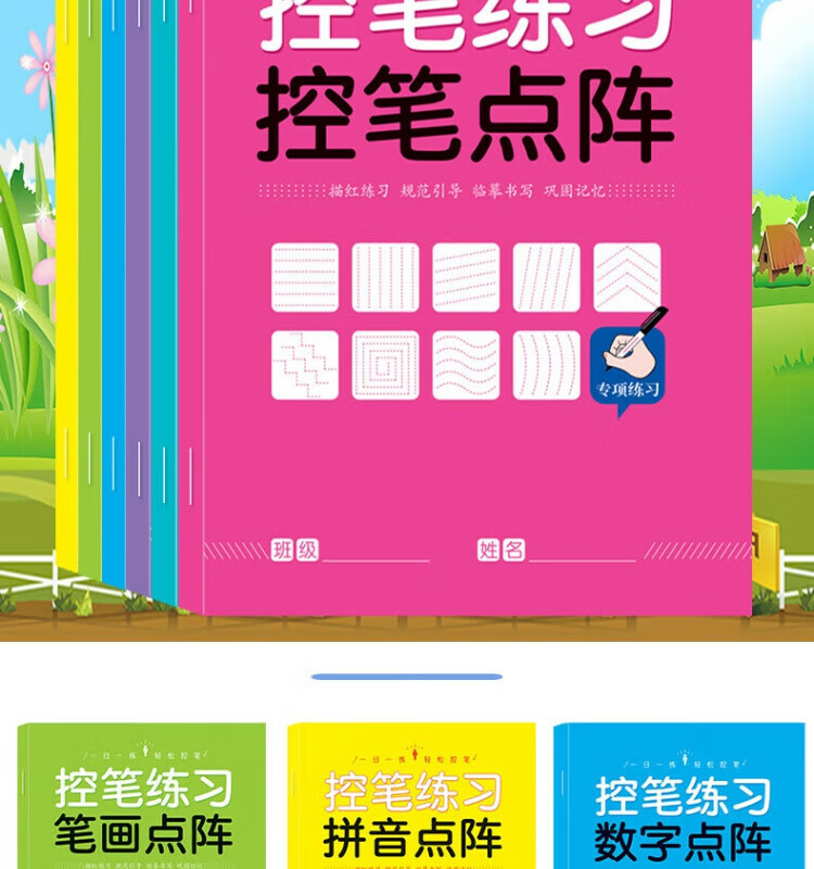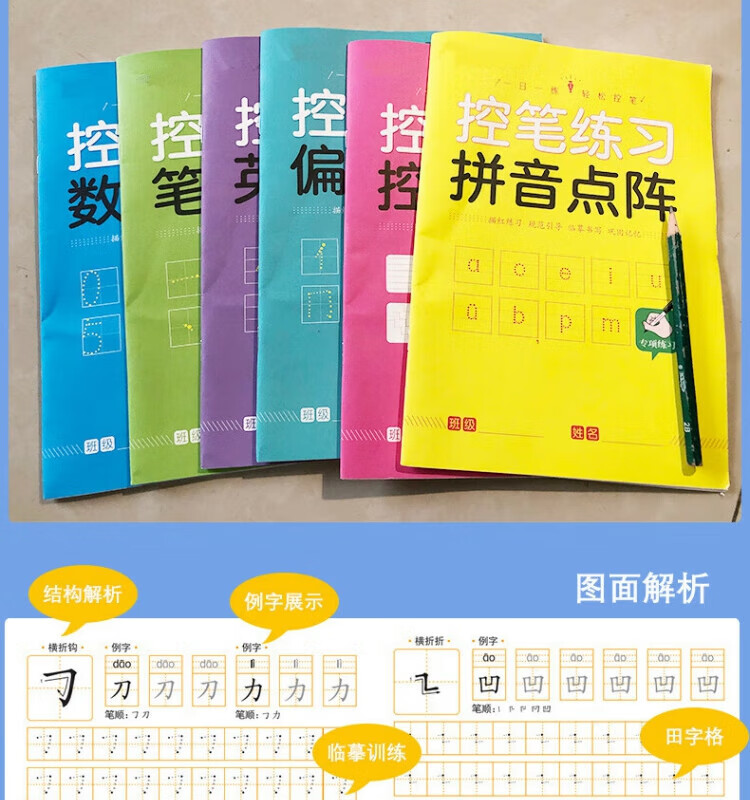 其他家控笔训练字帖 阶梯进阶由易到难 笔画,拼音,数字,英语,偏旁 儿童幼儿园 小学生 全套6本(每本30页共180页)