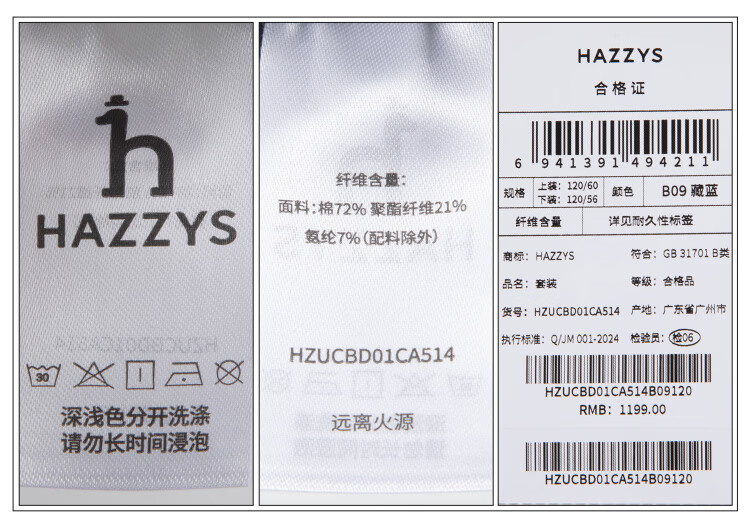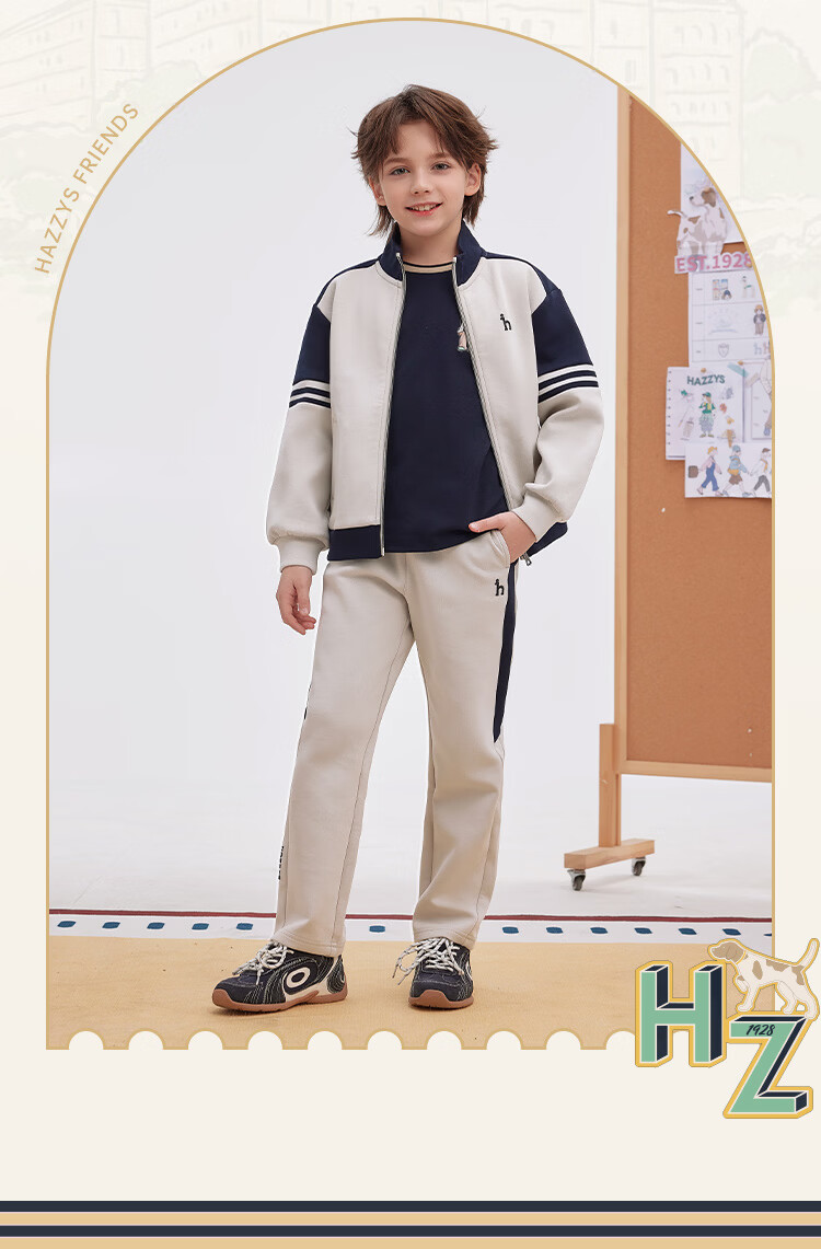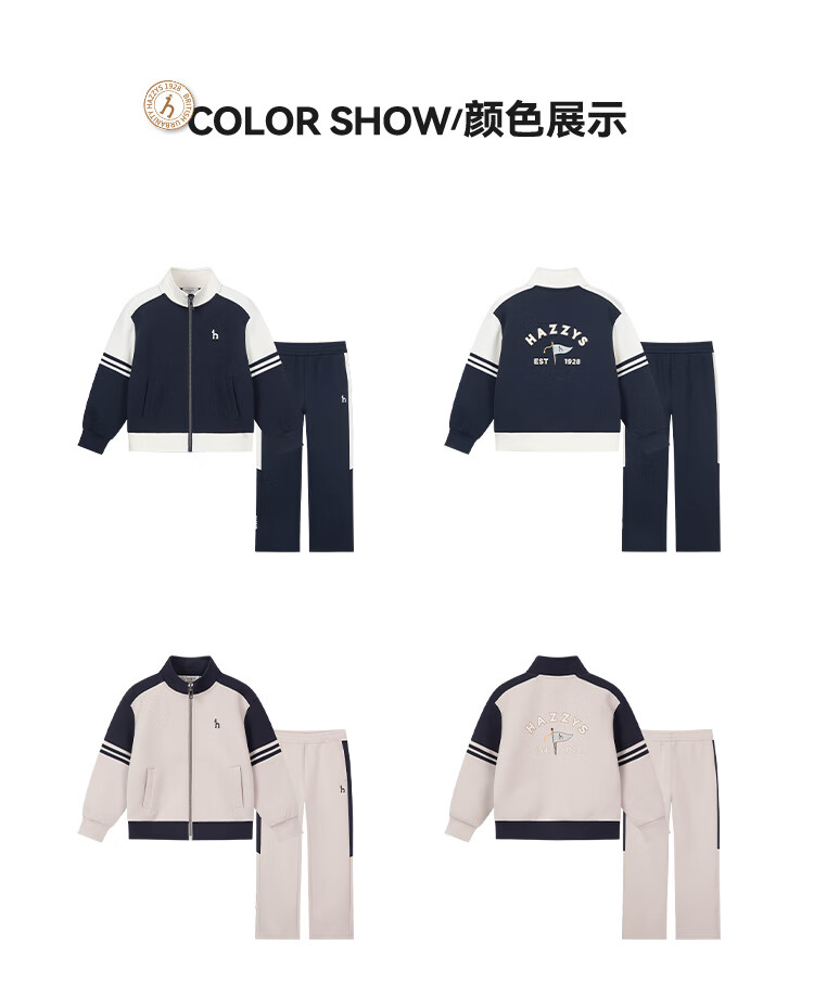 哈吉斯(HAZZYS)童装男童套装2026春新莱卡弹力舒适长袖两件套 藏蓝 120