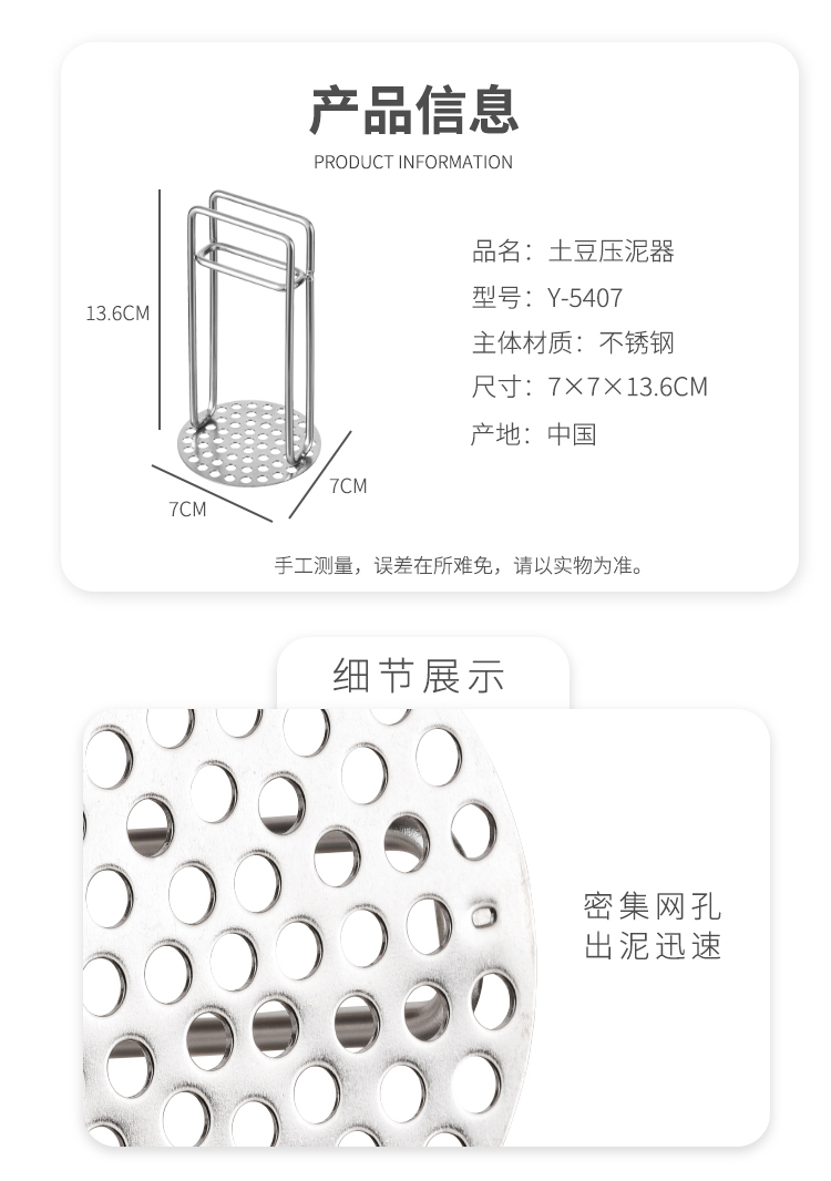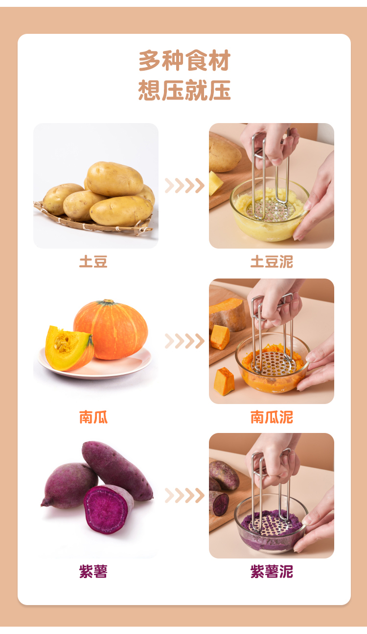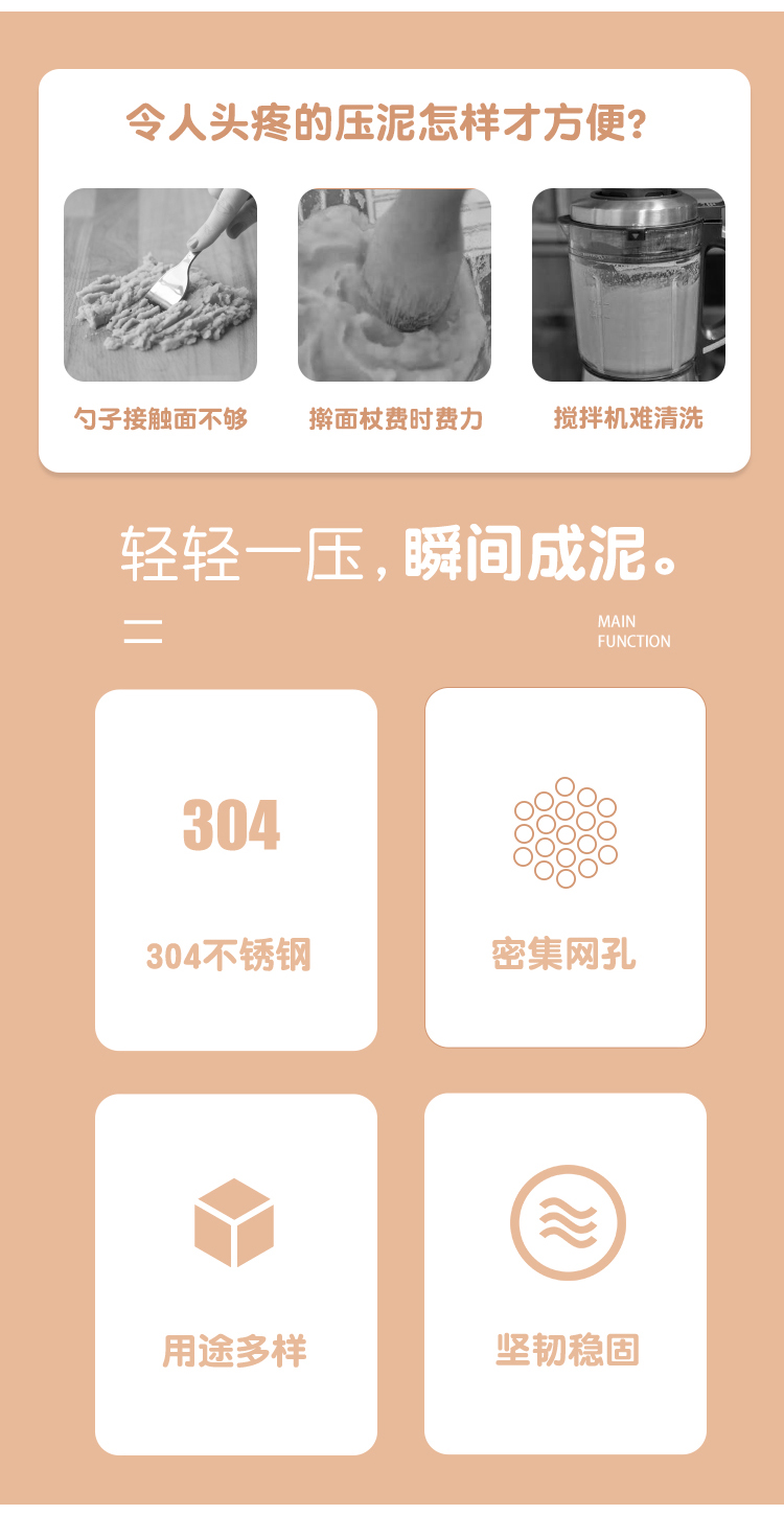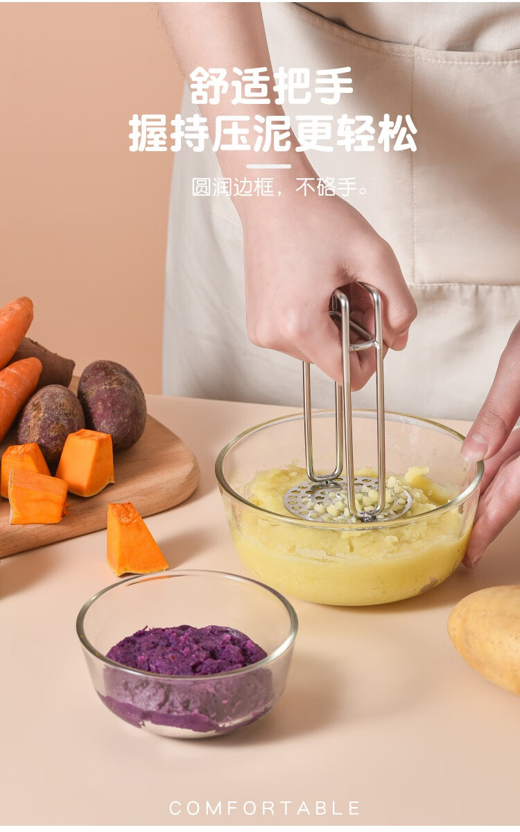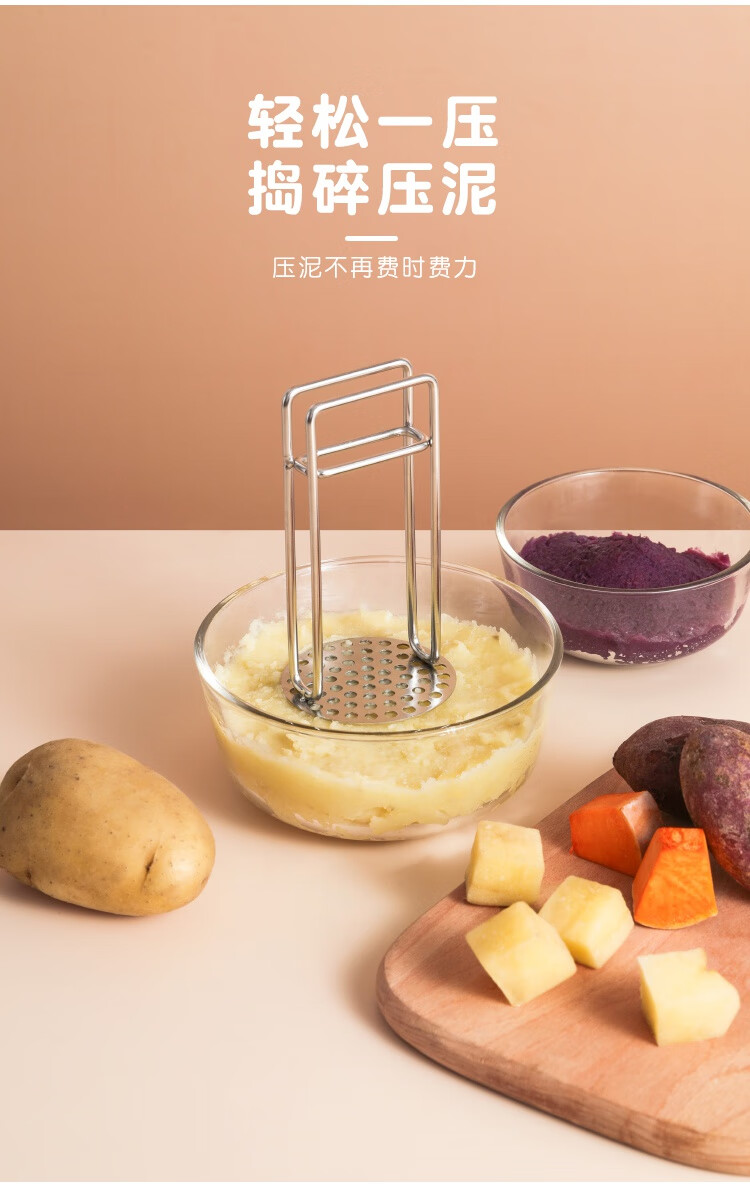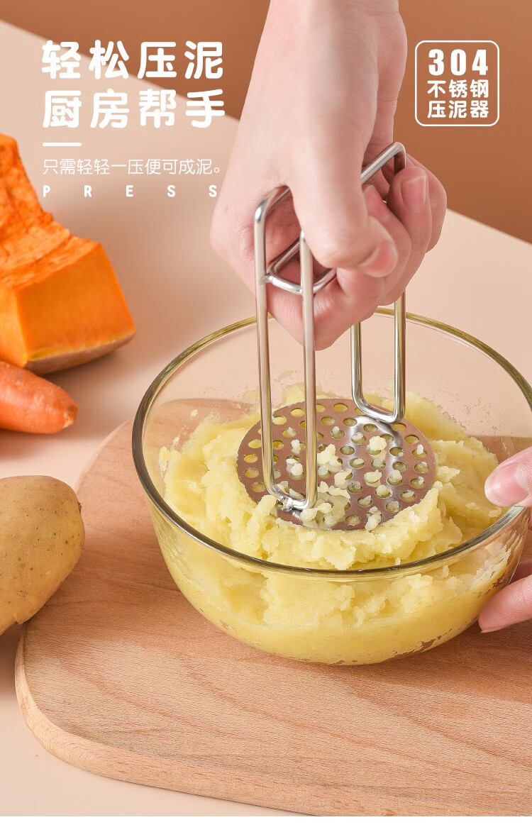 Imakara【甄选】土豆泥压泥器厨房厨房用具大全蒜泥土豆泥捣碎器研磨辅食 304不锈钢压泥勺-厨房用品家用