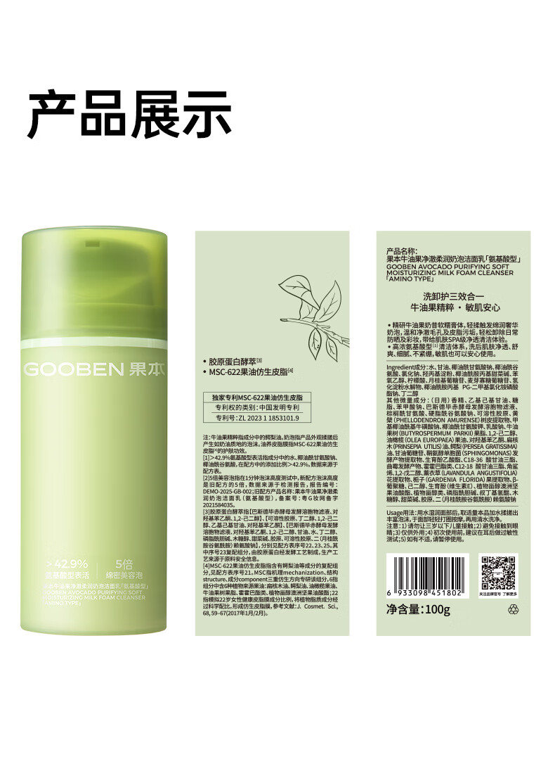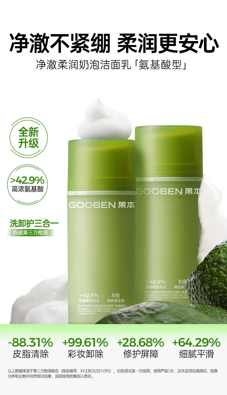 果本牛油果氨基酸洁面乳洗面奶洗卸合一女温和生日礼物送老婆 牛油果云柔净澈洁面乳100g