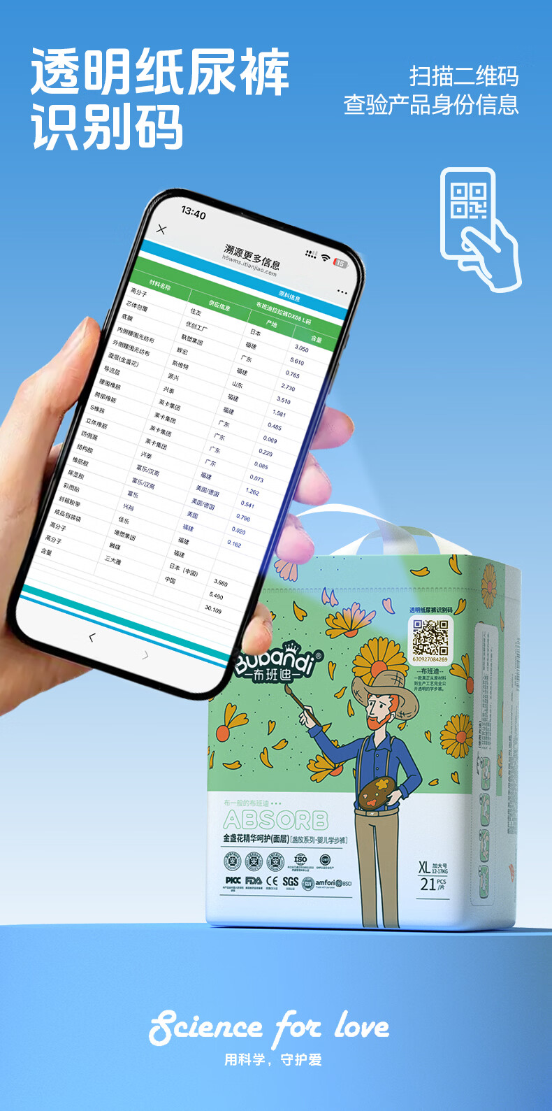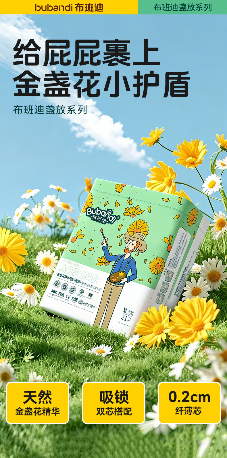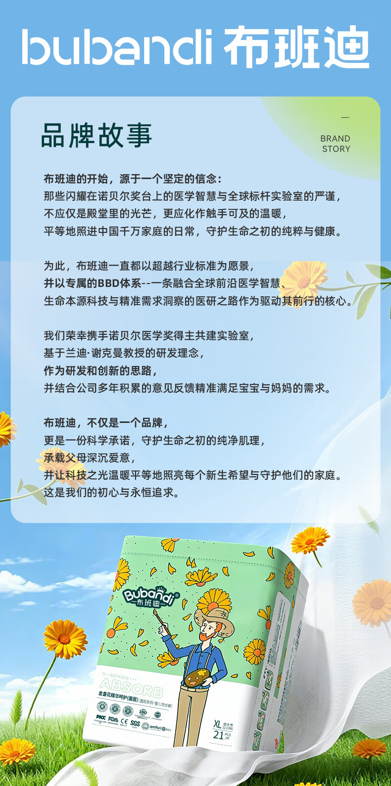 布班迪盏放系列婴儿纸尿裤男女宝宝通用新生儿纸尿裤超薄干爽婴儿尿不湿 【魔术贴】纸尿裤XL码63片(12-17kg)