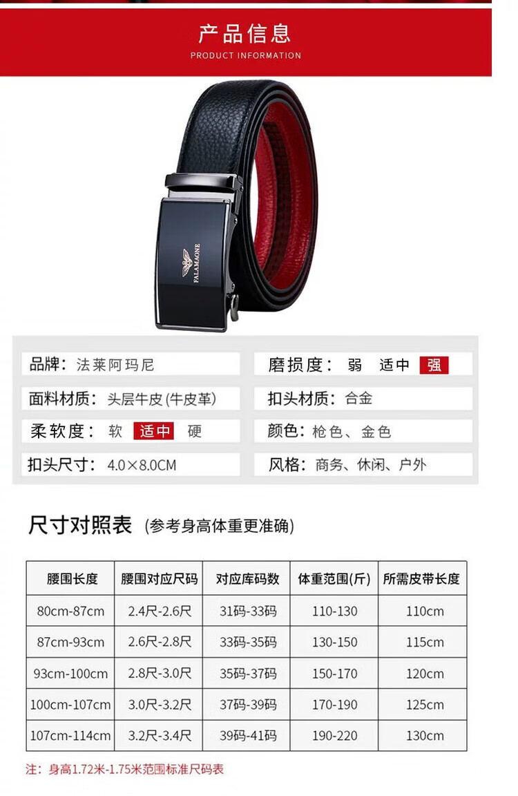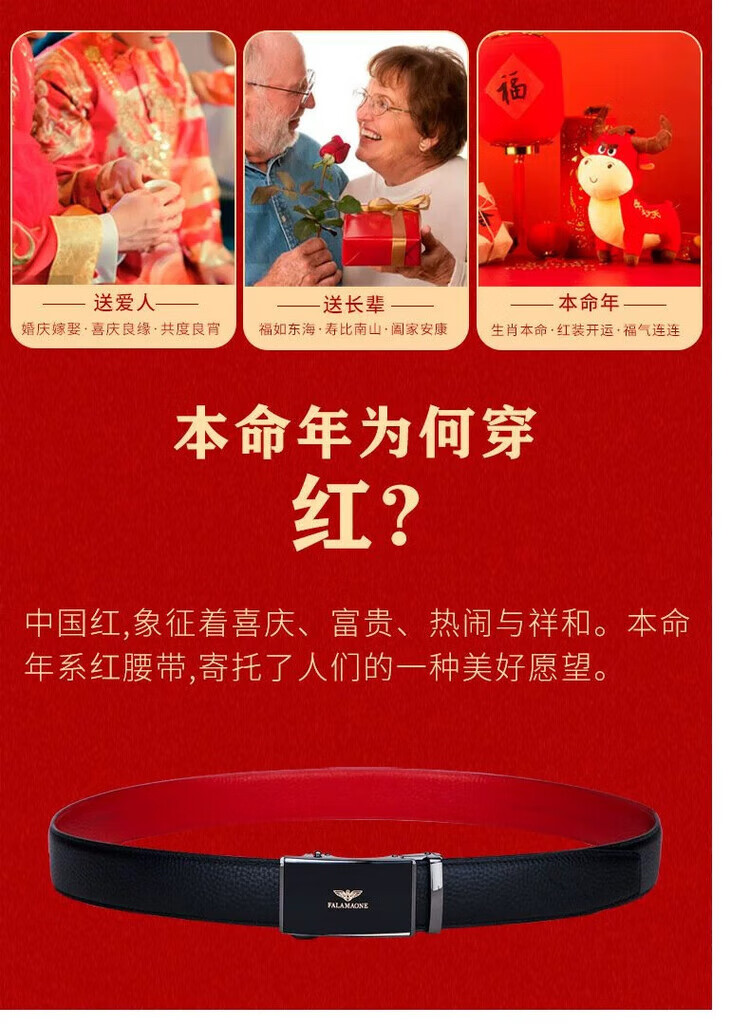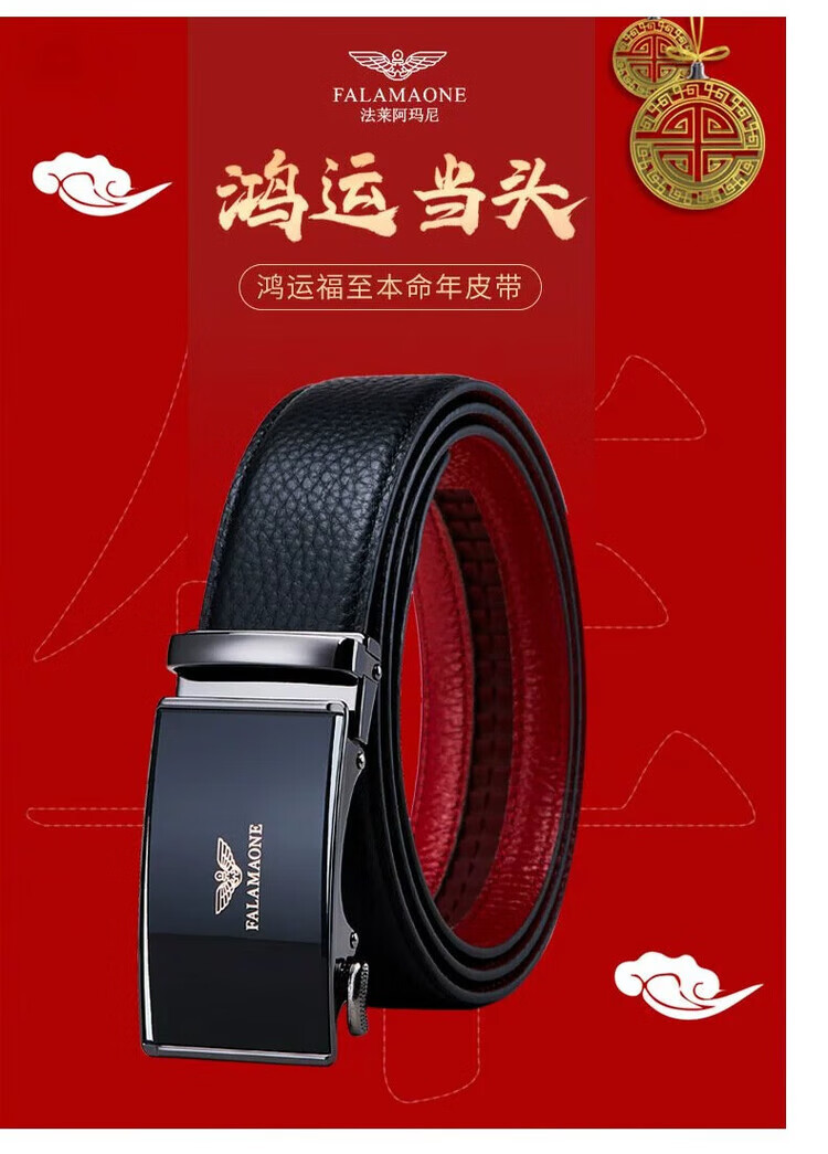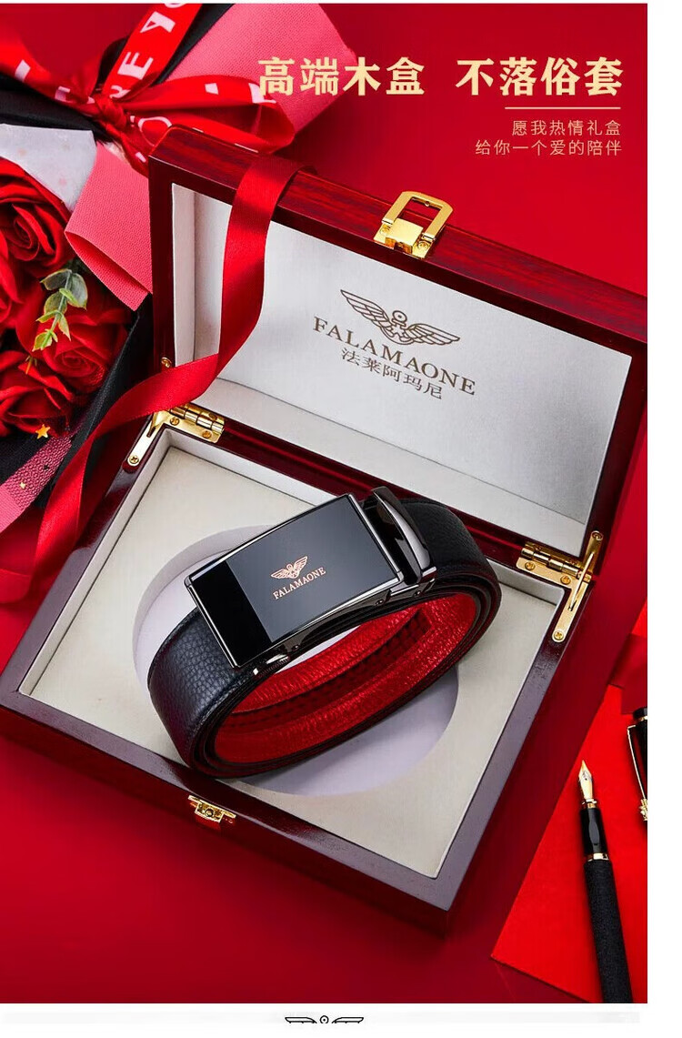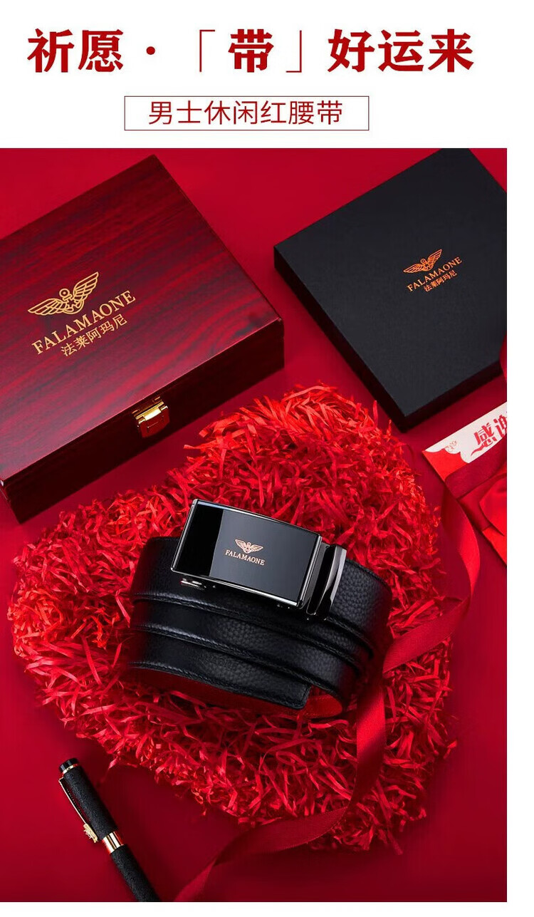 FALAMAONE皮带男轻奢男士皮带国际十大品牌牛皮名牌红腰带本命年男士礼物 1 PD833J 本命年【实木礼盒】