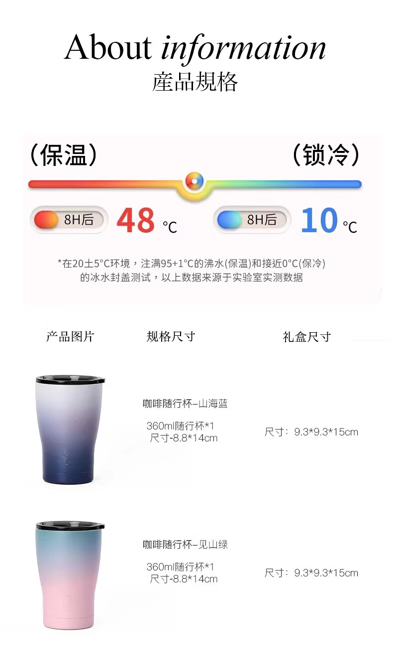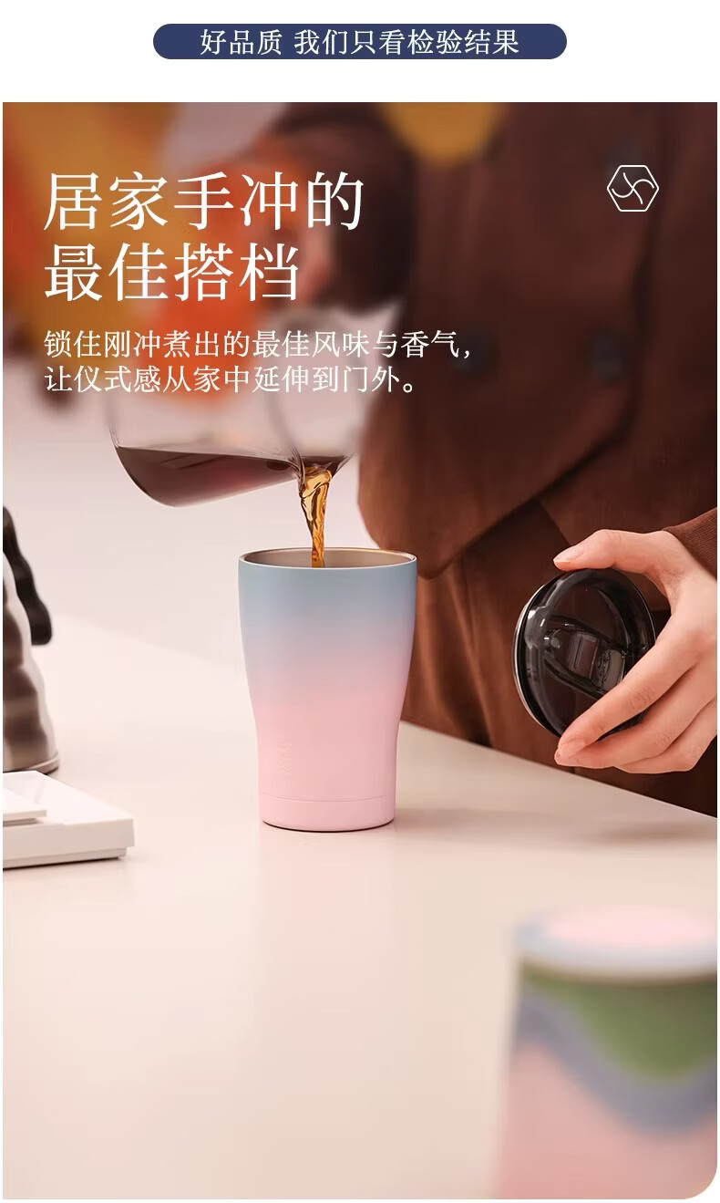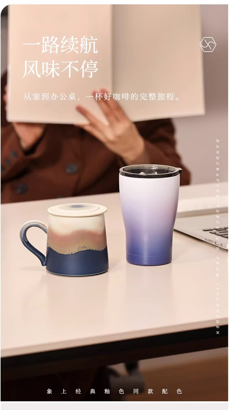 象上保温杯男士不锈钢水杯咖啡杯随行杯密封高颜值生日礼物伴手礼 山海蓝随行杯