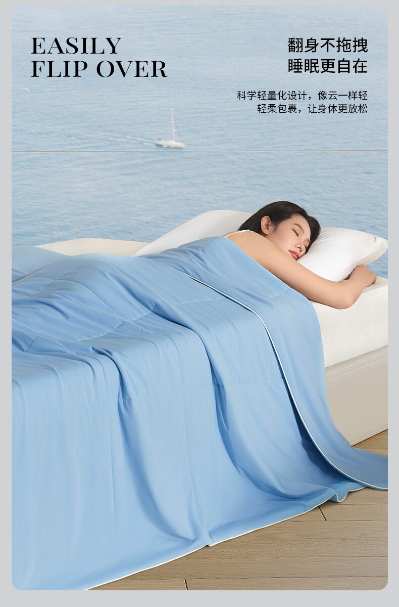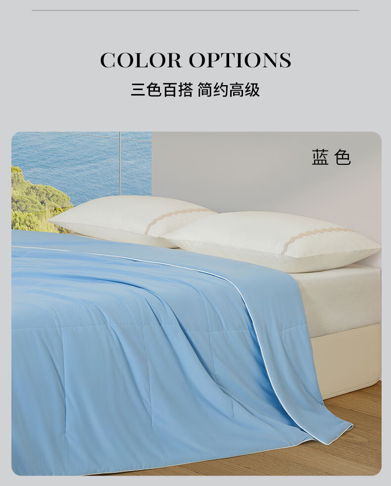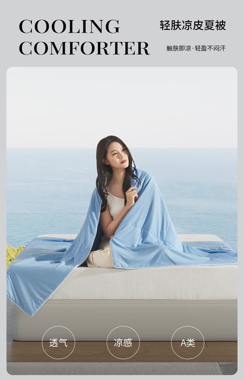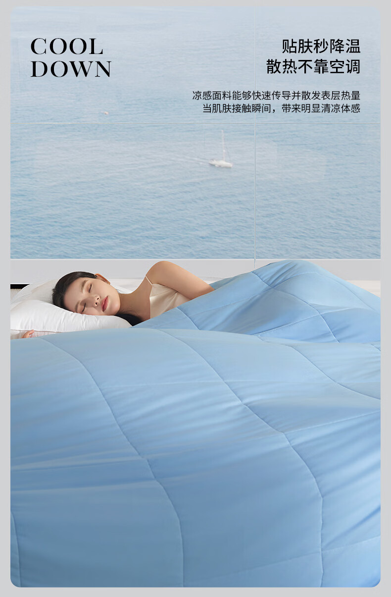 康尔馨五星级酒店凉感被子 A类亲肤裸睡凉皮可水洗成人家用纤维夏被芯 晴空蓝 150cm*200cm