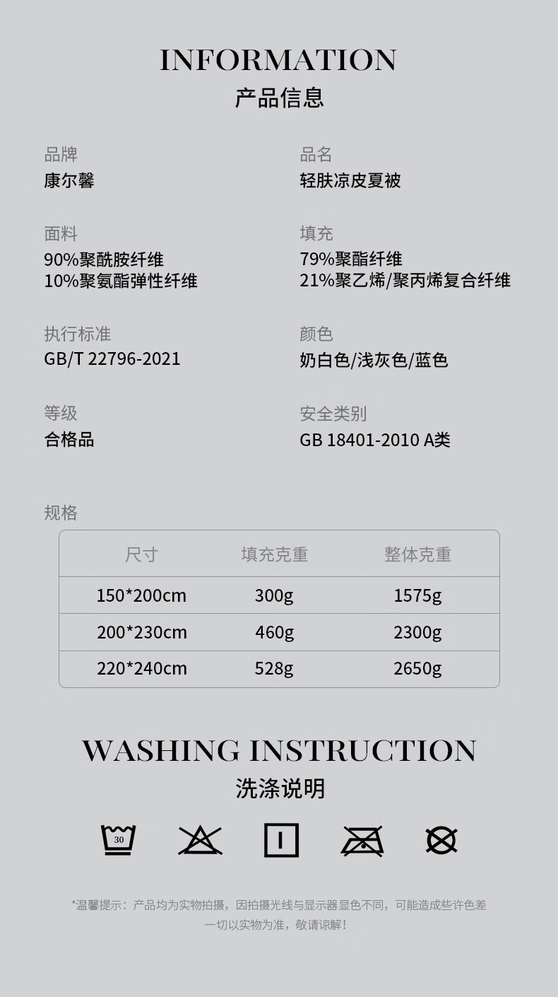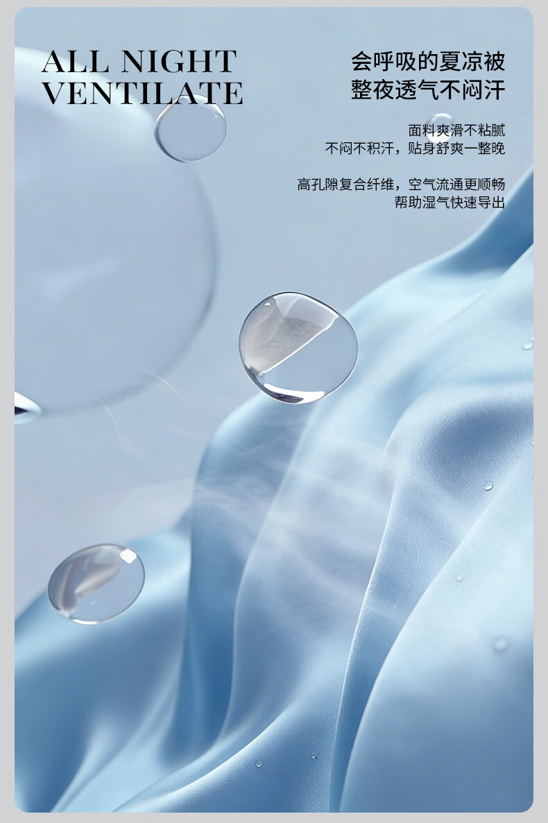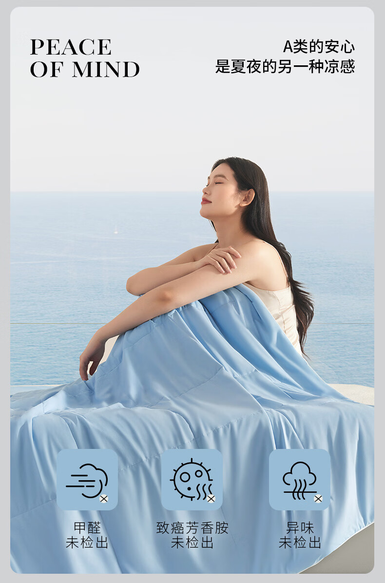 康尔馨五星级酒店凉感被子 A类亲肤裸睡凉皮可水洗成人家用纤维夏被芯 晴空蓝 150cm*200cm