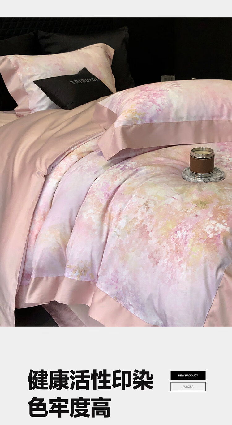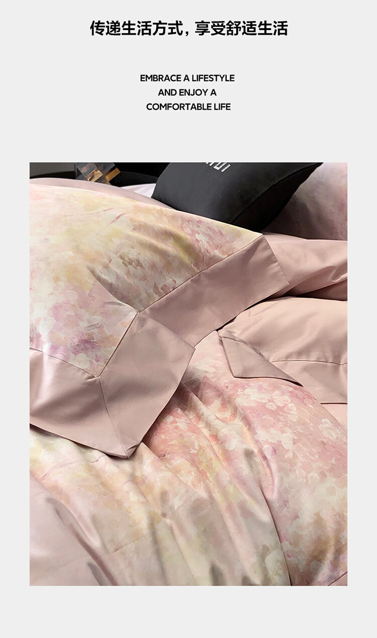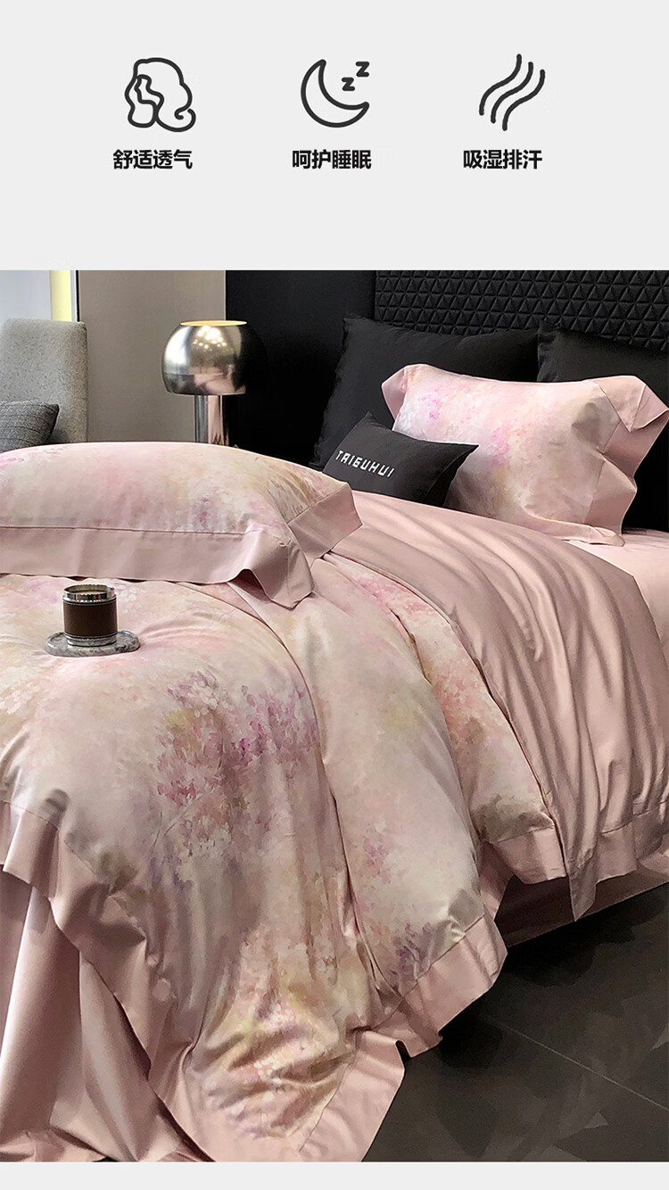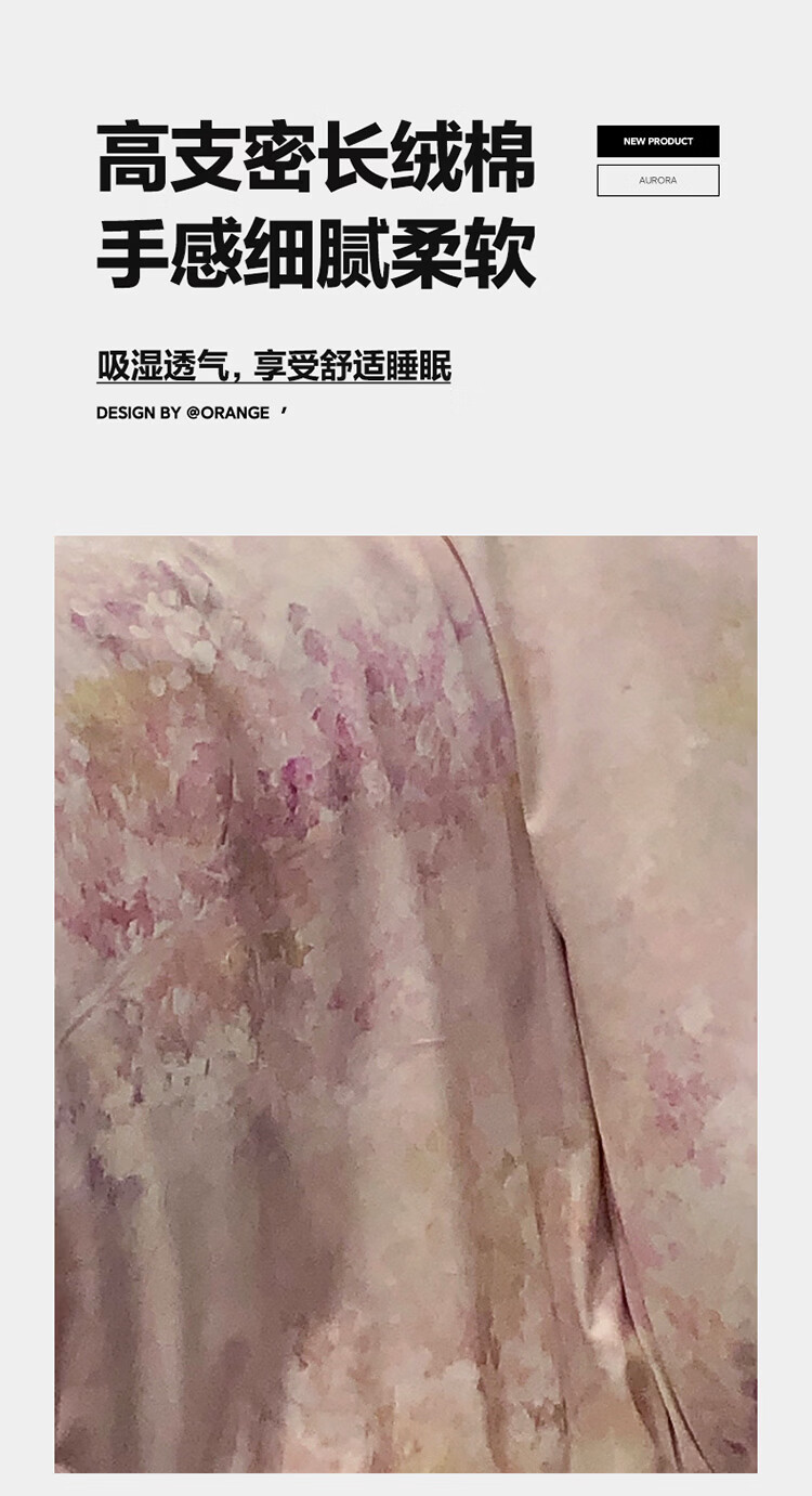 ROLAND LIVE新疆长绒棉印花四件套轻奢风家用1.8米床全棉被套亲肤透气床品 TGH 长绒棉四件套-沁园花语粉色 1.5米床 床单款 【被套200*230cm】