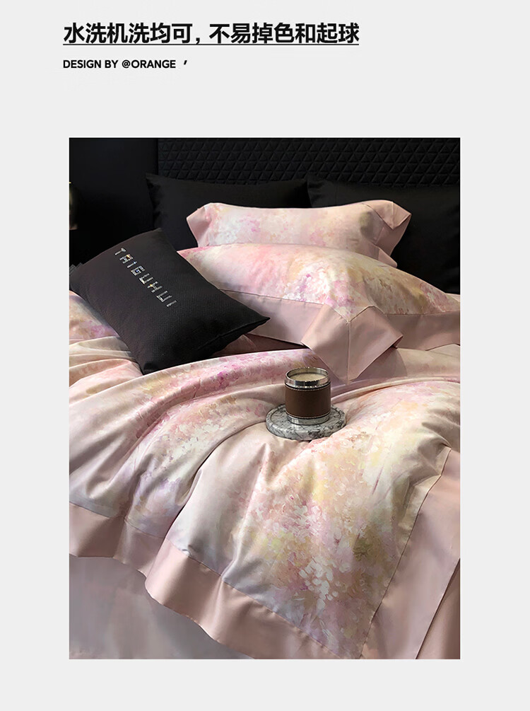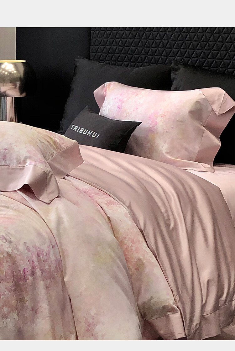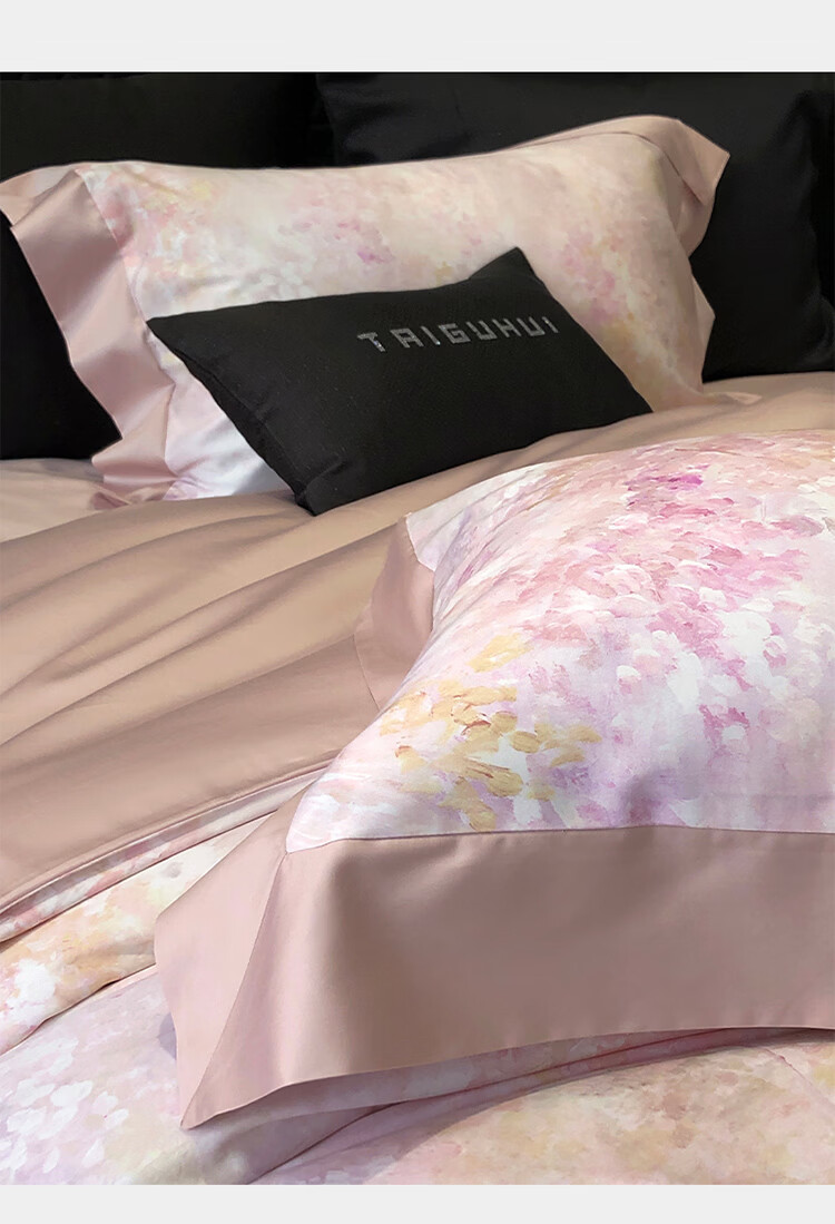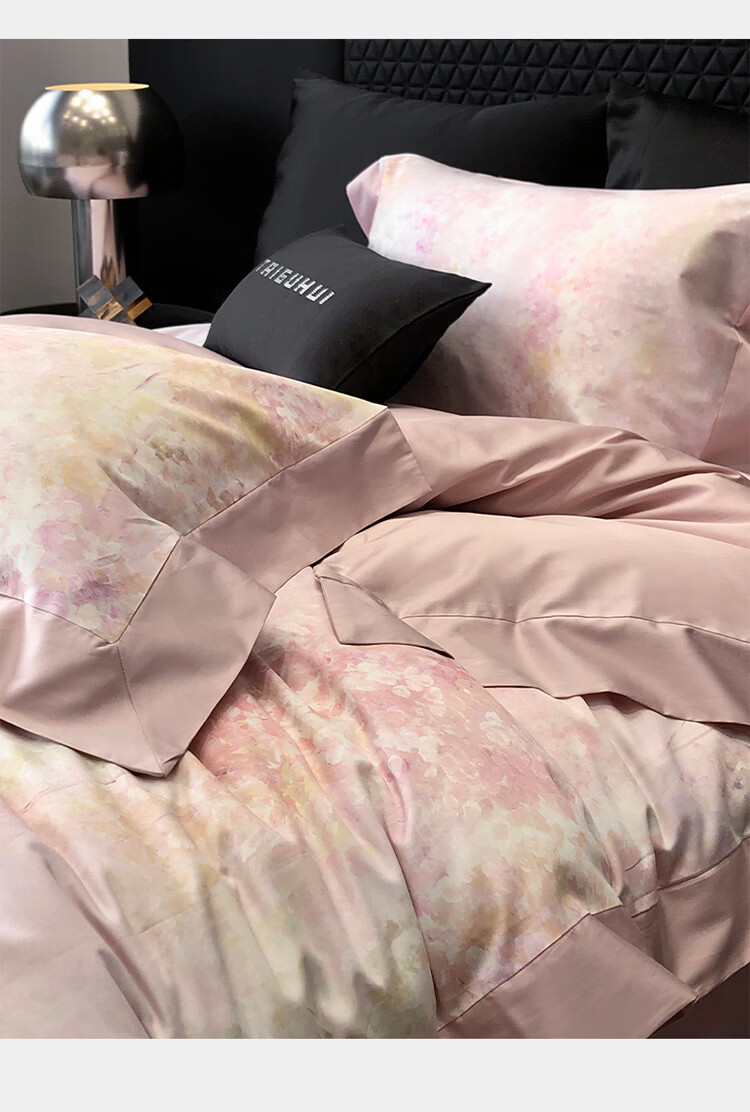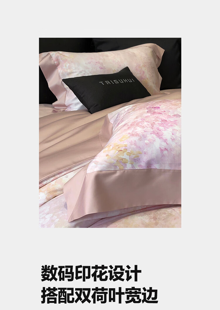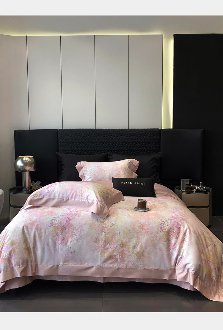 ROLAND LIVE新疆长绒棉印花四件套轻奢风家用1.8米床全棉被套亲肤透气床品 TGH 长绒棉四件套-沁园花语粉色 1.5米床 床单款 【被套200*230cm】