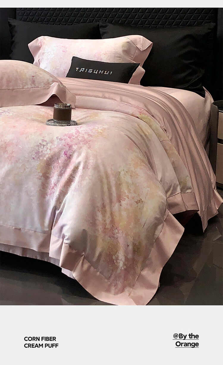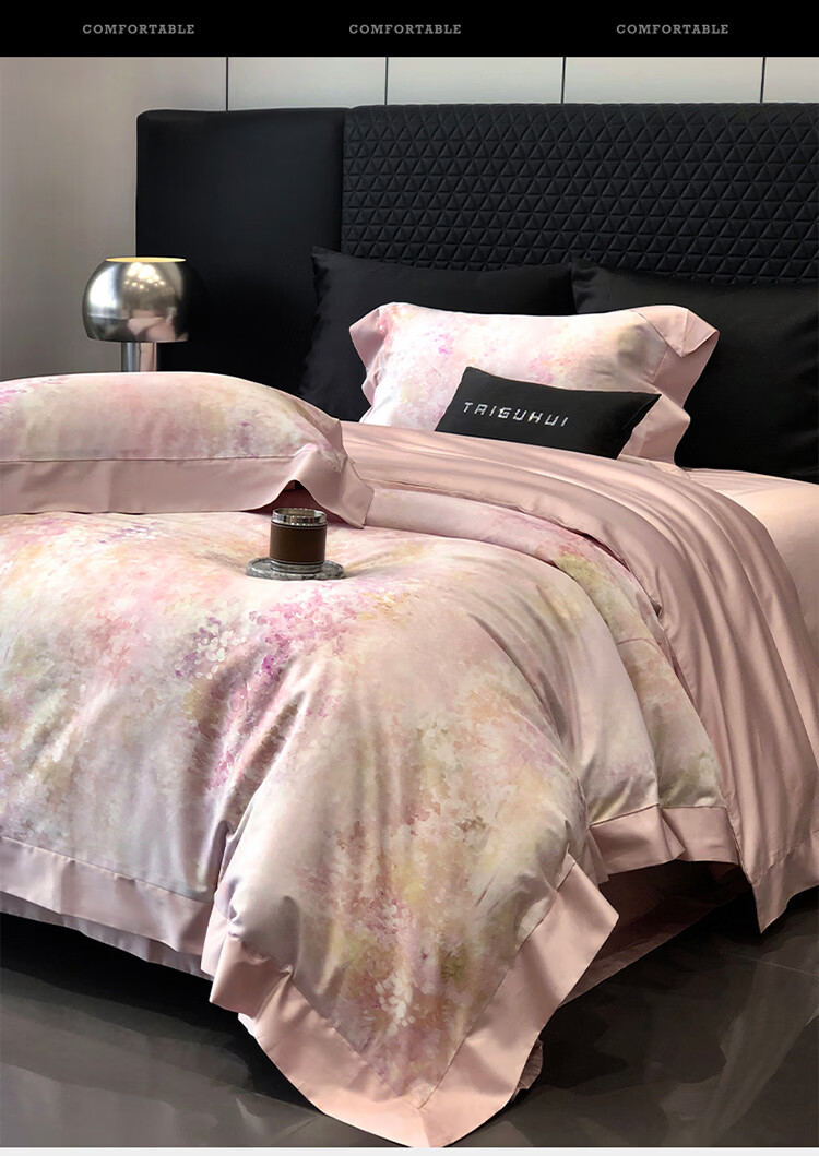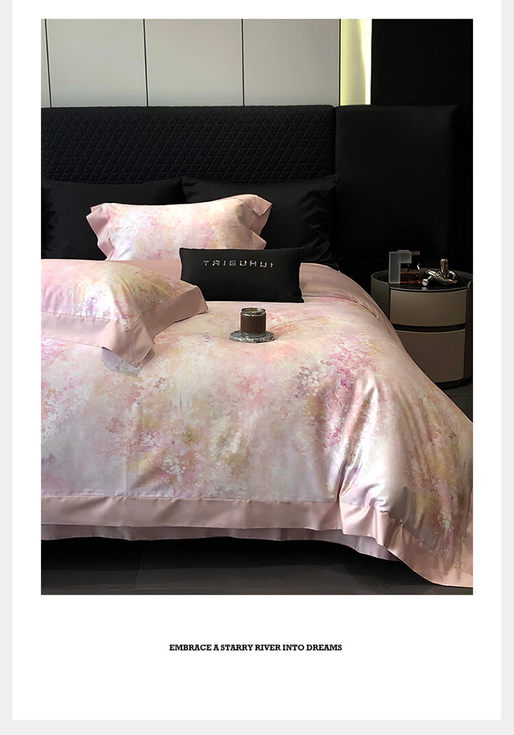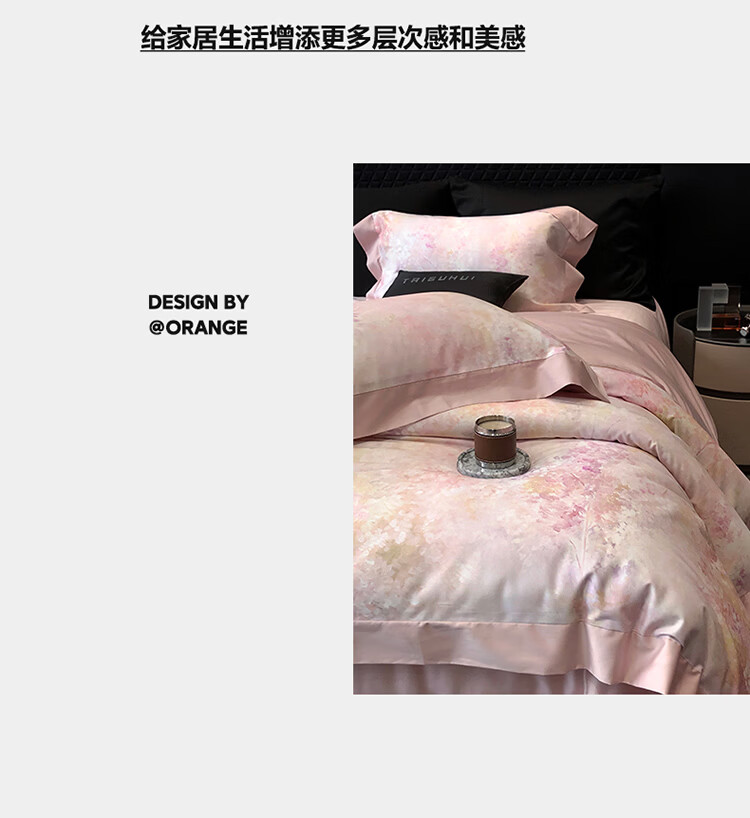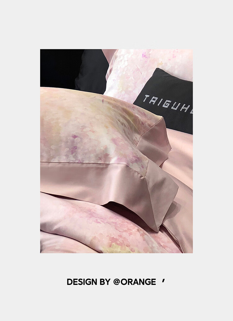 ROLAND LIVE新疆长绒棉印花四件套轻奢风家用1.8米床全棉被套亲肤透气床品 TGH 长绒棉四件套-沁园花语粉色 1.5米床 床单款 【被套200*230cm】