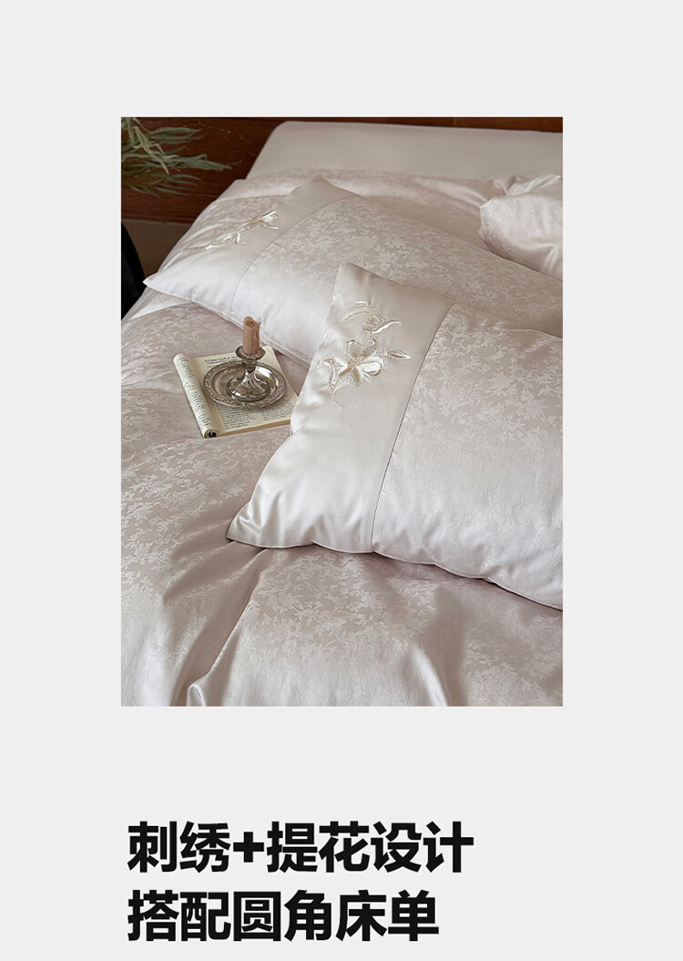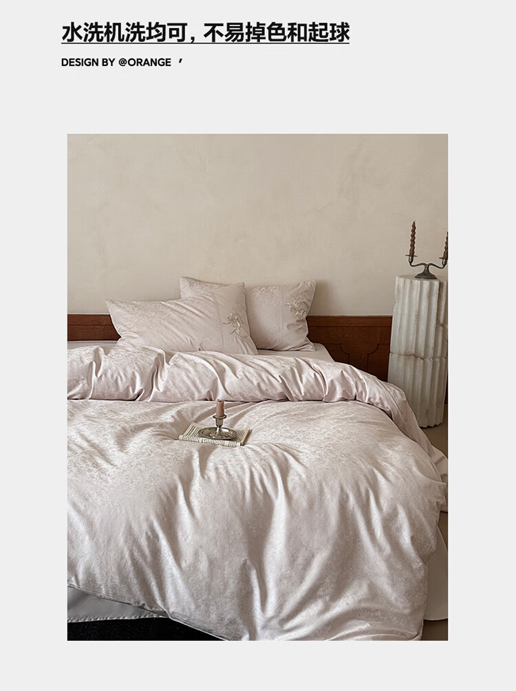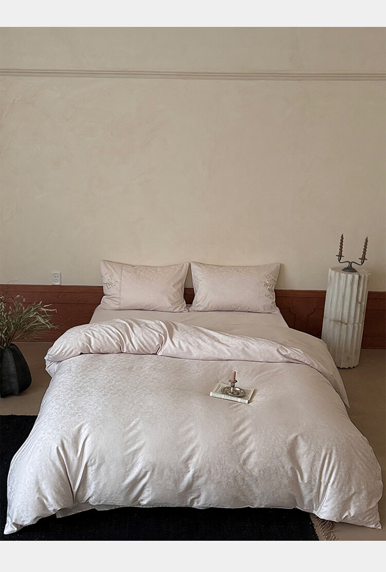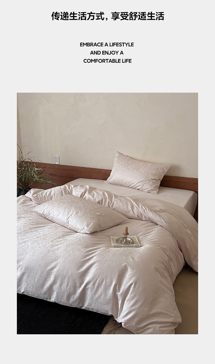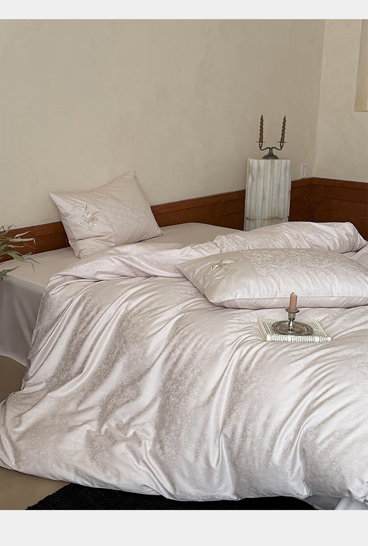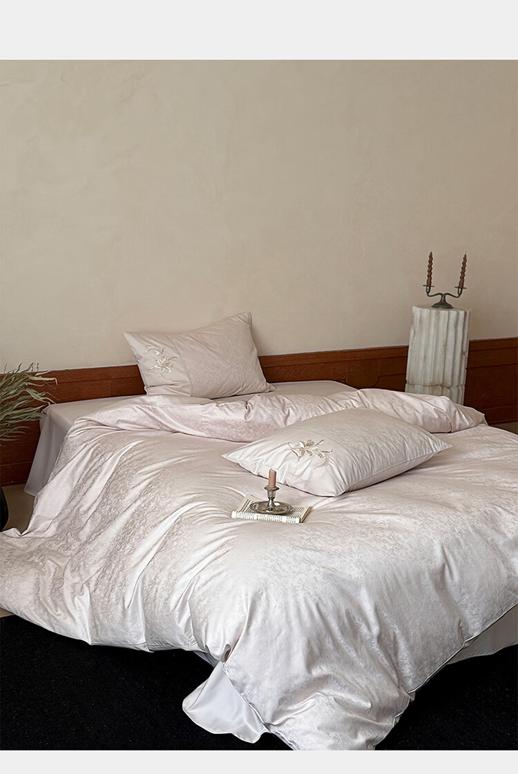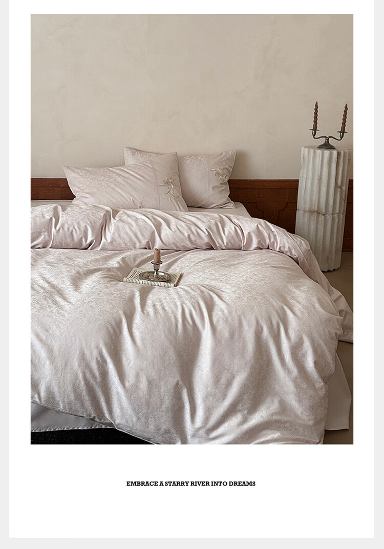 ROLAND LIVE简约轻奢全棉长绒棉刺绣四件套提花被套纯棉床单高级感1.8m床套件 LB 长绒棉套件-兰心幽怀粉色 1.2米床 床单款 【被套150*200cm】