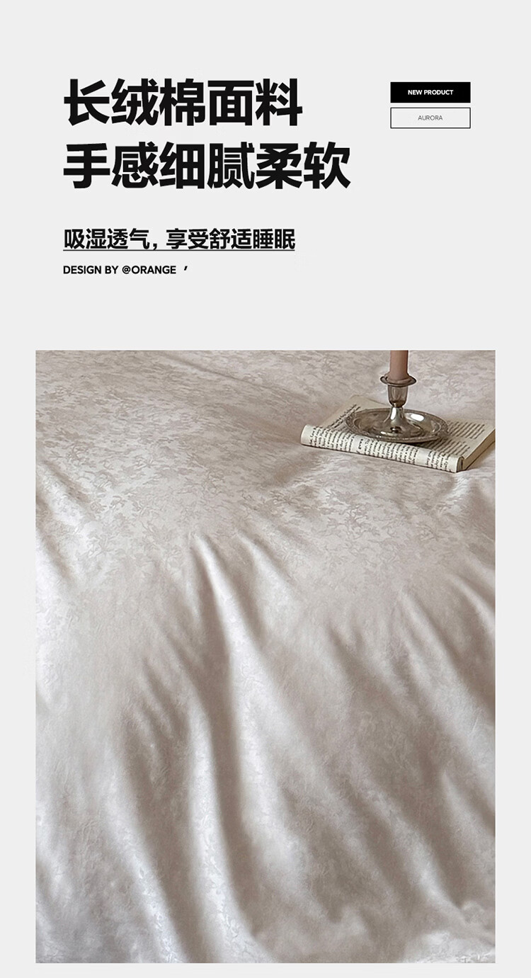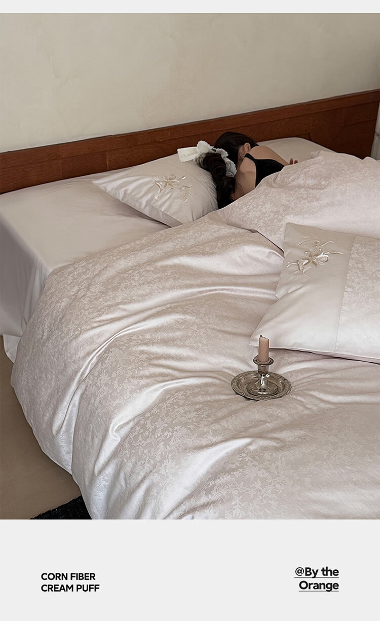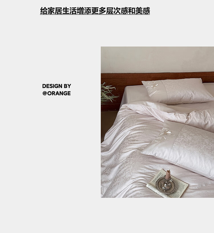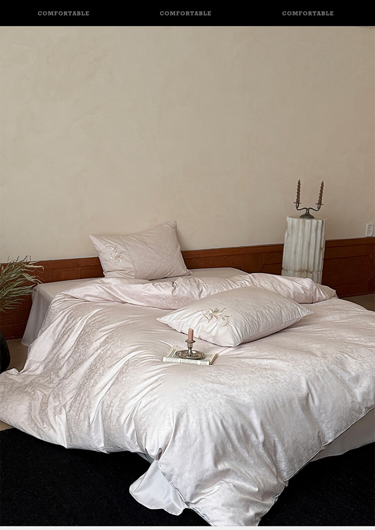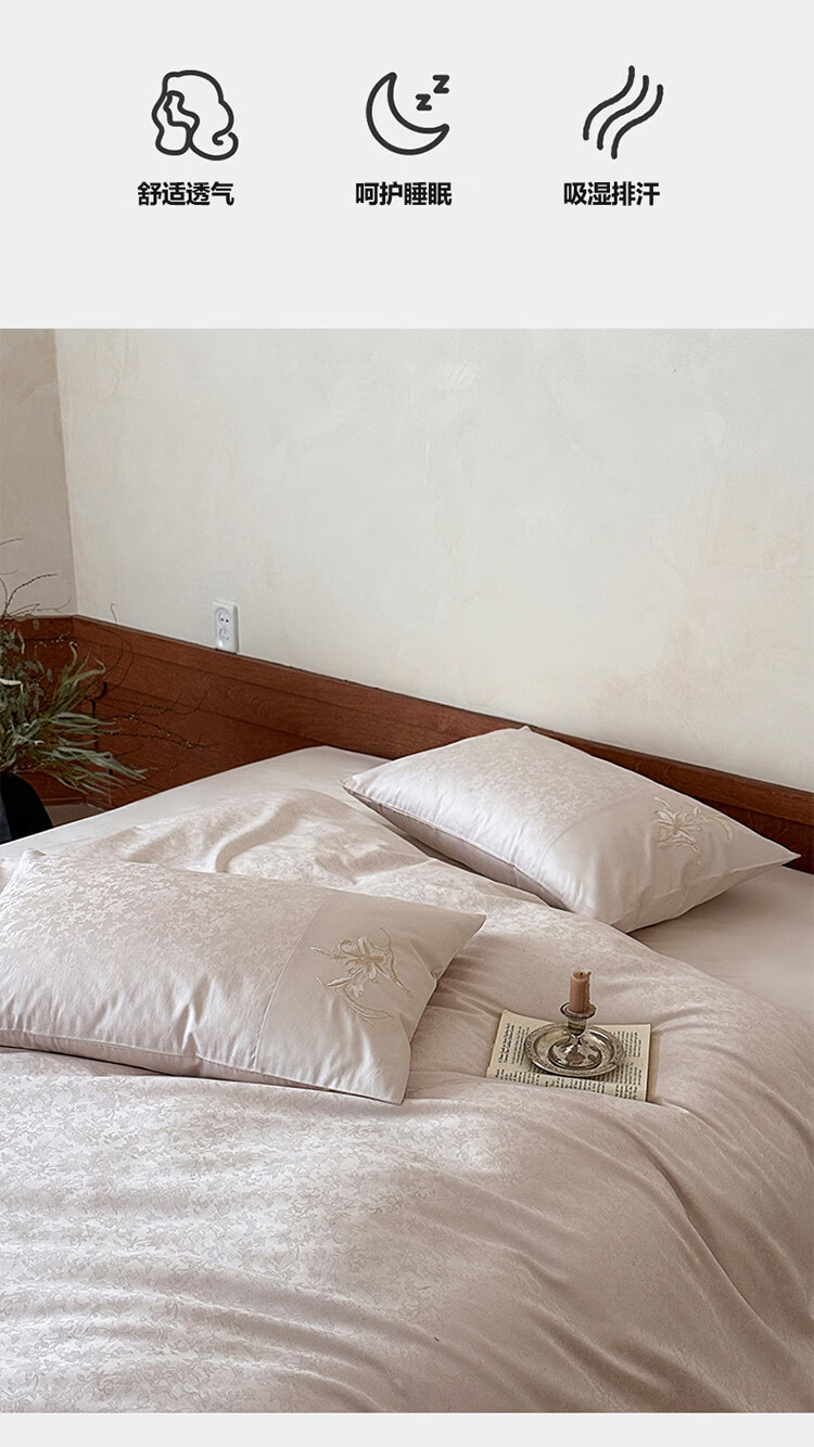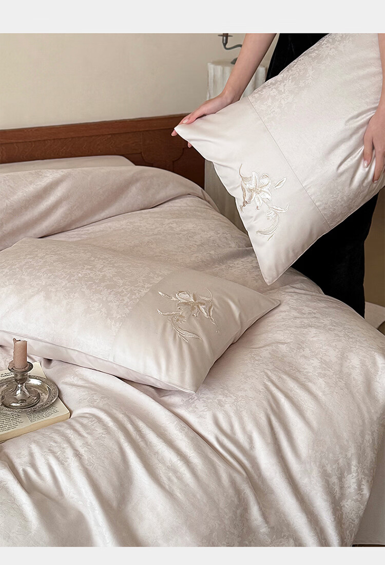 ROLAND LIVE简约轻奢全棉长绒棉刺绣四件套提花被套纯棉床单高级感1.8m床套件 LB 长绒棉套件-兰心幽怀粉色 1.2米床 床单款 【被套150*200cm】