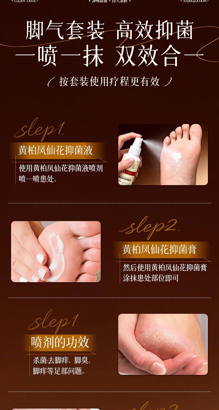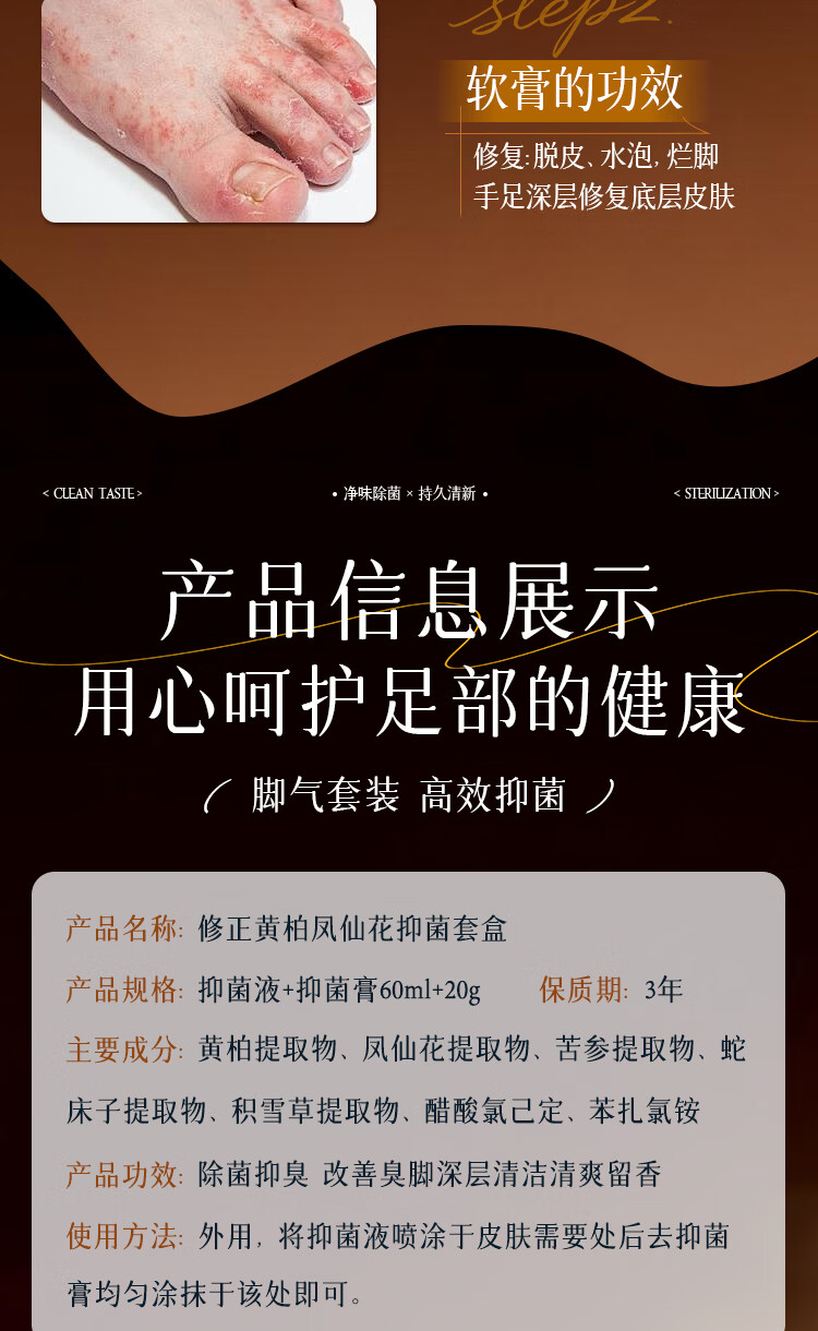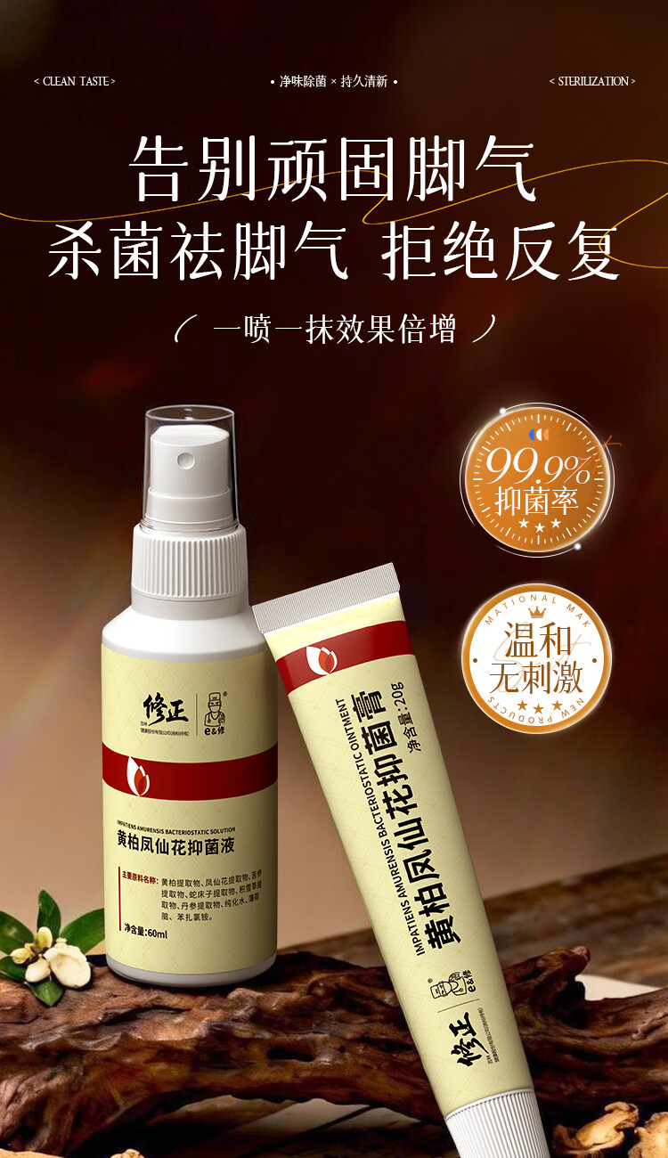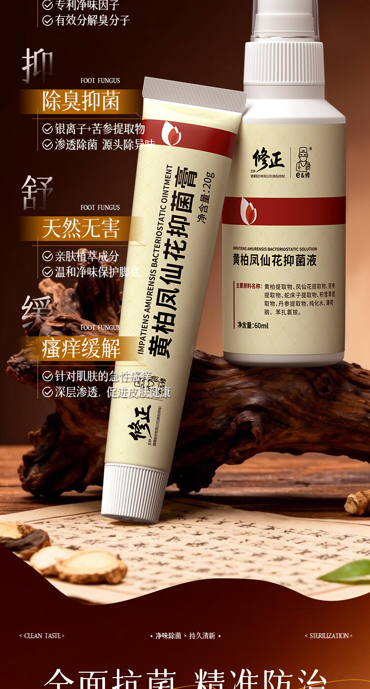 修正黄柏凤仙花抑菌套盒 改善脚气除菌抑臭深层清洁清爽留香足部护理 两套装(2液+2膏)