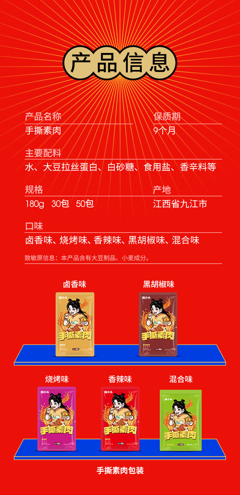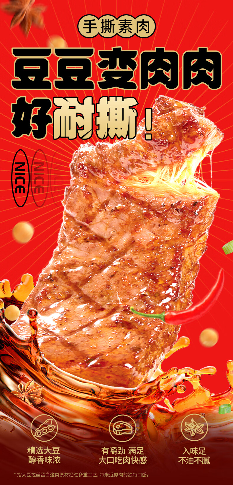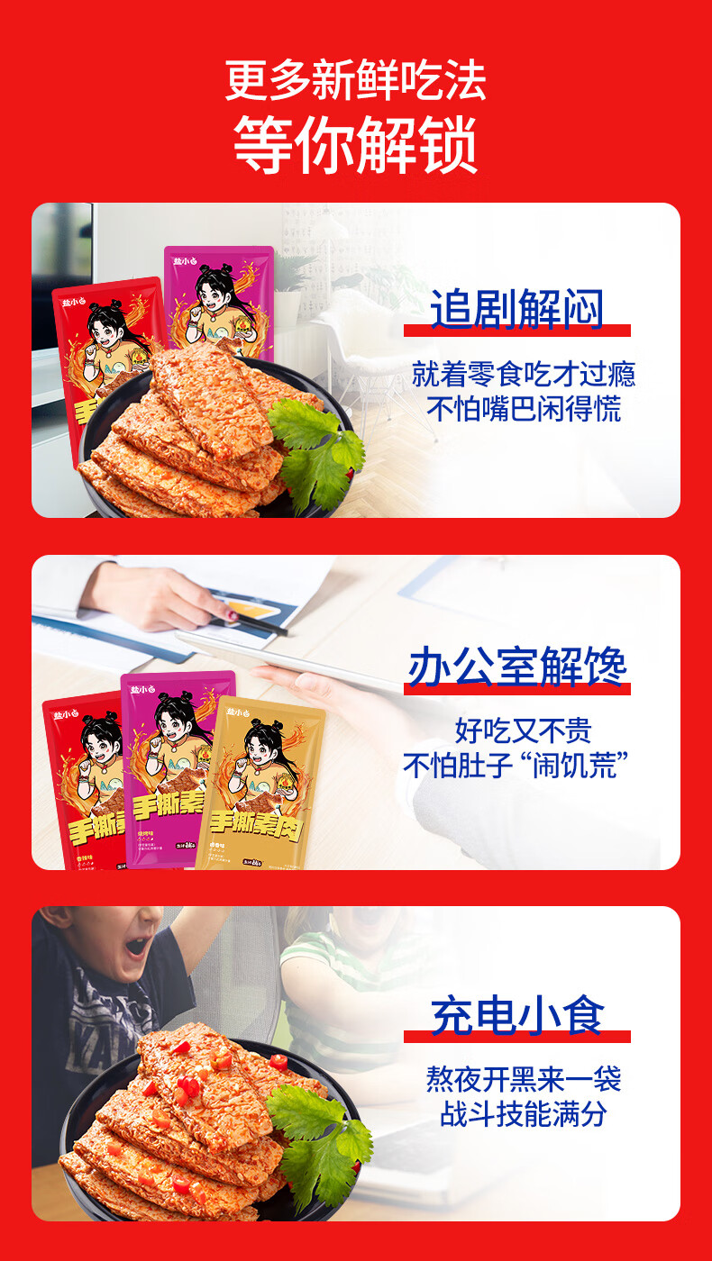 盐津铺子手撕素肉混合味225g约25包 素牛排辣卤网红零食休闲食品豆干辣条
