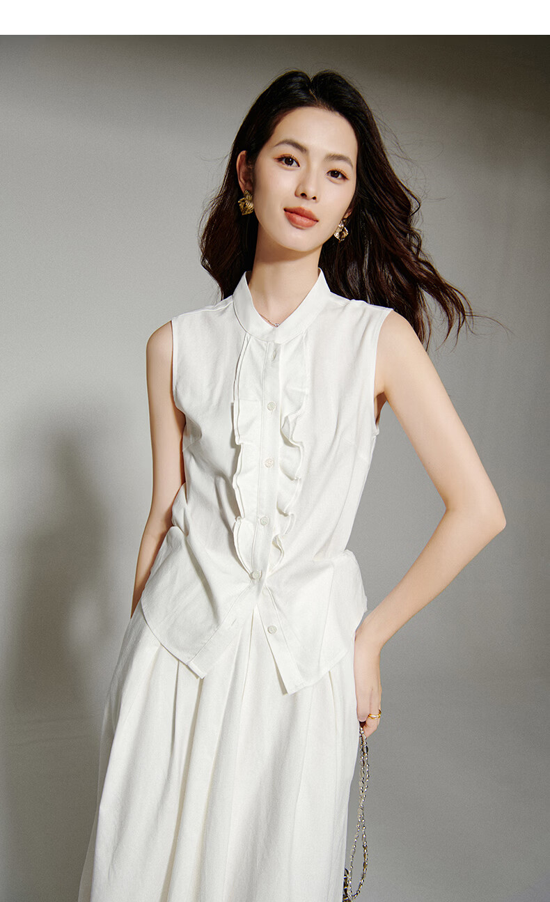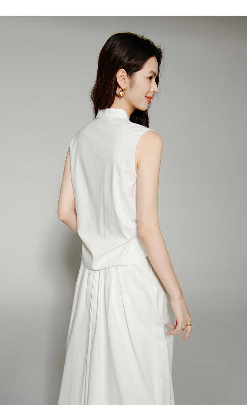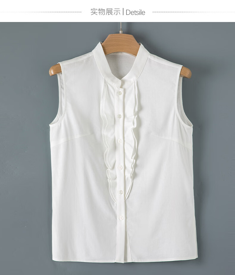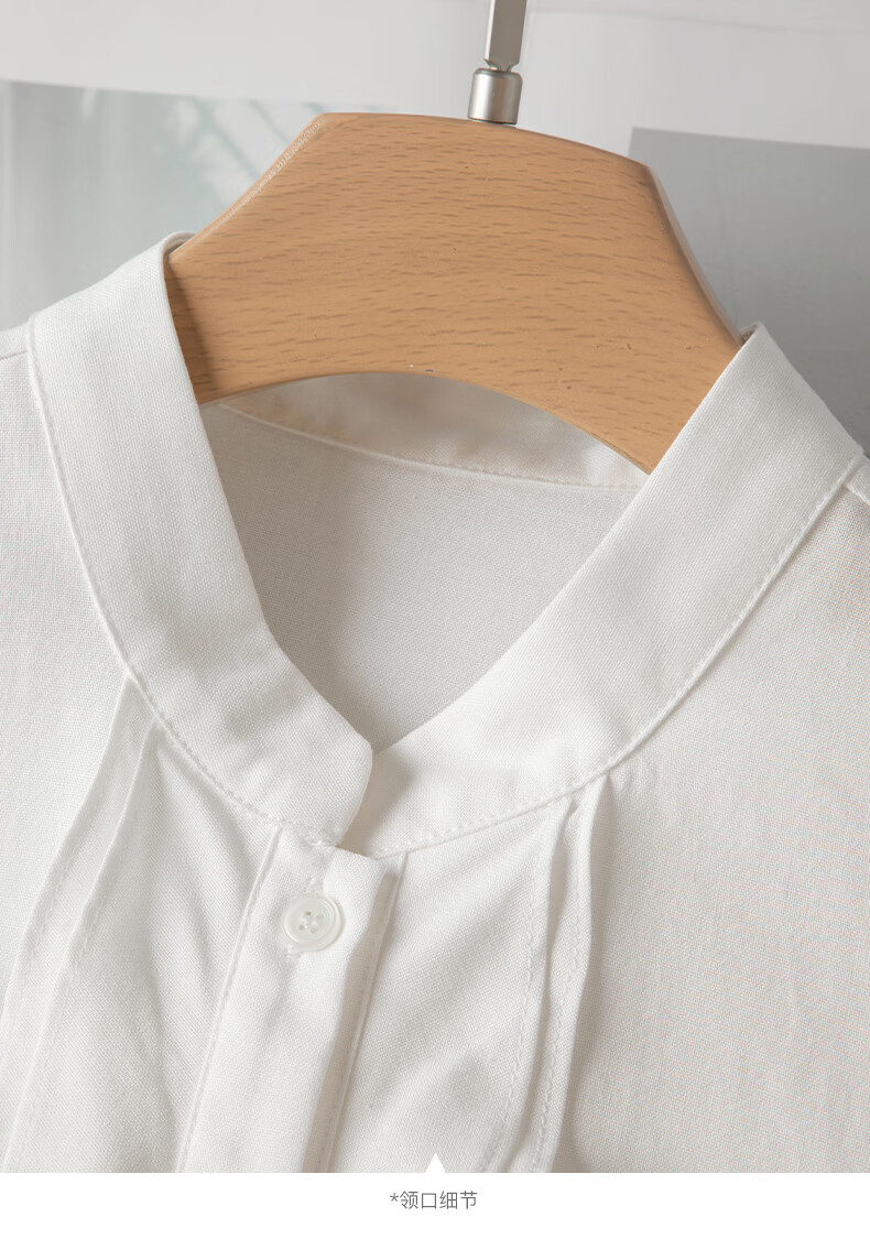 晚白【新品】2026年春款经典简洁立领棉麻上衣亲肤透气舒适无袖衬衫女 白色 S